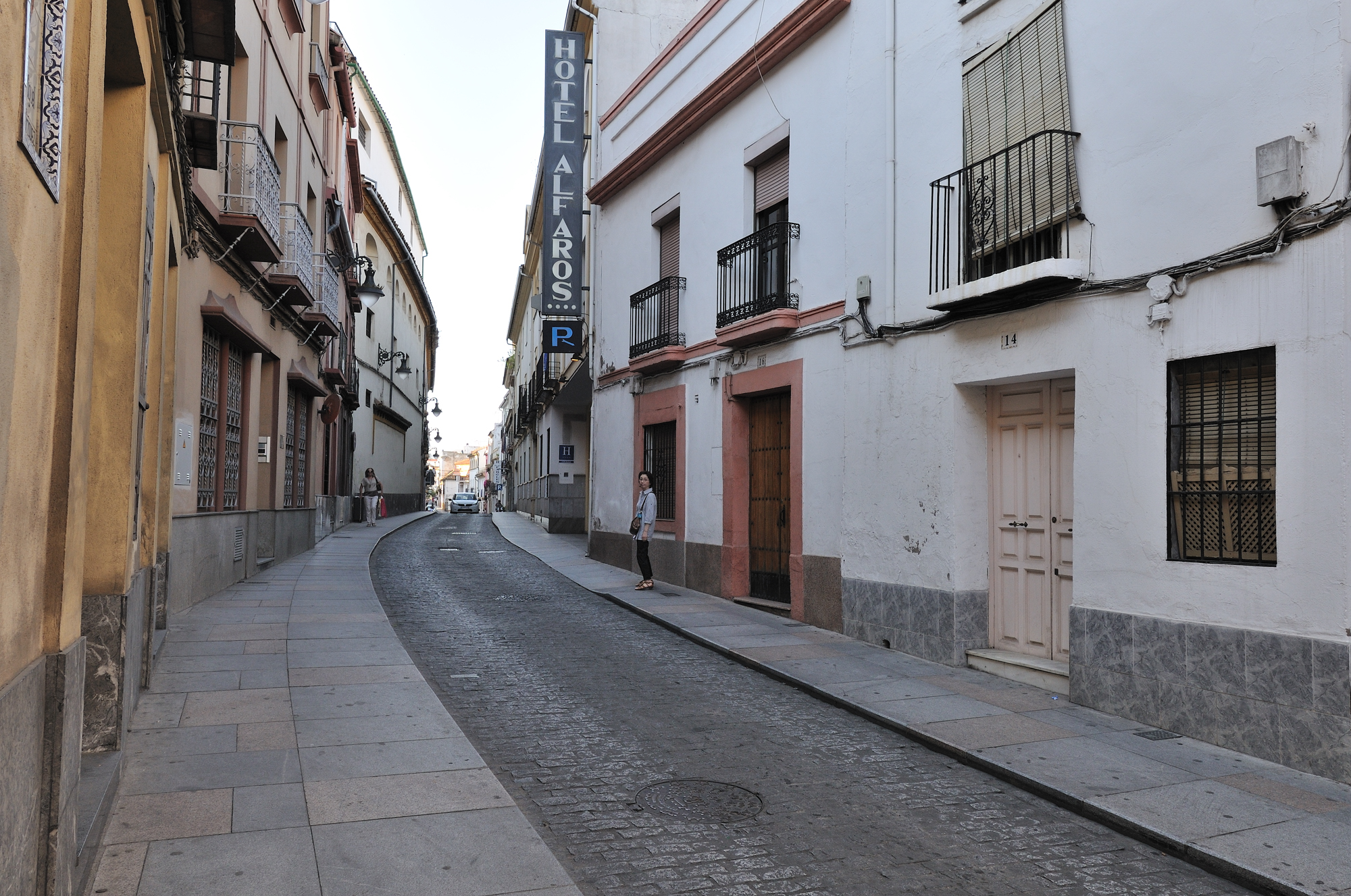 | トリホス通り [Calle de Torrijos] (17:46) 中央前方の塔は、サン・ラファエルの勝利の塔 [Triunfo de San Rafael de la Puerta del Puente ] 。 「南南東方向」MAPLay. 2 W |