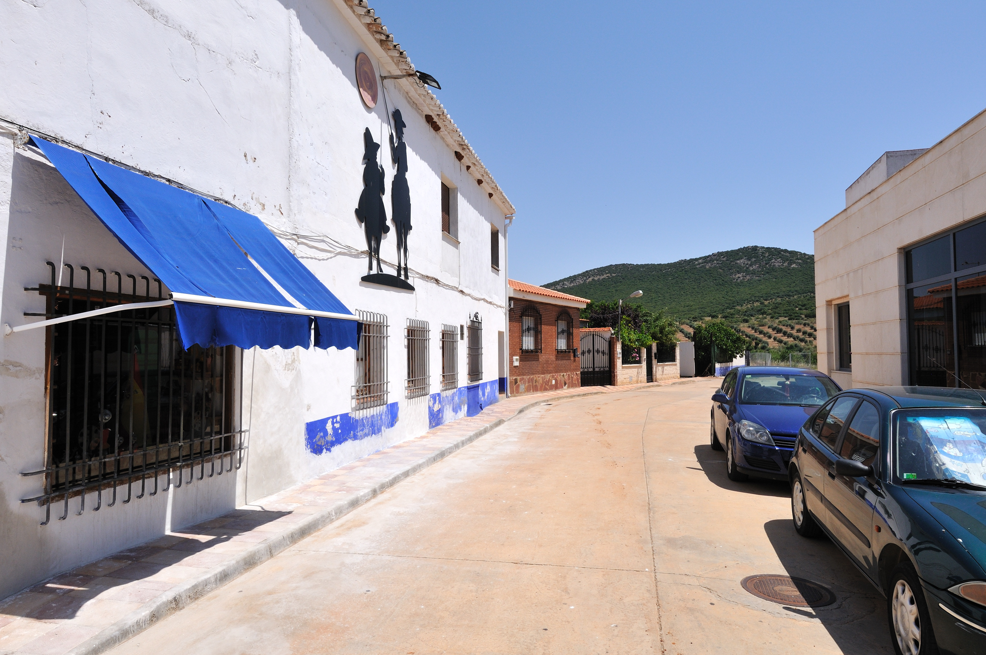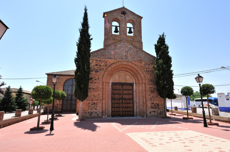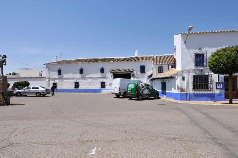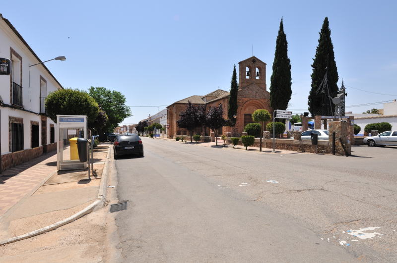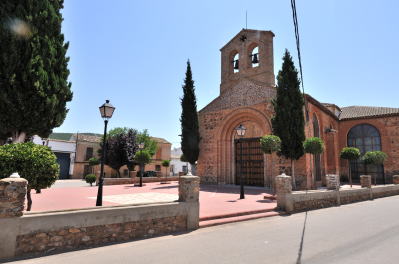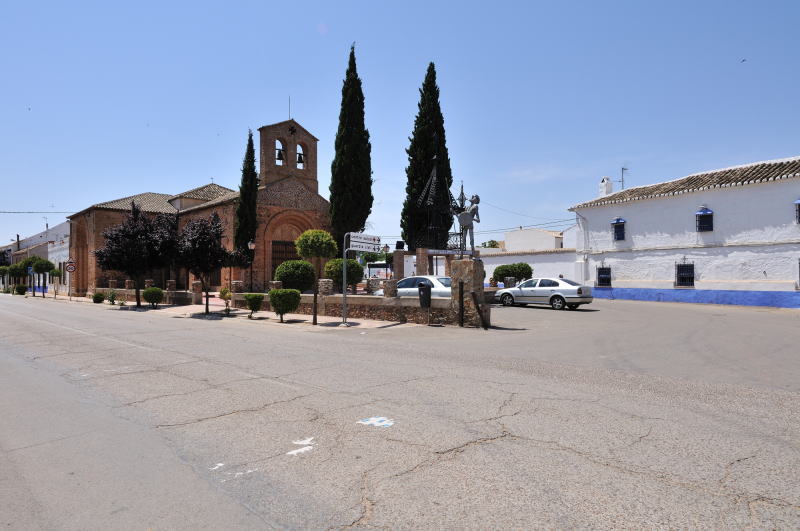 | セルバンテス通り [Calle de Cervantes] にある教会 (左) とベンタ・デル・キホーテ (右) (12:13) 「北西方向」MAPLay. 1 B |