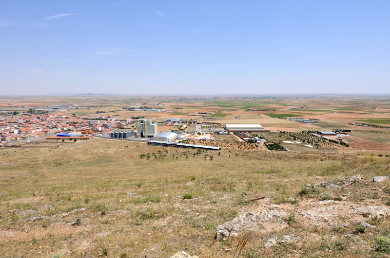 | 丘から眺めるコンスエグラ [Consuegra] の町並み (13:53) 「南南東方向」MAPLay. 1 M |