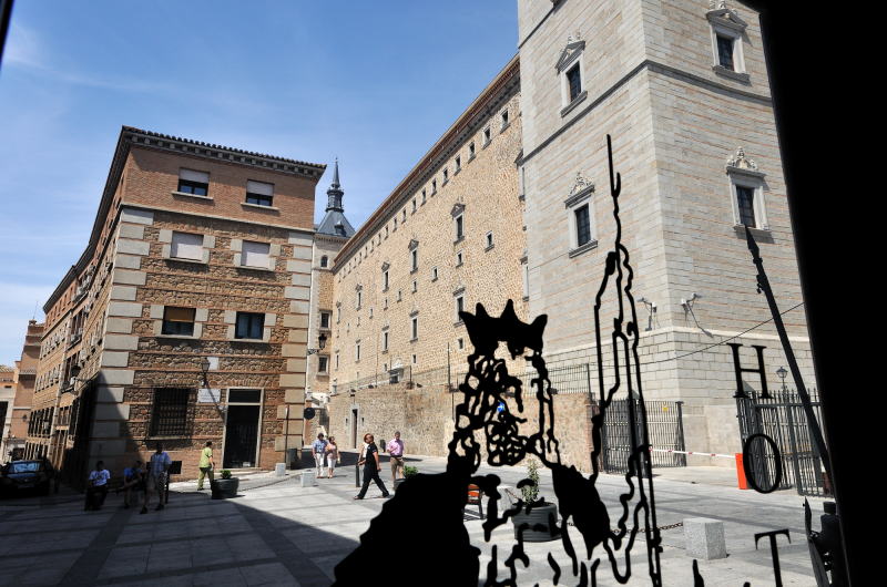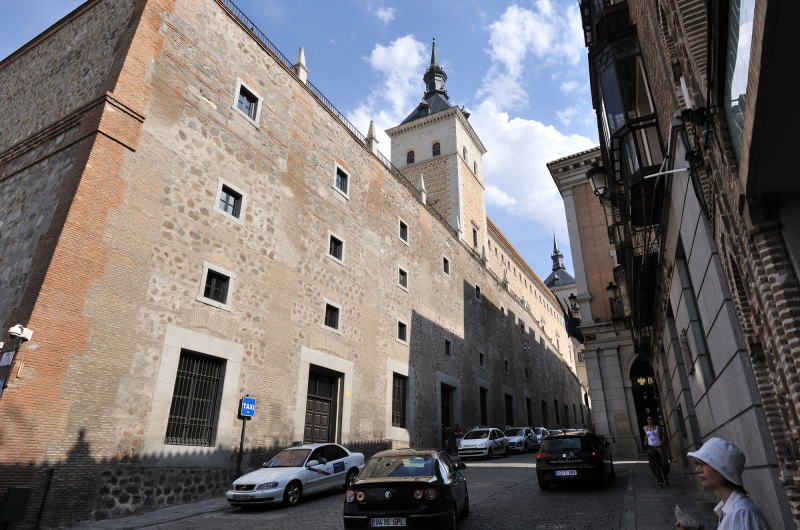 | アルカサル (軍事要塞) [Alcázar] (21:16) 町の高台に建つ四角形の要塞で、11世紀にトレドを再征服したアルフォンソ6世がこの地に要塞を築いたのが始まりで、1538年にカルロス1世が古い要塞の改築を始め、1551年に今のアルカサルの原型ができた。 その後幾たびかの破壊と修復を経て現在の姿になった。 1936年の市民戦争 (スペイン内戦) では、モスカルド大佐率いるフランコ軍が72日間にわたって籠城した。 現在は軍事博物館になっており、地下にはフランコ軍の家族がたてこもった跡がある。 「北北西方向」MAPLay. 1 d |