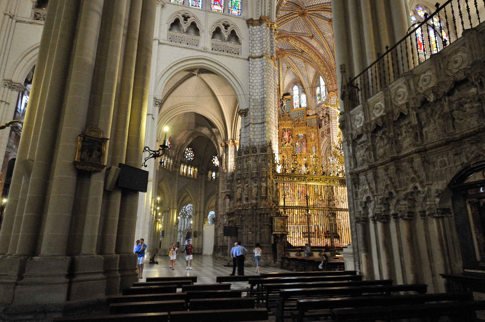 | トレド大聖堂 [Catedral de Toledo] 内部 (16:28) 右手の黄金色で飾られた所が、内陣 [Capilla Mayor] 。 MAPLay. 1 X |