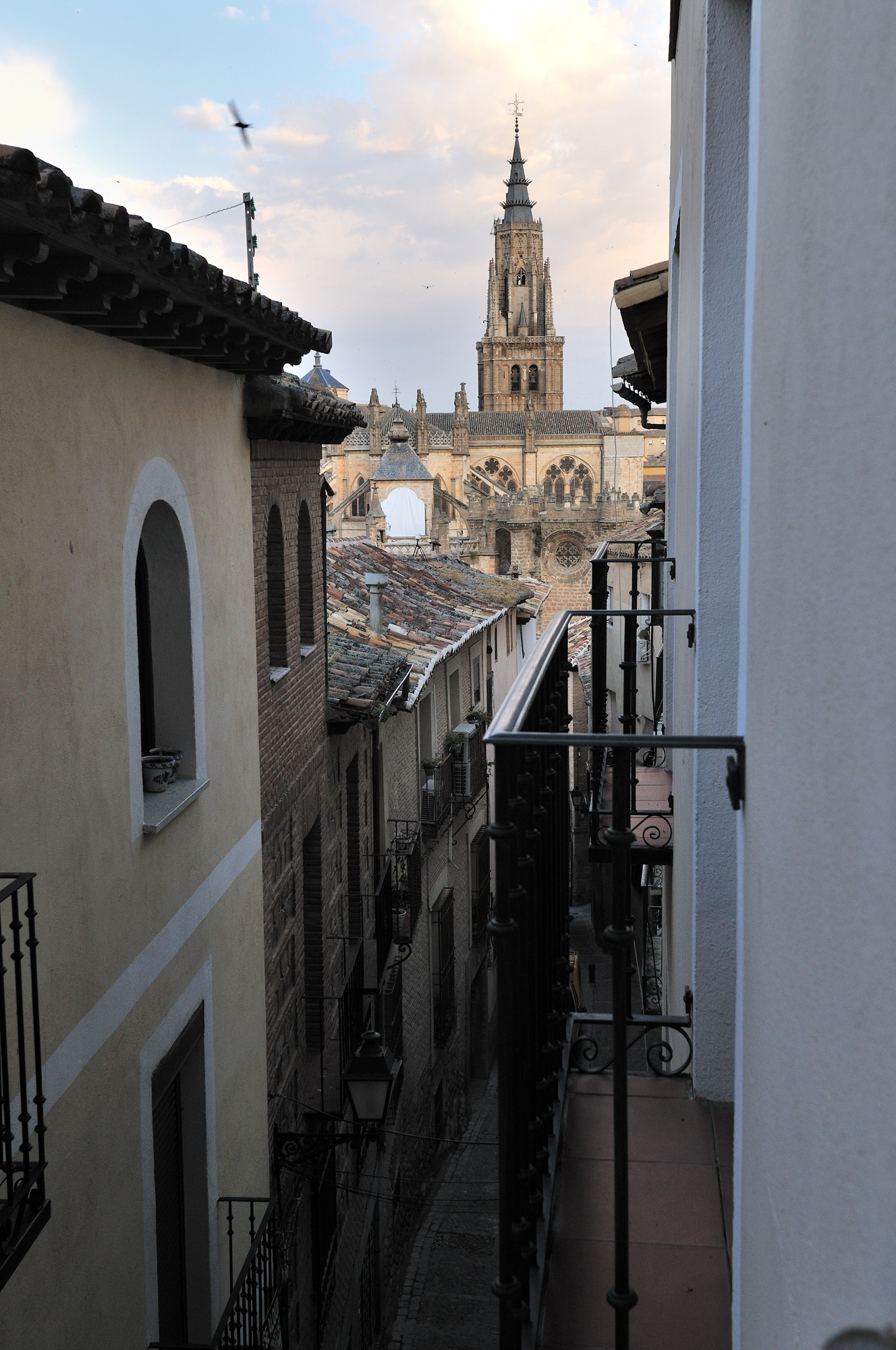 | トレド [Toledo] の裏通り (08:28) 中央に見える小塔は、カテドラル (トレド大聖堂) 。 「西方向」MAPLay. 1 E |