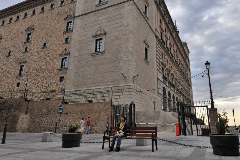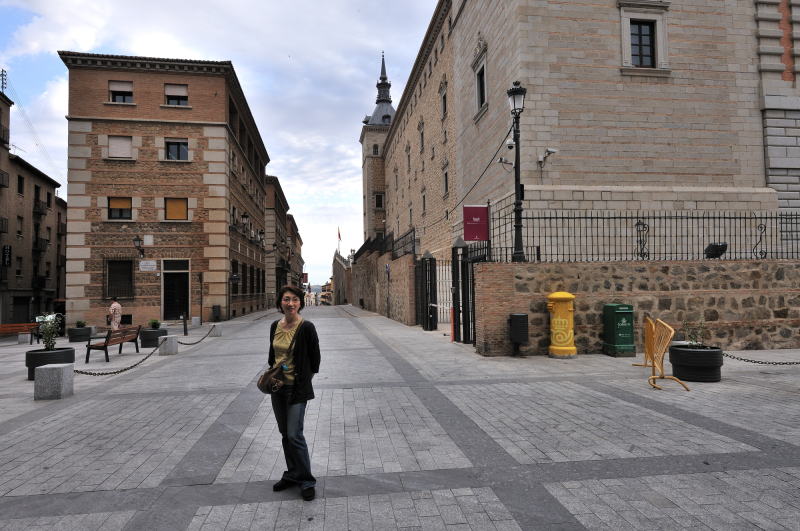 | ホテル・アルフォンソ6世前の広場にて、バックはアルカサル [Alcázar] (08:20) 「北東方向」MAPLay. 1 B |