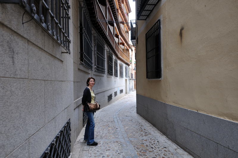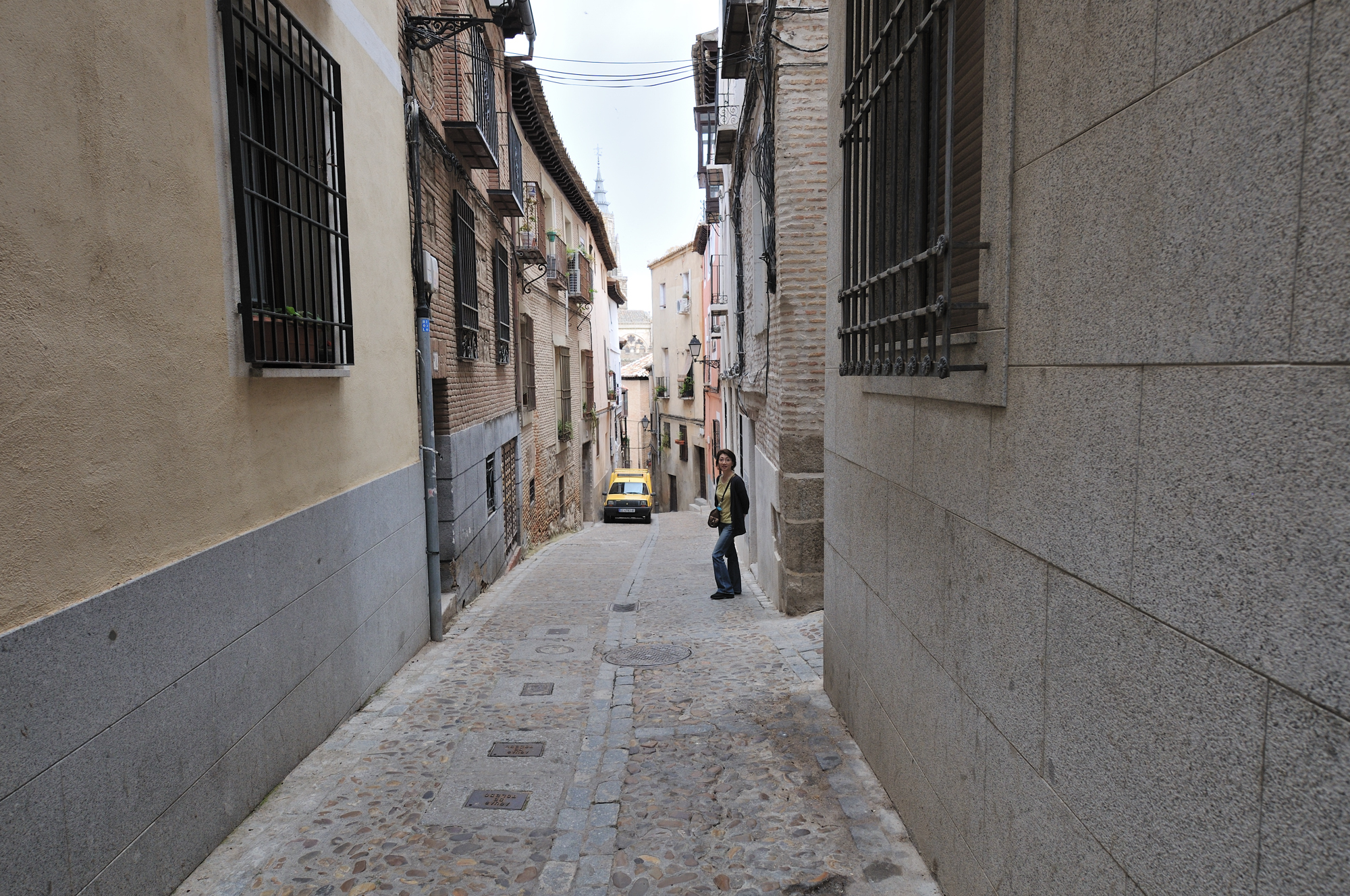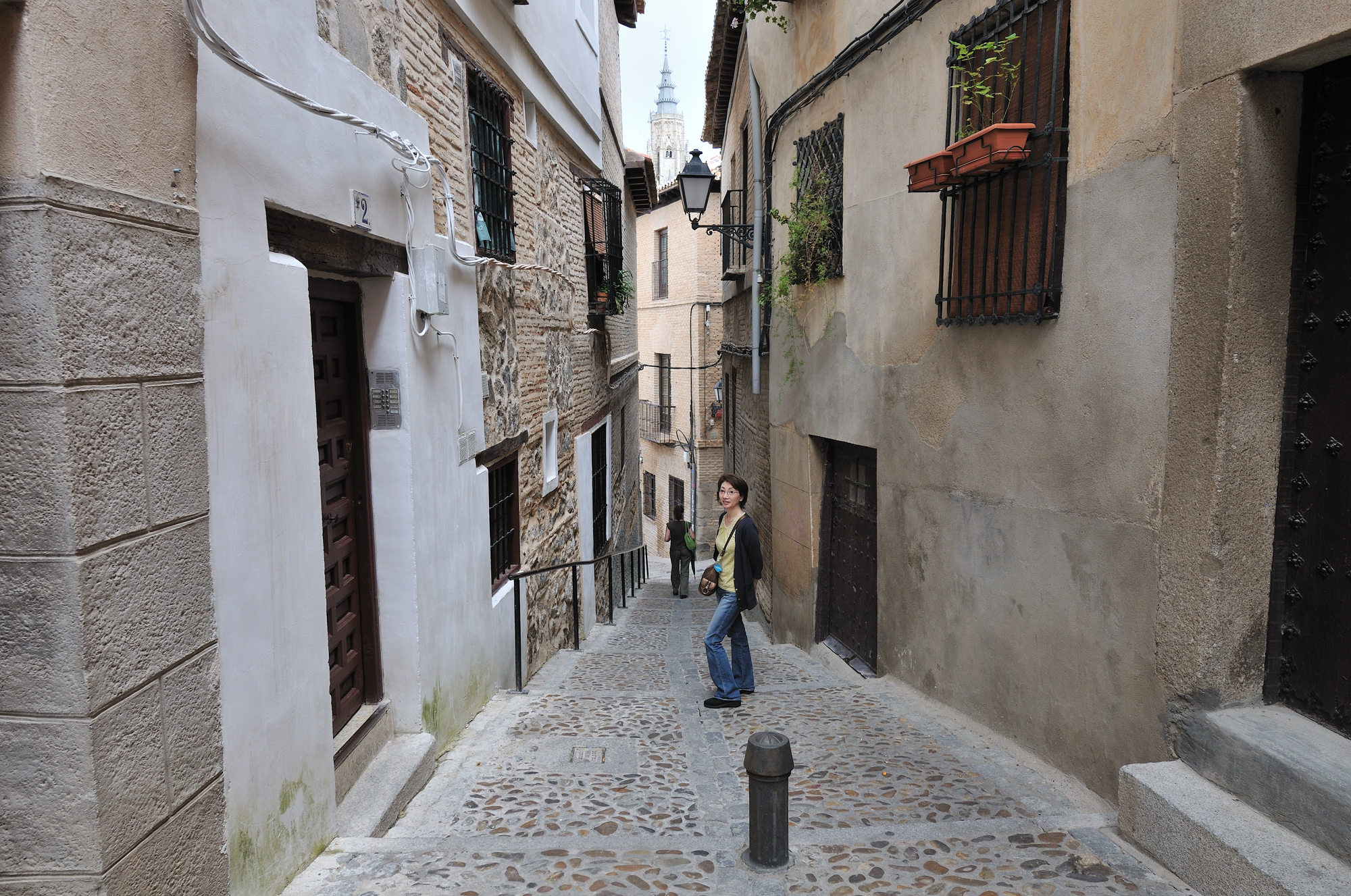 | トレド [Toledo] の裏通り (08:24) 中央に見える塔は、カテドラル (トレド大聖堂) の鐘楼。 「西方向」MAPLay. 1 D |