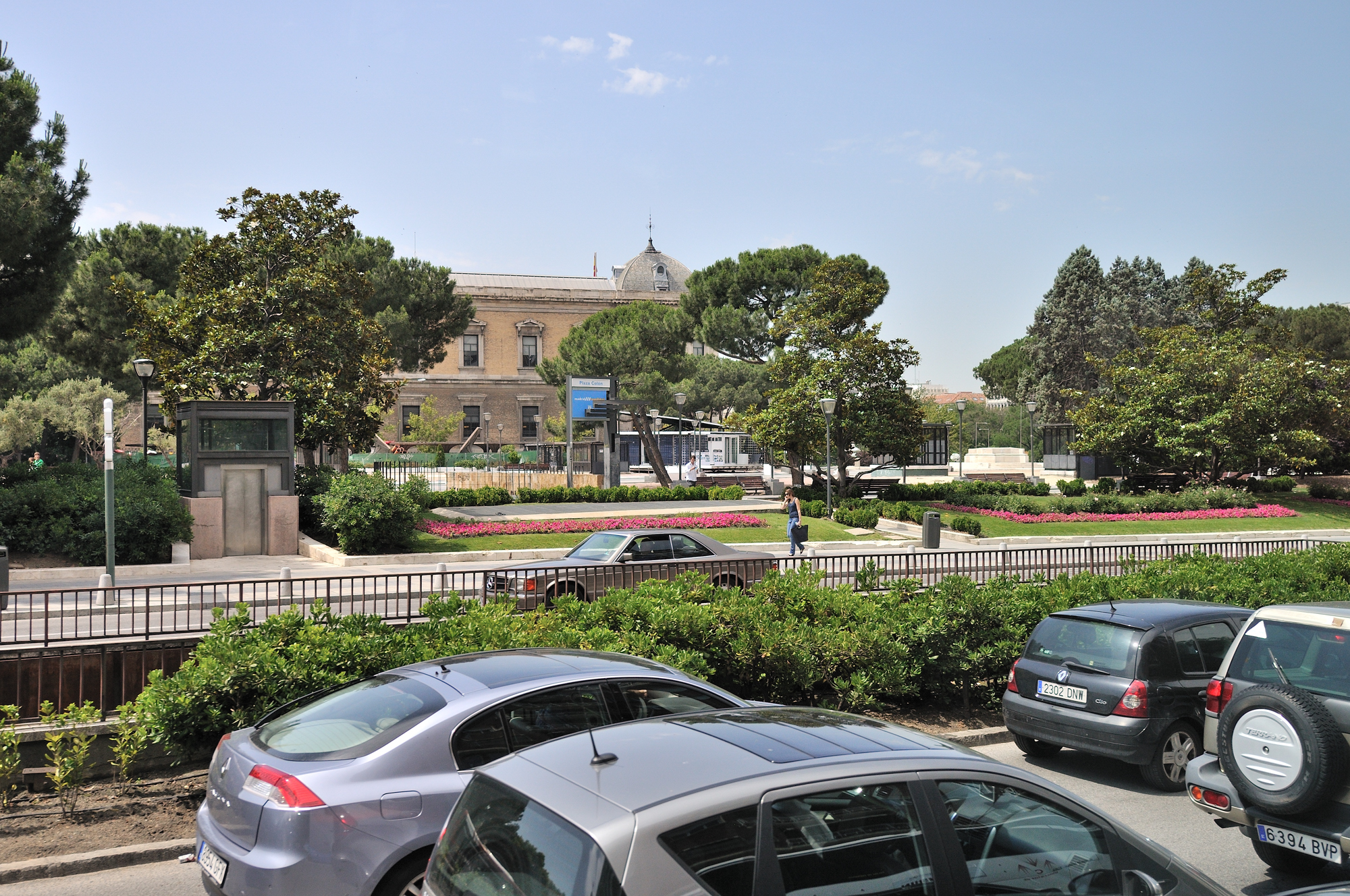 | デスクブリミエント庭園 [Jardines del Descubrimiento] (12:24) 前方の建物は、国立図書館 [Biblioteca Nacional] 。 「南西方向」MAPLay. 1 W |