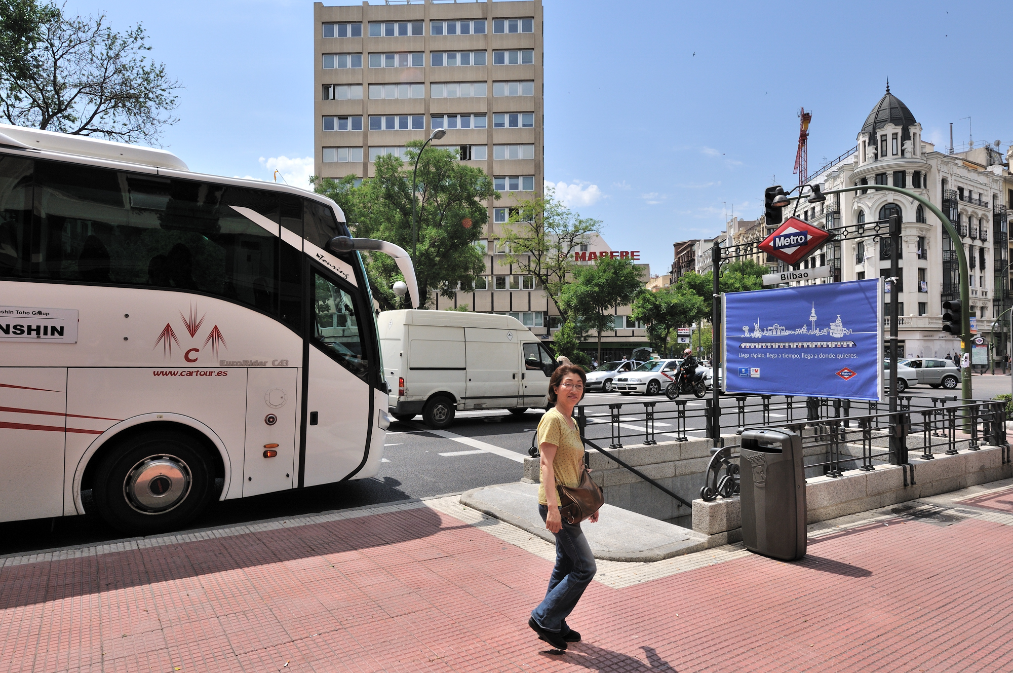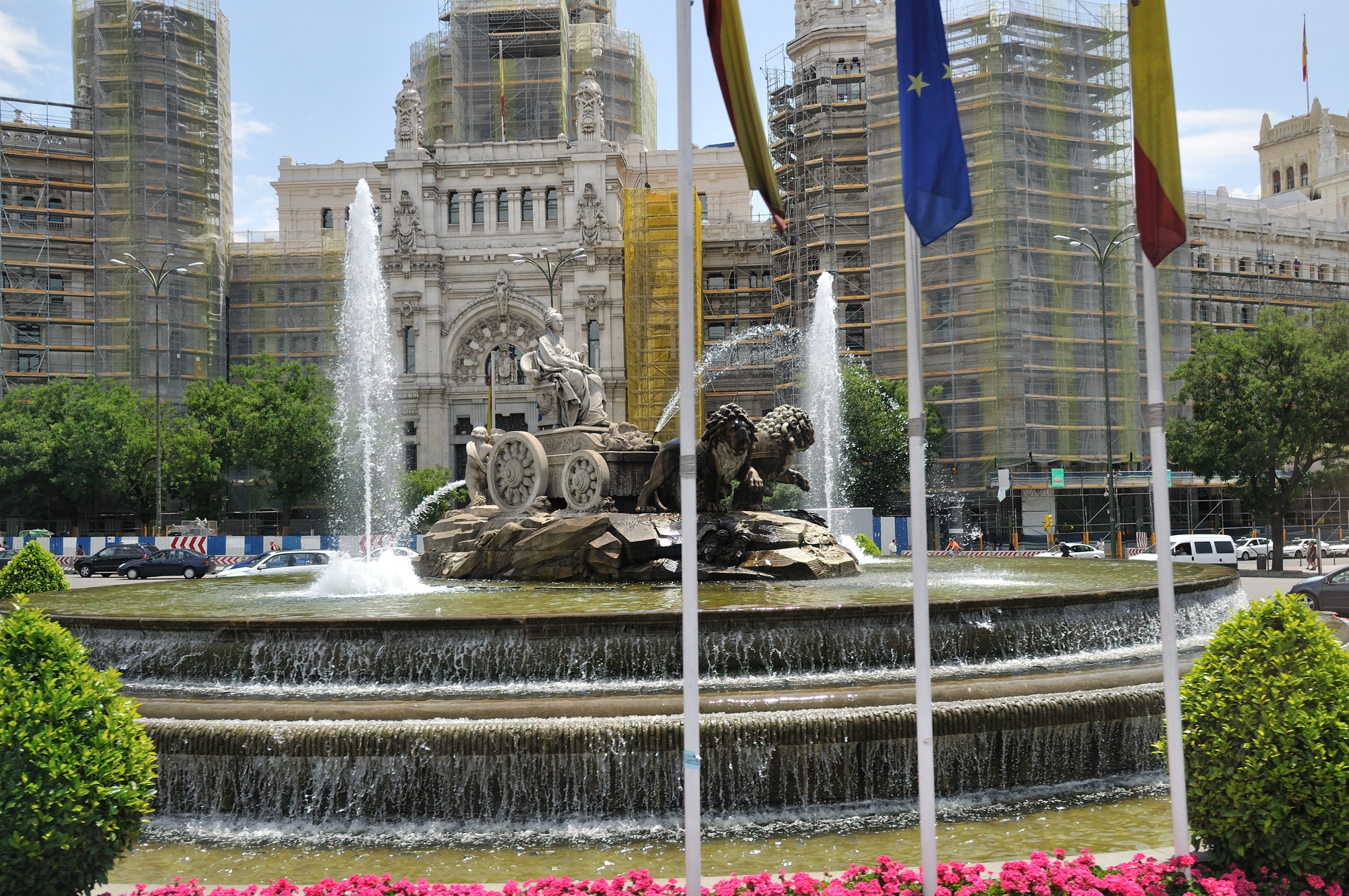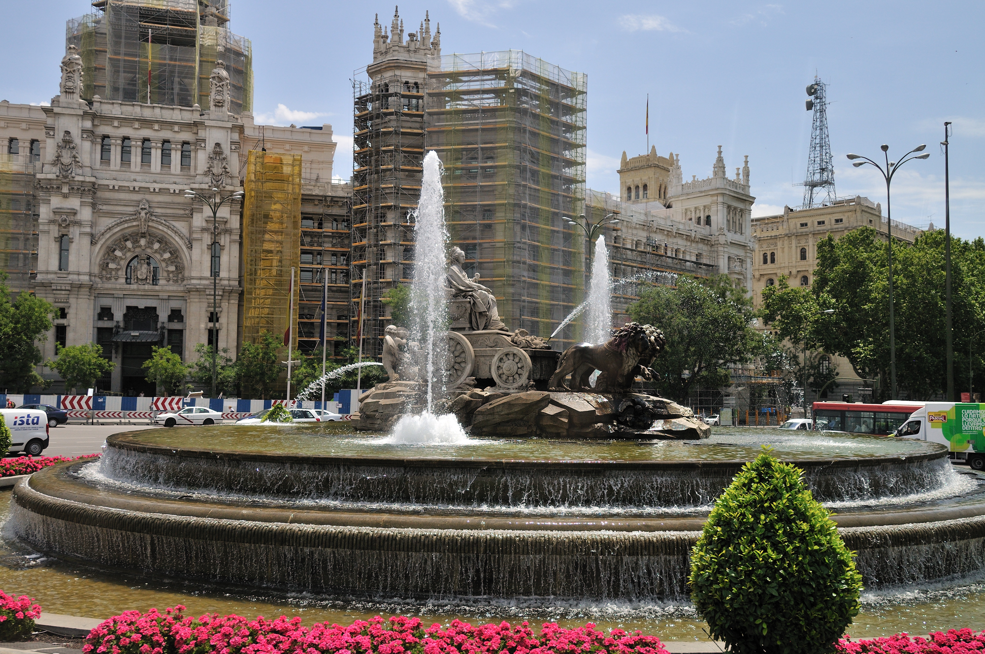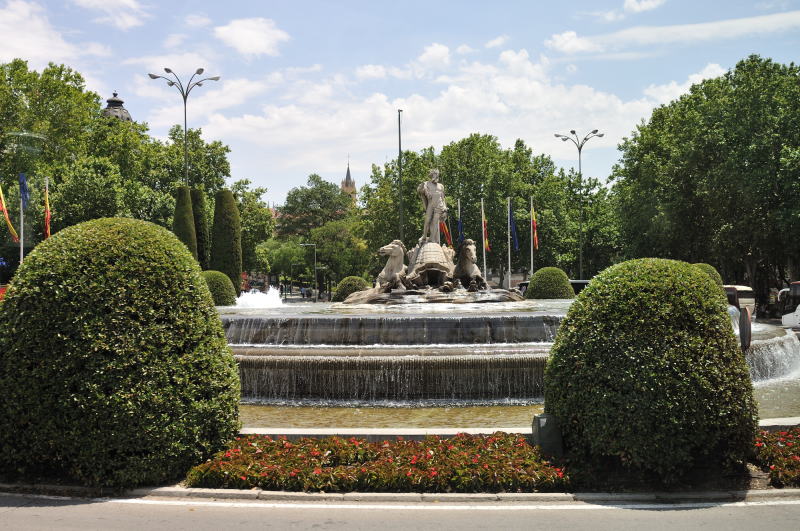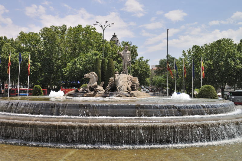 | シベーレス*広場 [Plaza de Cibeles] (13:54) スペイン、マドリード中心部にある円形の広場。 広場の東西をアルカラ通り [Calle de Alcalá] が、北はレコレートス通り [Paseo de Recoletos] 、南はプラド通り [Paseo de Prado] が交差する。この広場はマドリードを象徴する場所の1つ。 「南東方向」MAPLay. 1 j * シベーレスとは、ギリシャ神話の女神キュベレのスペイン語名 |