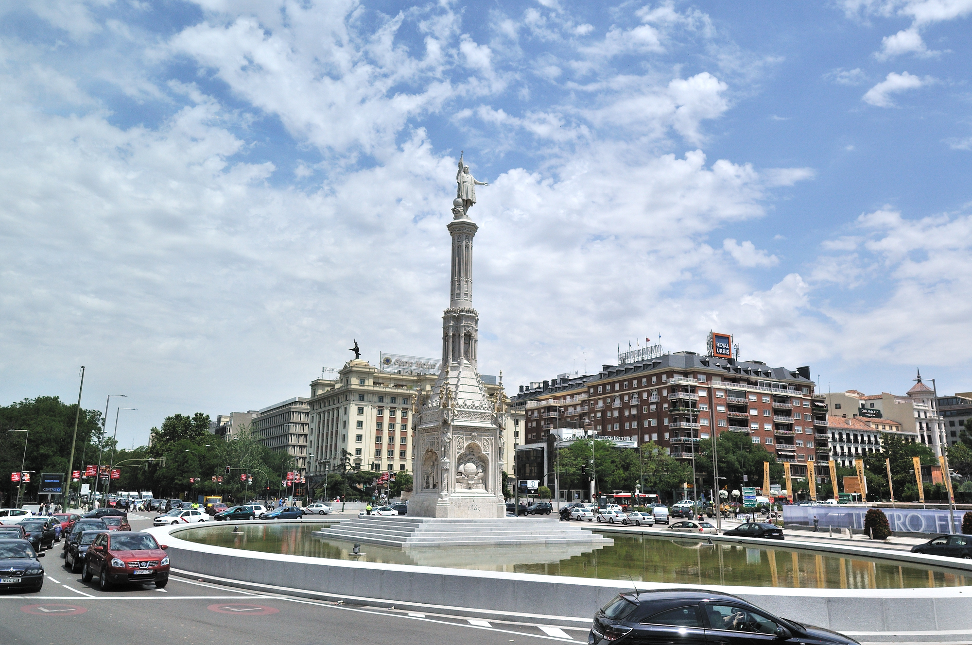 | コロン広場 [Plaza de Colón] にあるコロンブス記念碑 [Monumento a Colón] (13:52) コロン広場のコロンは、Christopher Columbus (クリストファー・コロンブス)のスペイン語読み Cristóbal Colón の Colónからきており、高い柱の頂点にはコロンブスの石像が立っている。 石像の右手は長い航海の末にたどり着いたカリブ海のある西方向を指している。 「北東方向」MAPLay. 1 g |