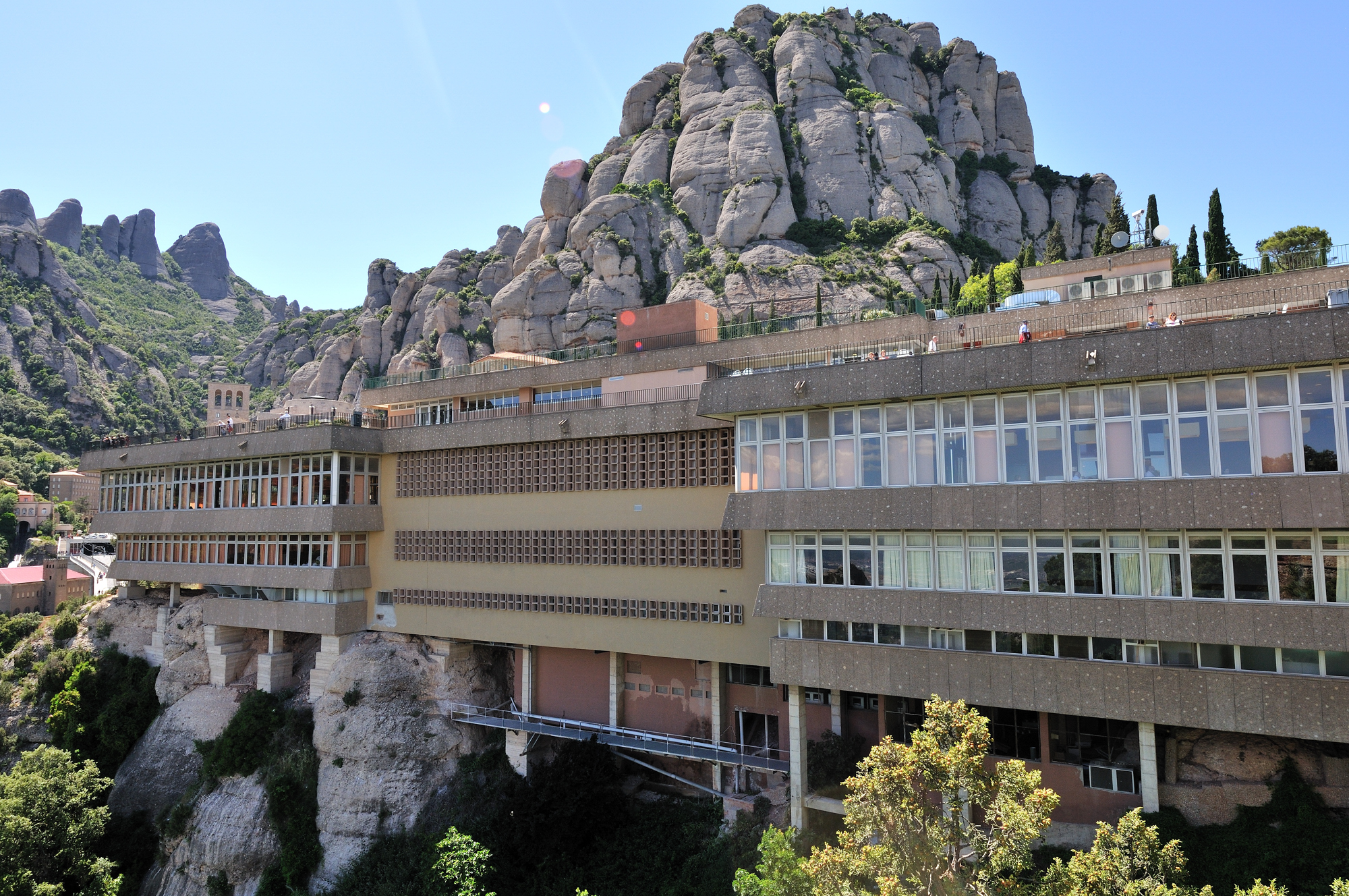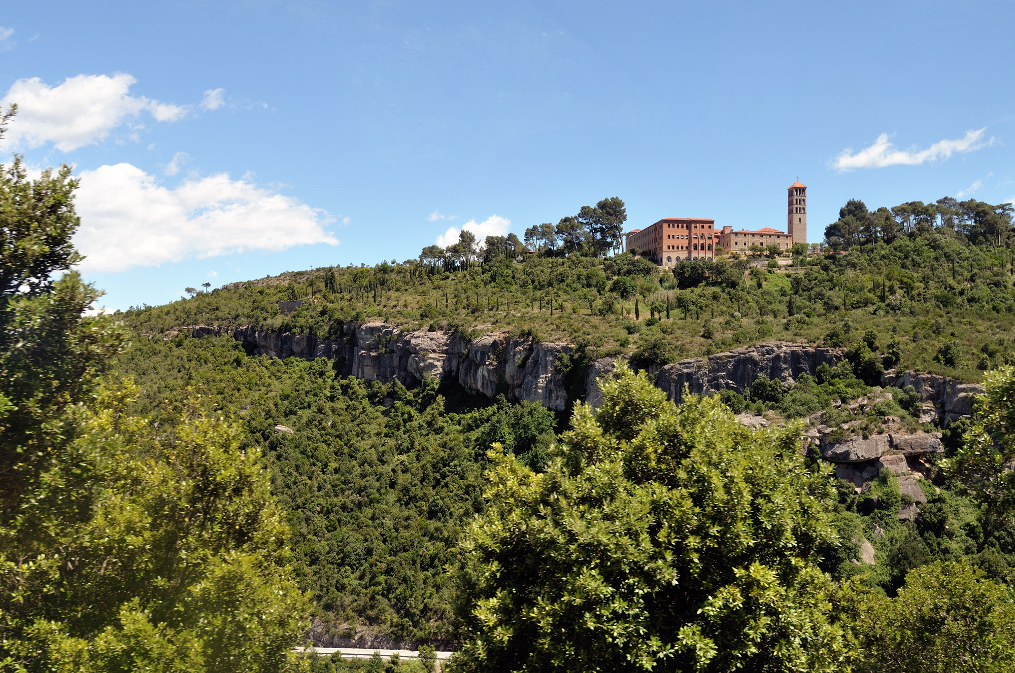 | サン・ベネット修道院 [MONESTIR DE SANT BENET DE MONTSERRAT] (15:33) バルセロナの聖クララ修道院とマトロの聖ベネディクト修道院が1952年5月13日に合併し、モンセラートの地にサン・ベネット修道院を創立した。 設計者は、有名な建築家ジョルディ・ボネット [Jordi Bonet] 氏。 「南東方向」MAPLay. 2 E |