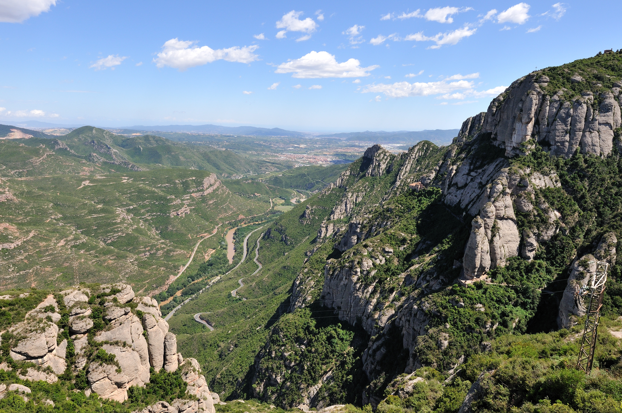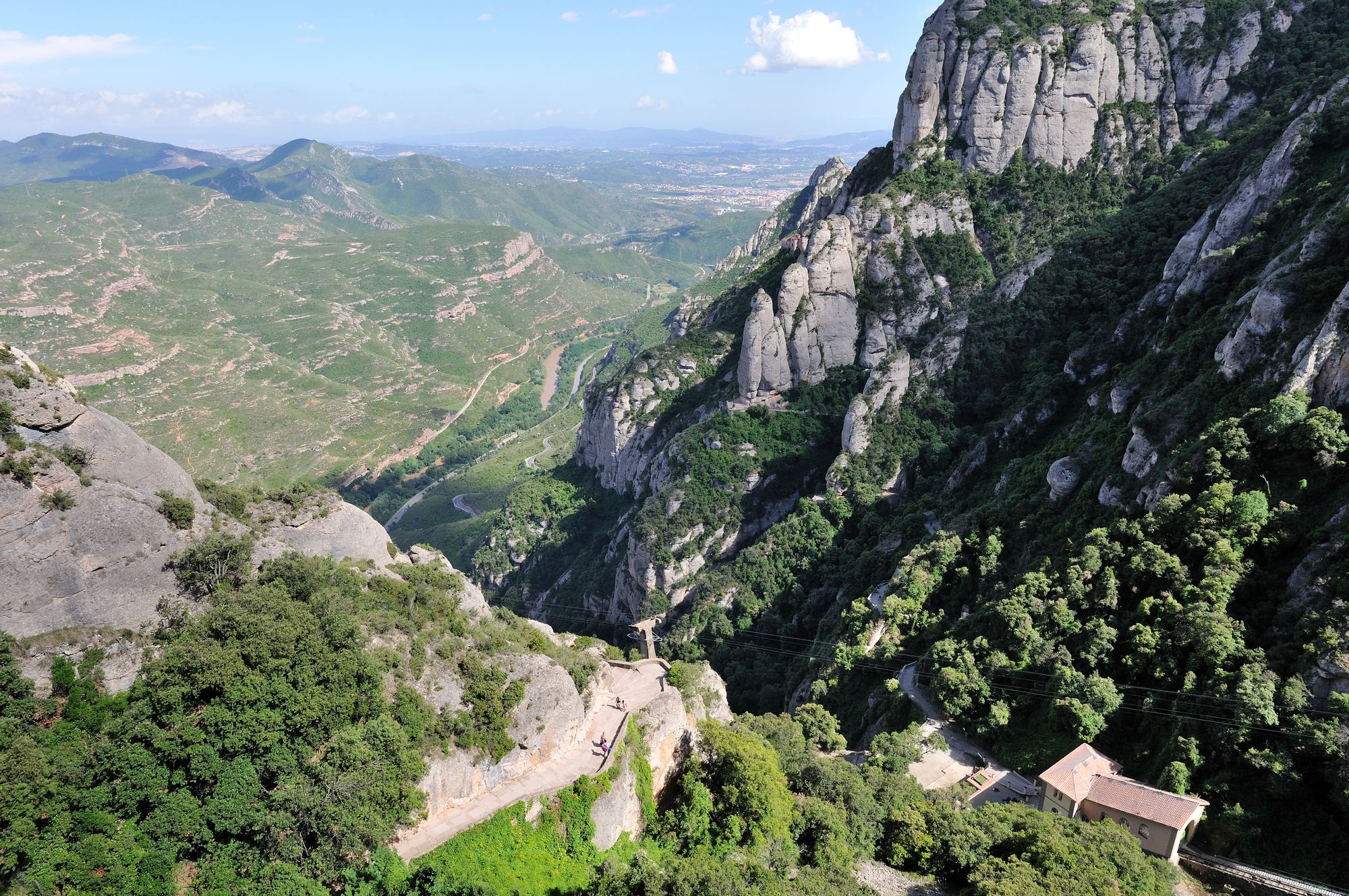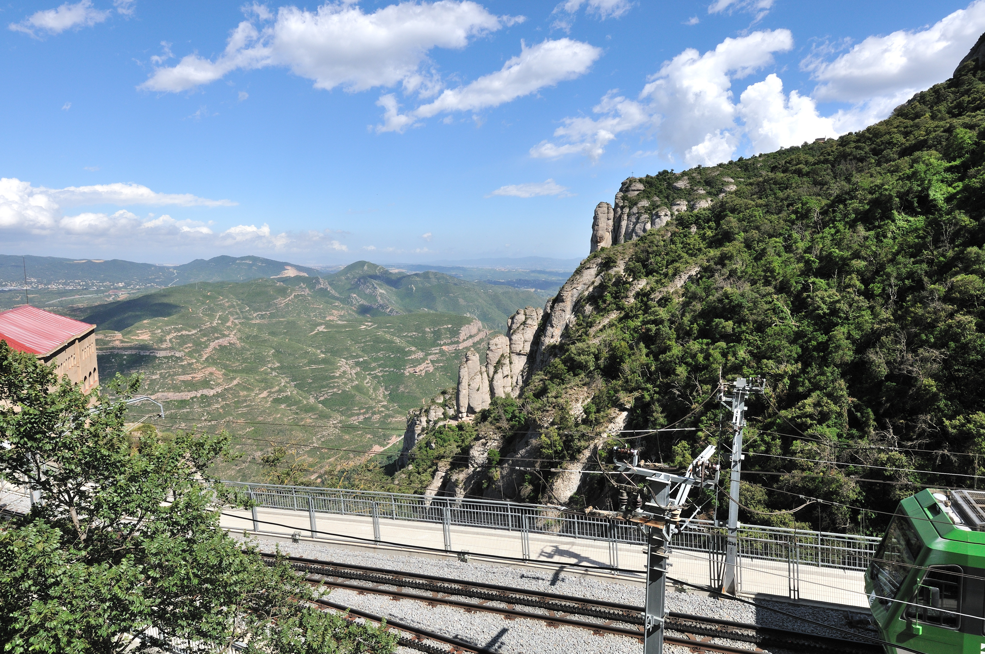遊歩道からの眺め (16:48) 山麓のモニストロル・デ・モンセラート駅からモンセラート修道院までを結んでいるラック式登山鉄道。 「東南東方向」MAPLay. 2 Y |