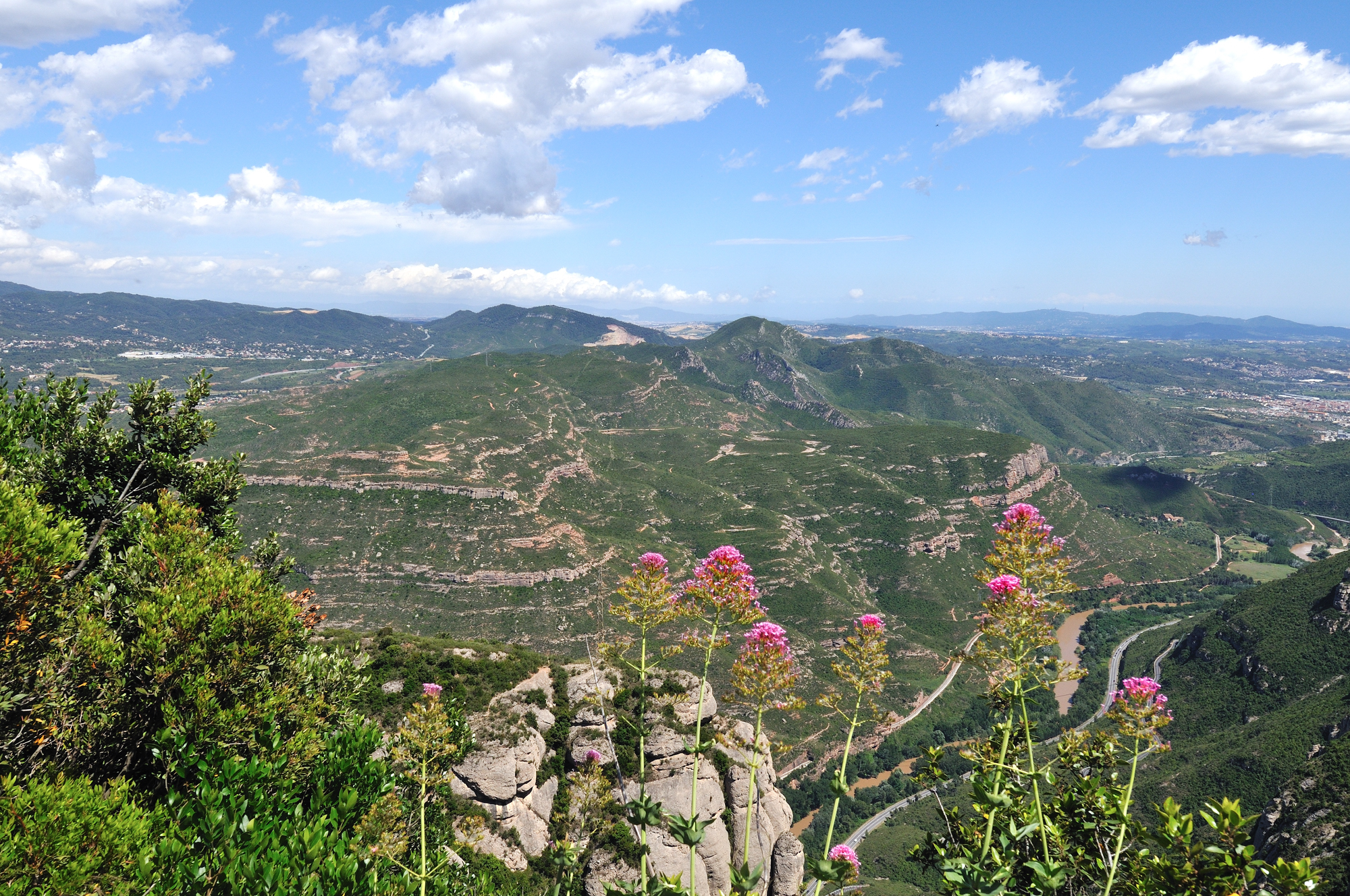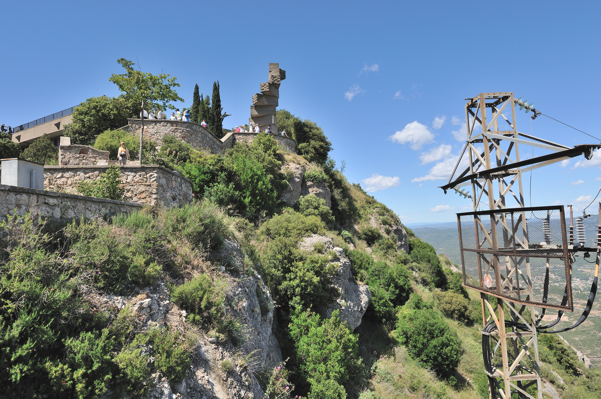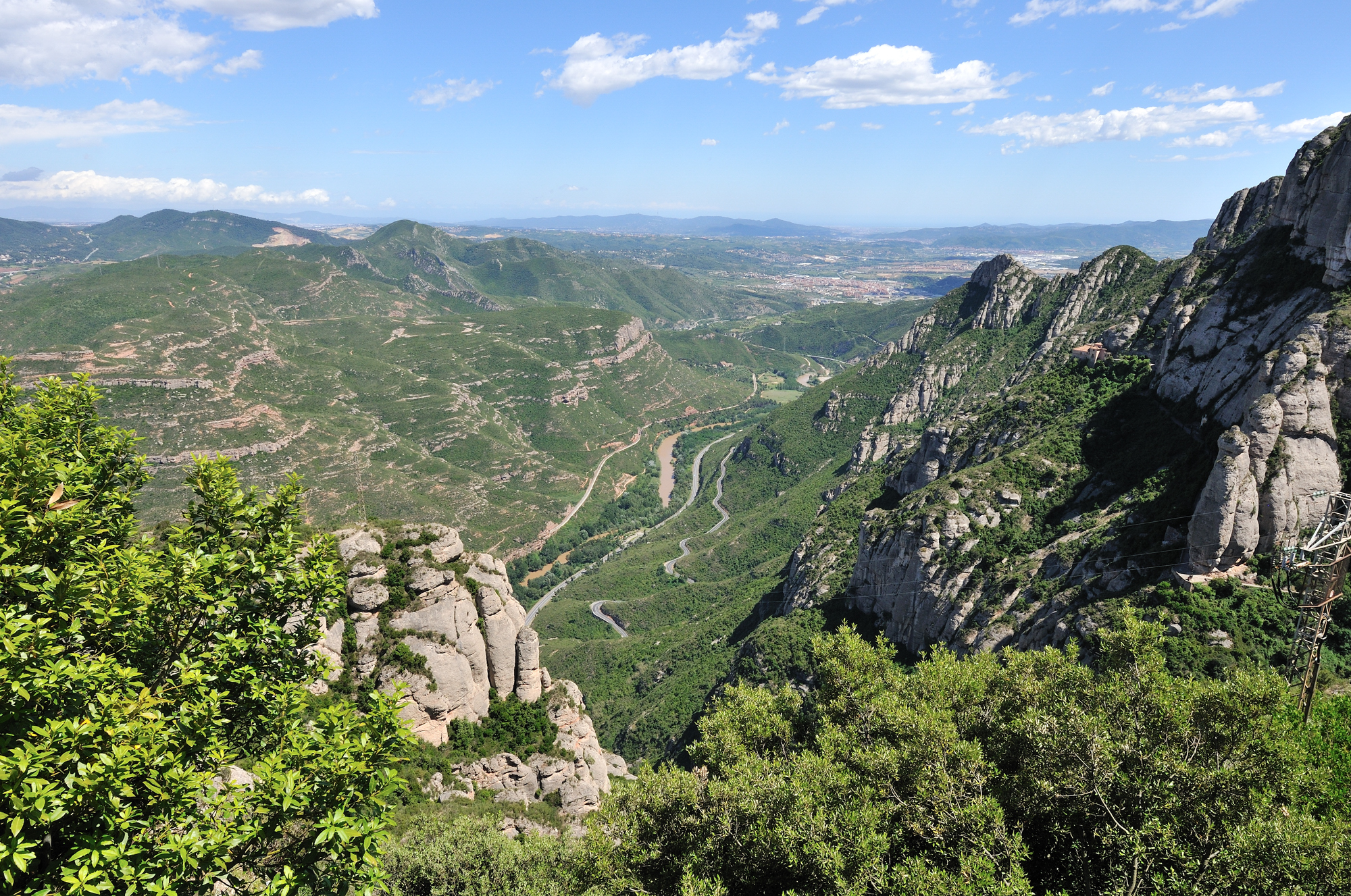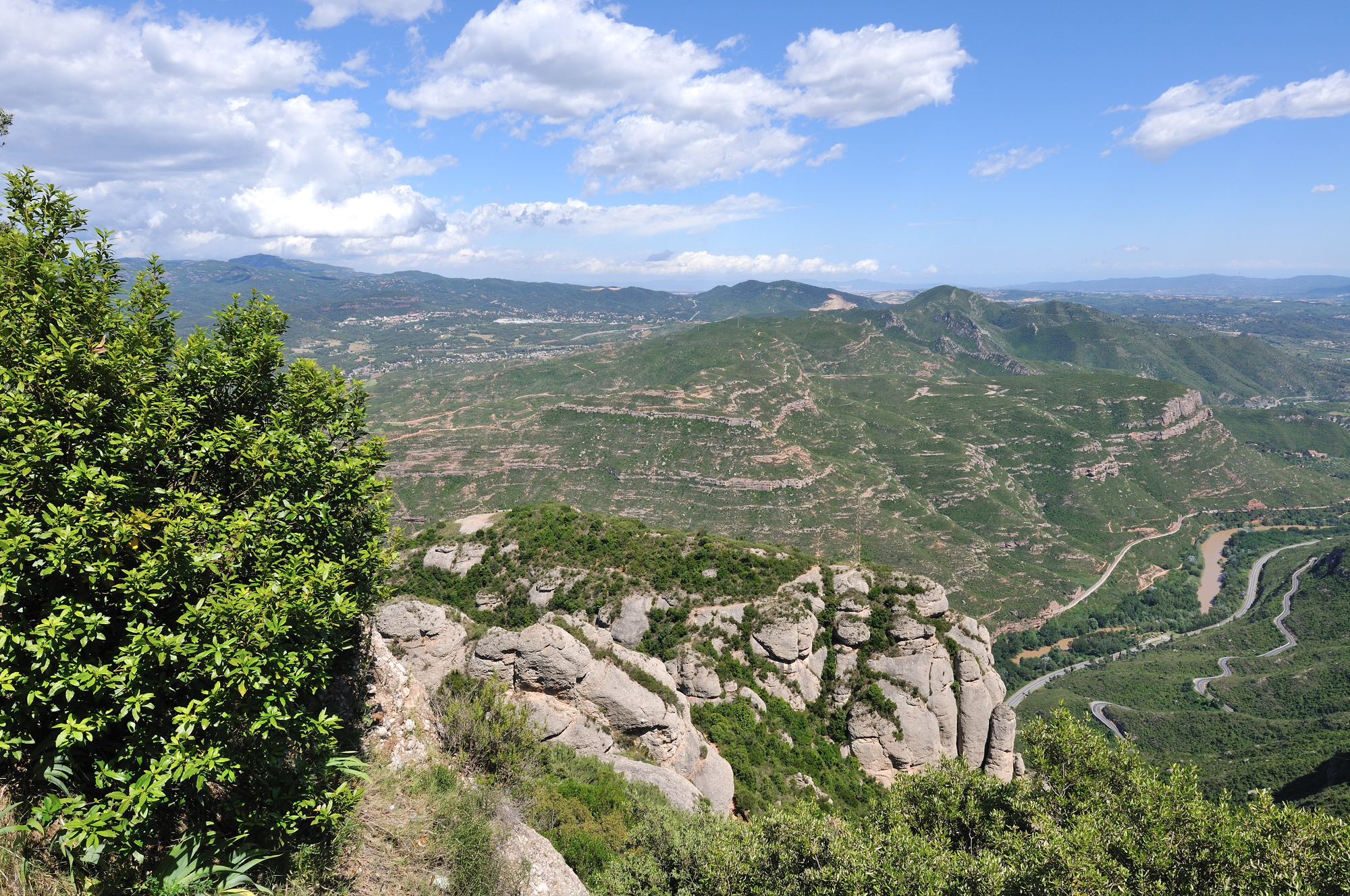 遊歩道からの眺め (16:48) 山麓のモニストロル・デ・モンセラート駅からモンセラート修道院までを結んでいるラック式登山鉄道。 「東南東方向」MAPLay. 2 Y |