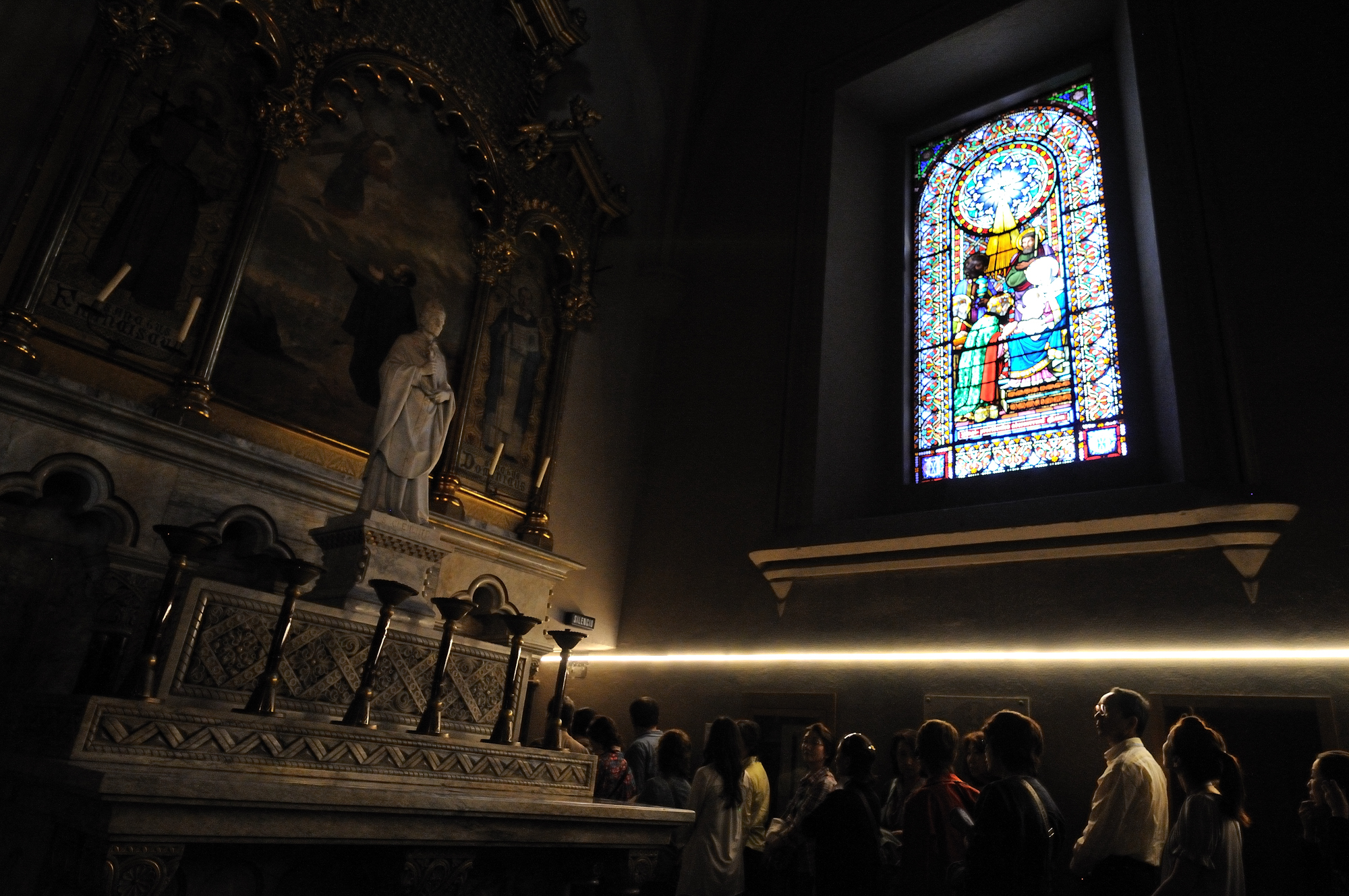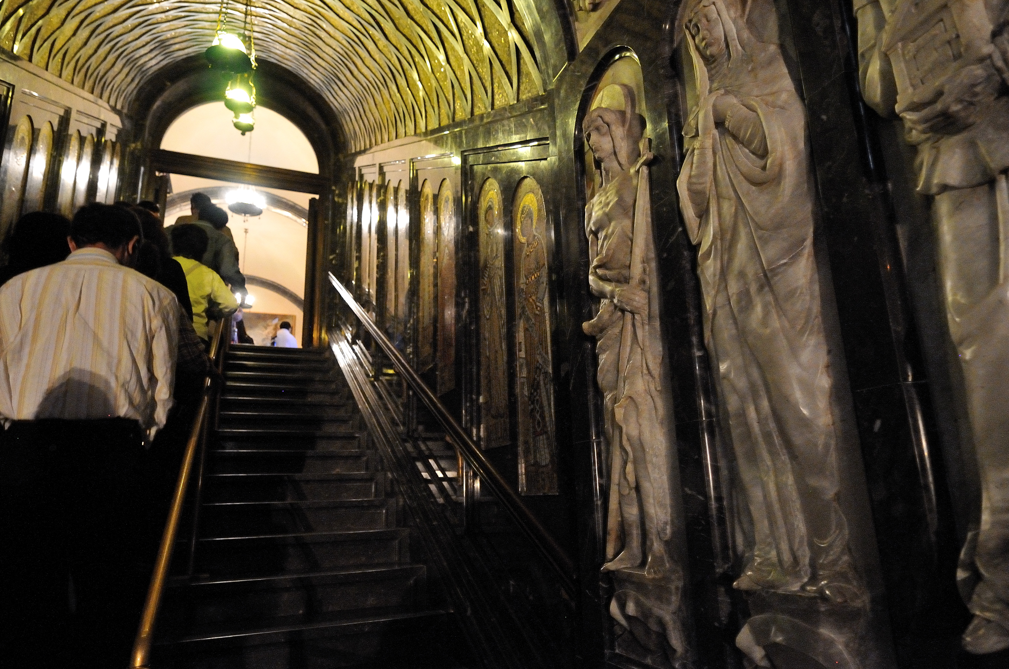 | 黒いマリア像への通路 (側廊) には多くの房があり、そこにある彫刻や絵画など | ||