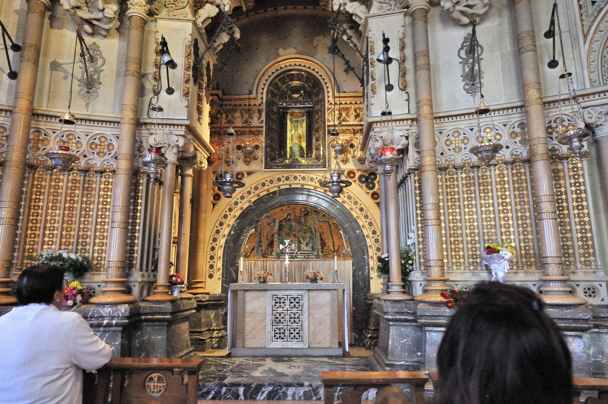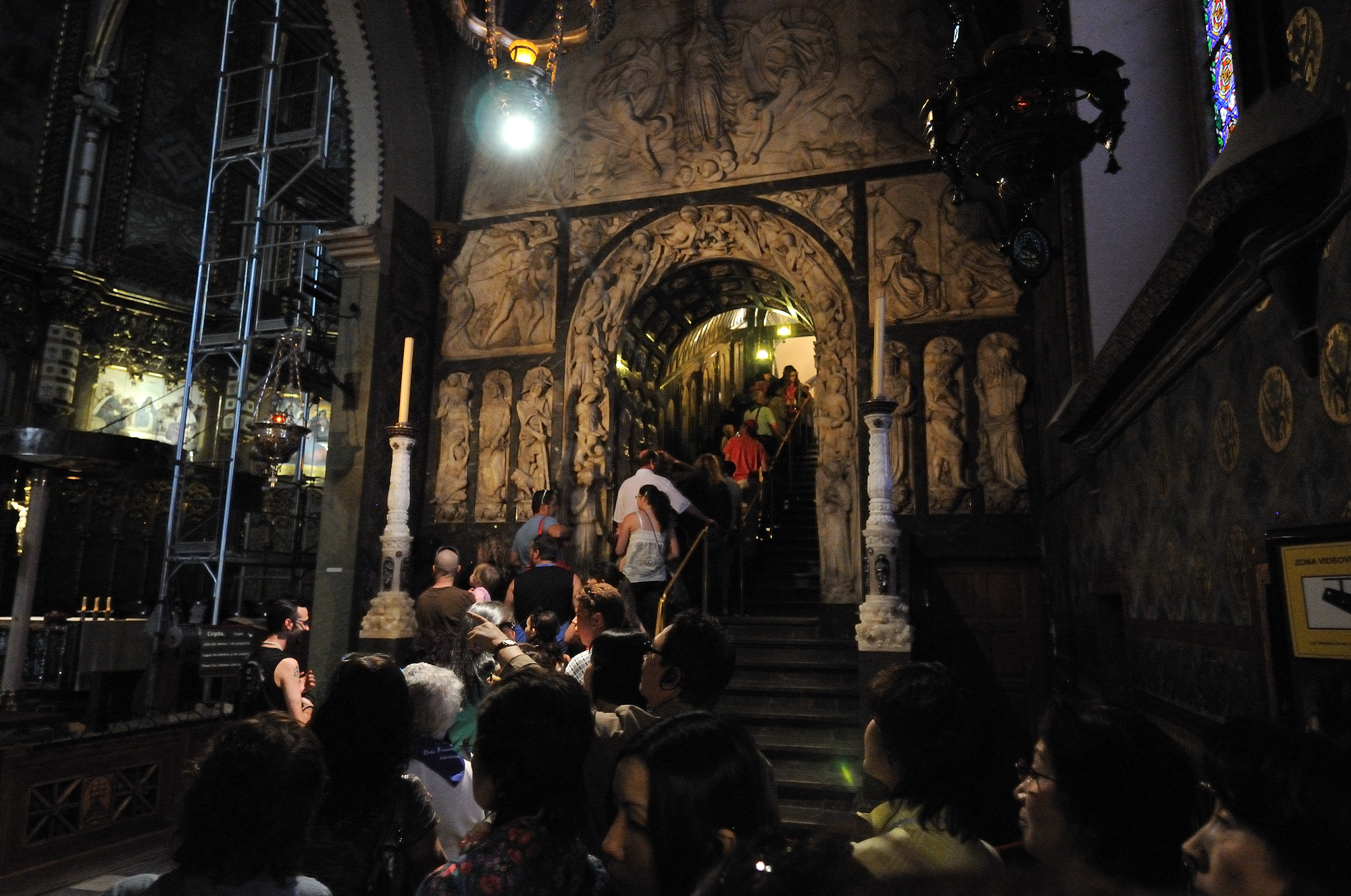 | 右の側廊を通って、ラ・モレネータ [La Moreneta] と呼ばれている黒いマリア像の拝観に向かう (16:10) 「北東方向」MAPLay. 2 P |