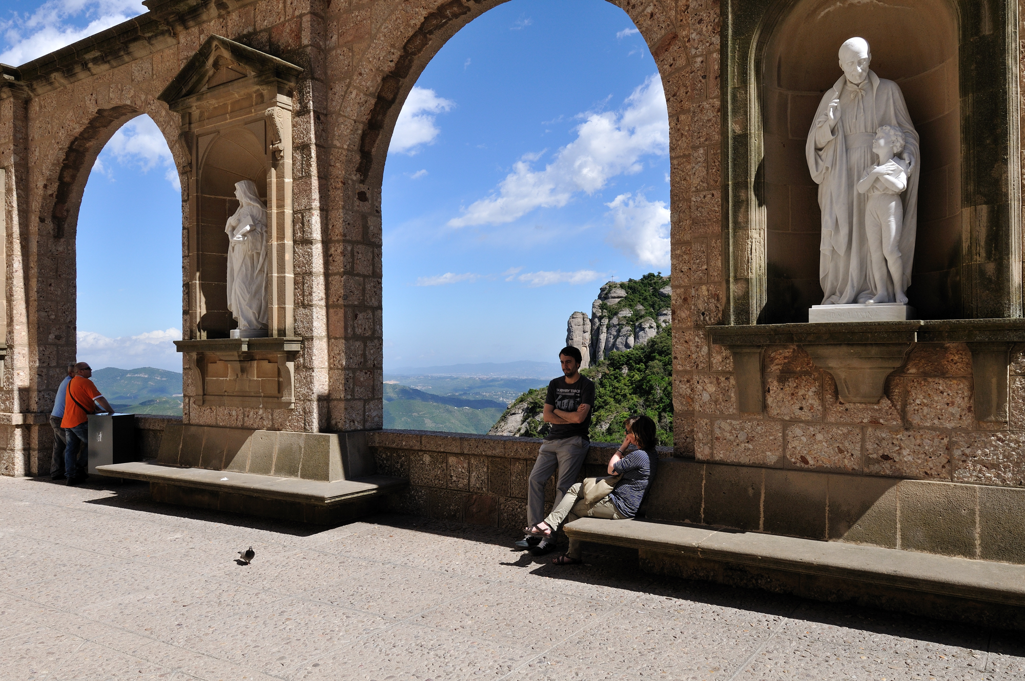 | モンセラート [Montserrat] モンセラートとは「のこぎり山」という意味で、バルセロナから北西53Kmにある標高1235mの岩山。ここは、古くからキリスト教の聖地とされ、カタルーニャ地方をはじめスペイン全土から大勢の巡礼者が訪れる。モンセラートは9世紀後半、山中の洞窟で聖母マリア像が発見されたという伝説から歴史が始まっている。11世紀に山の中腹にベネディクト会の修道院が創設され、そこに発見されたマリア像が安置されていたと言われている。16世紀後半に現在の大聖堂が完成すると聖母マリア像は移され、多くの巡礼者が訪れるようになった。このマリア像はラ・モレネータ [La Moreneta] (カタルーニャ語で少し暗い肌を意味する) と呼ばれる黒いマリア像で、ナポレオンが当地に侵攻した際でも、このマリア像だけは土地の人の手によって隠され守られたと言われている。1970年代のフランコ独裁時代にはカタルーニャ語が禁止されていたが、ここだけは終始カタルーニャ語で祭儀を行い、カタルーニャの独立の象徴的な存在でもあった。 ギター演奏 (ぺぺ・ロメロ) |