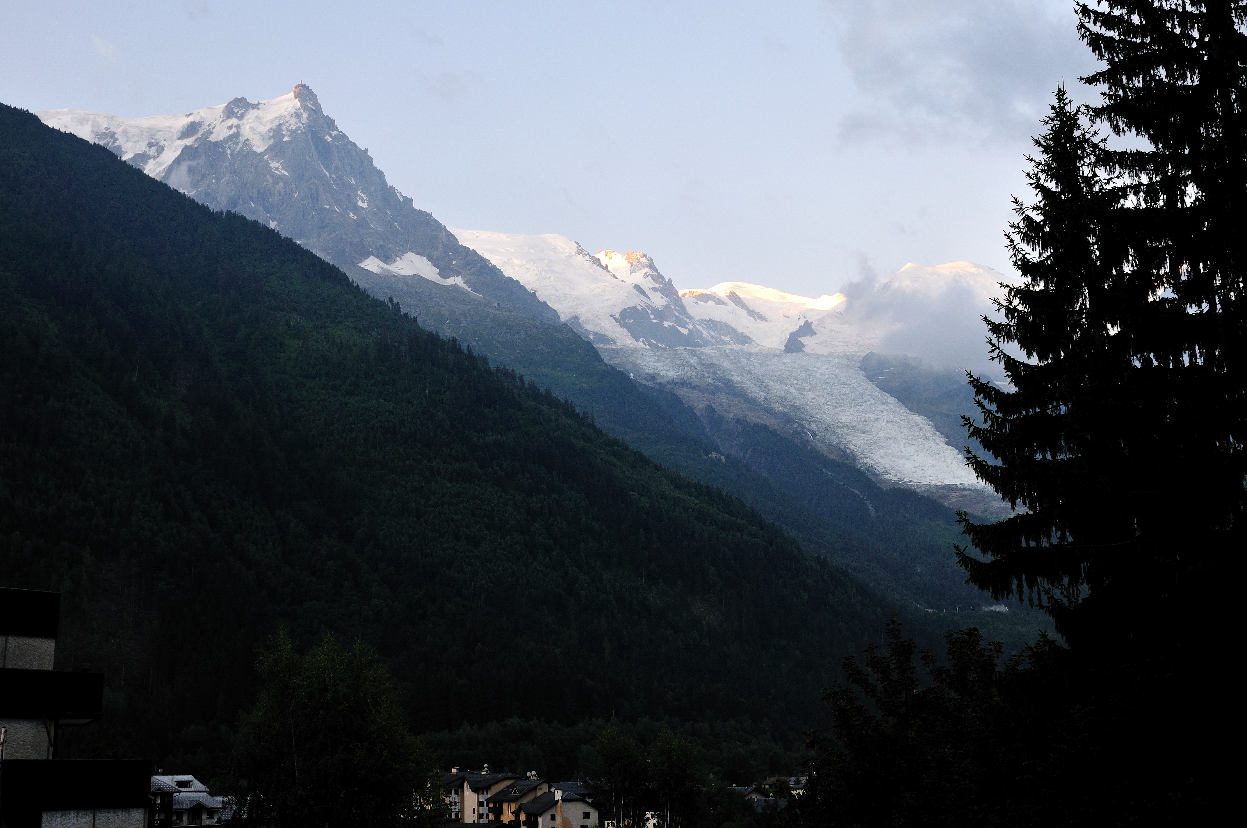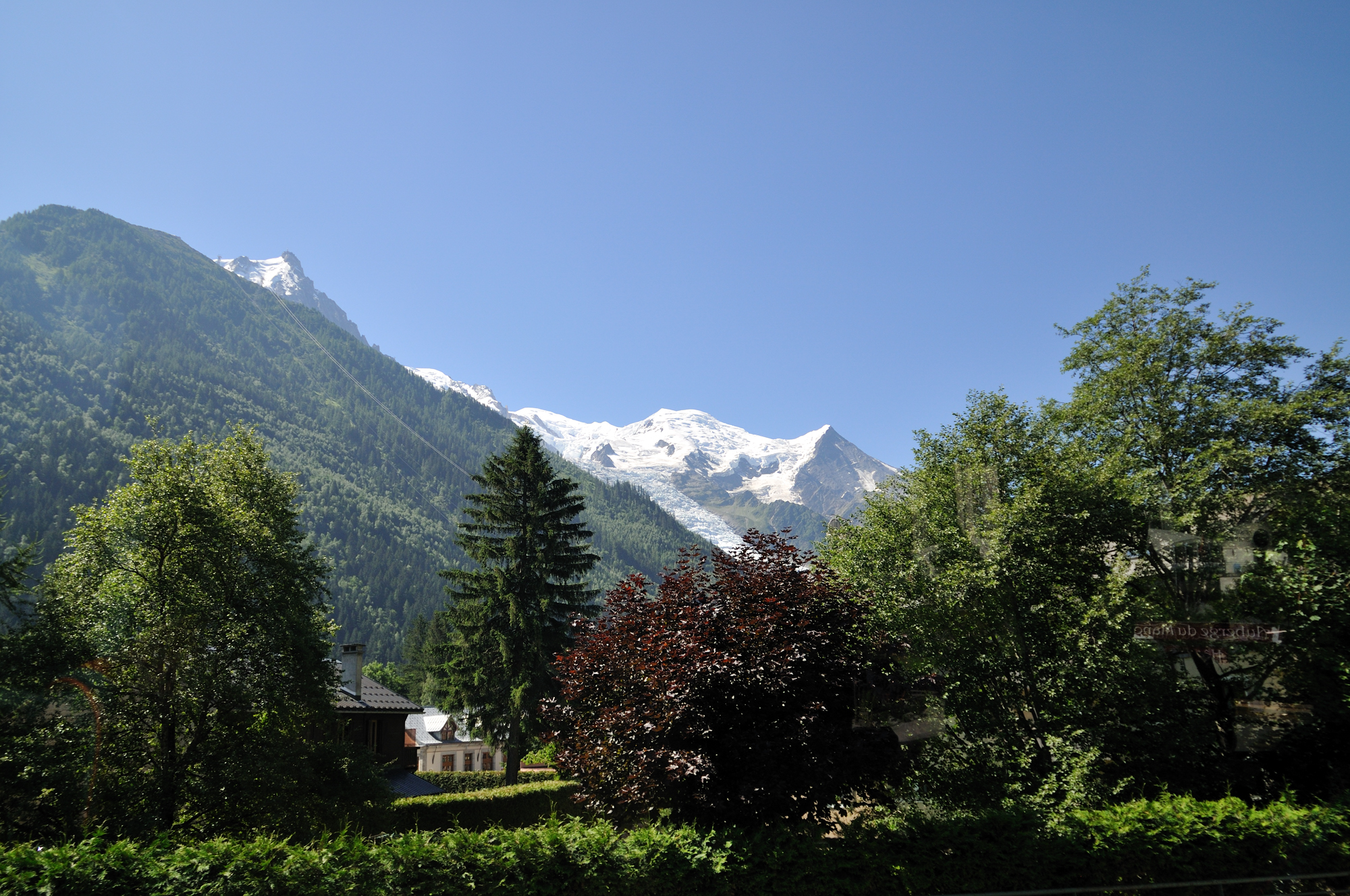 | ホテル・ル・プリウレ [hotel Le Prieure] の窓からモンブランを望む (06:06)「南」MAP |