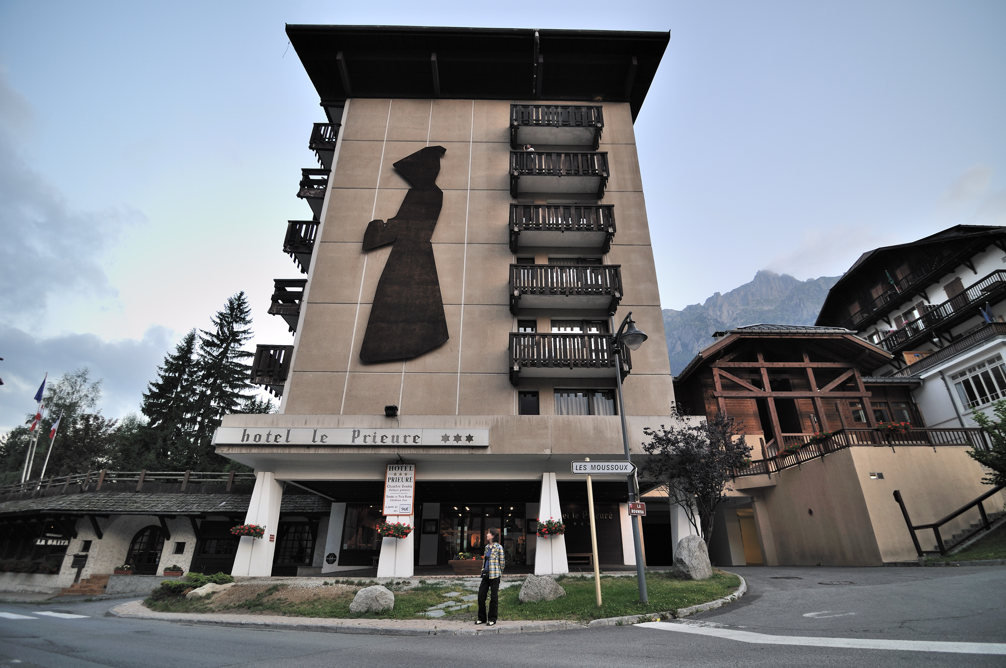 | ホテル・ル・プリウレ [hotel Le Prieure] の窓からモンブランを望む (06:07)「南」MAP |