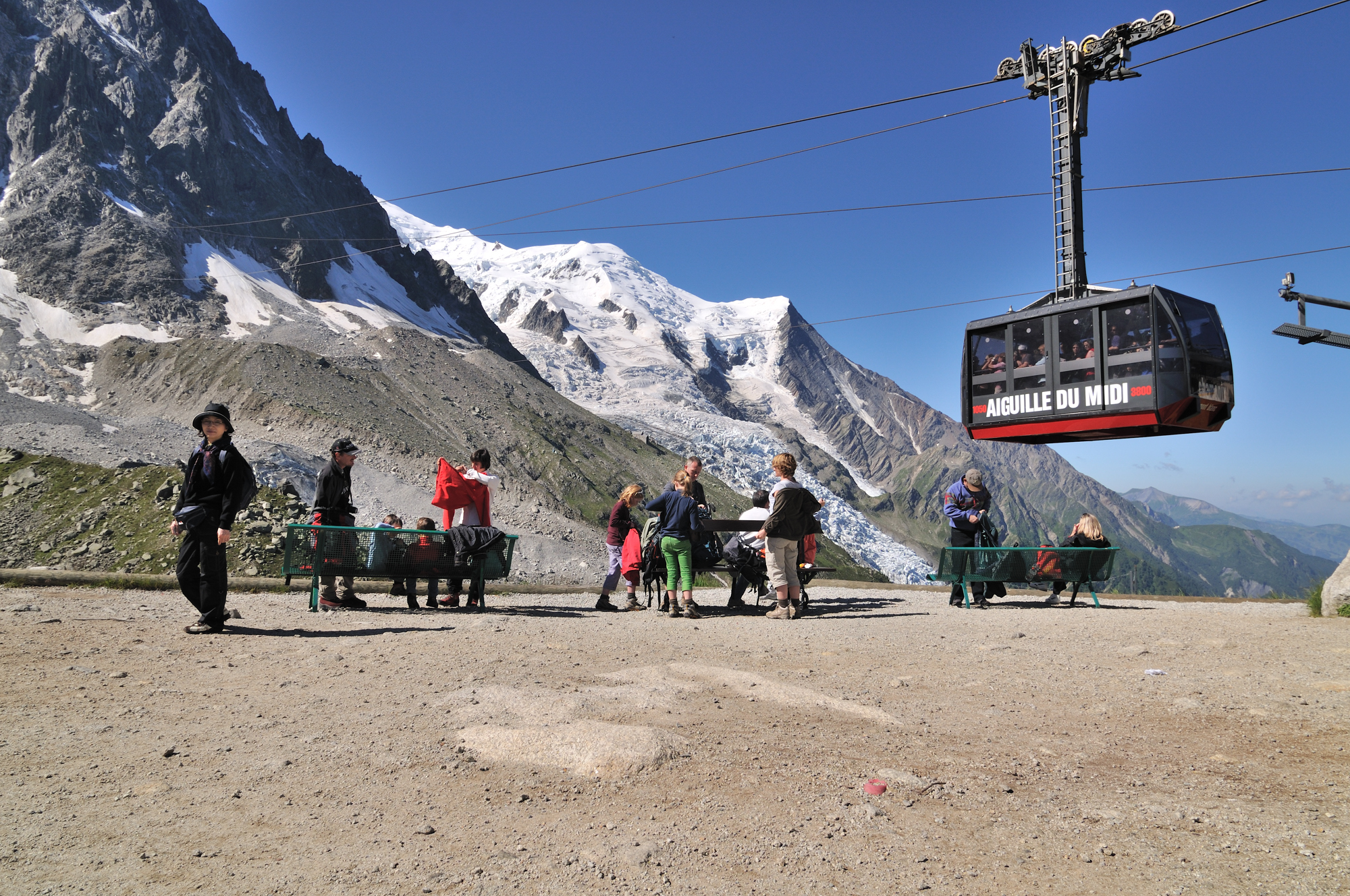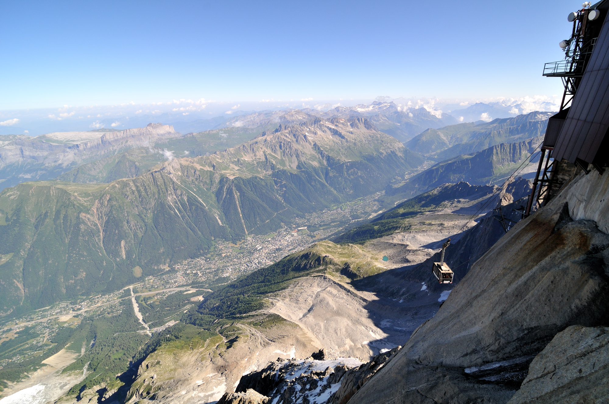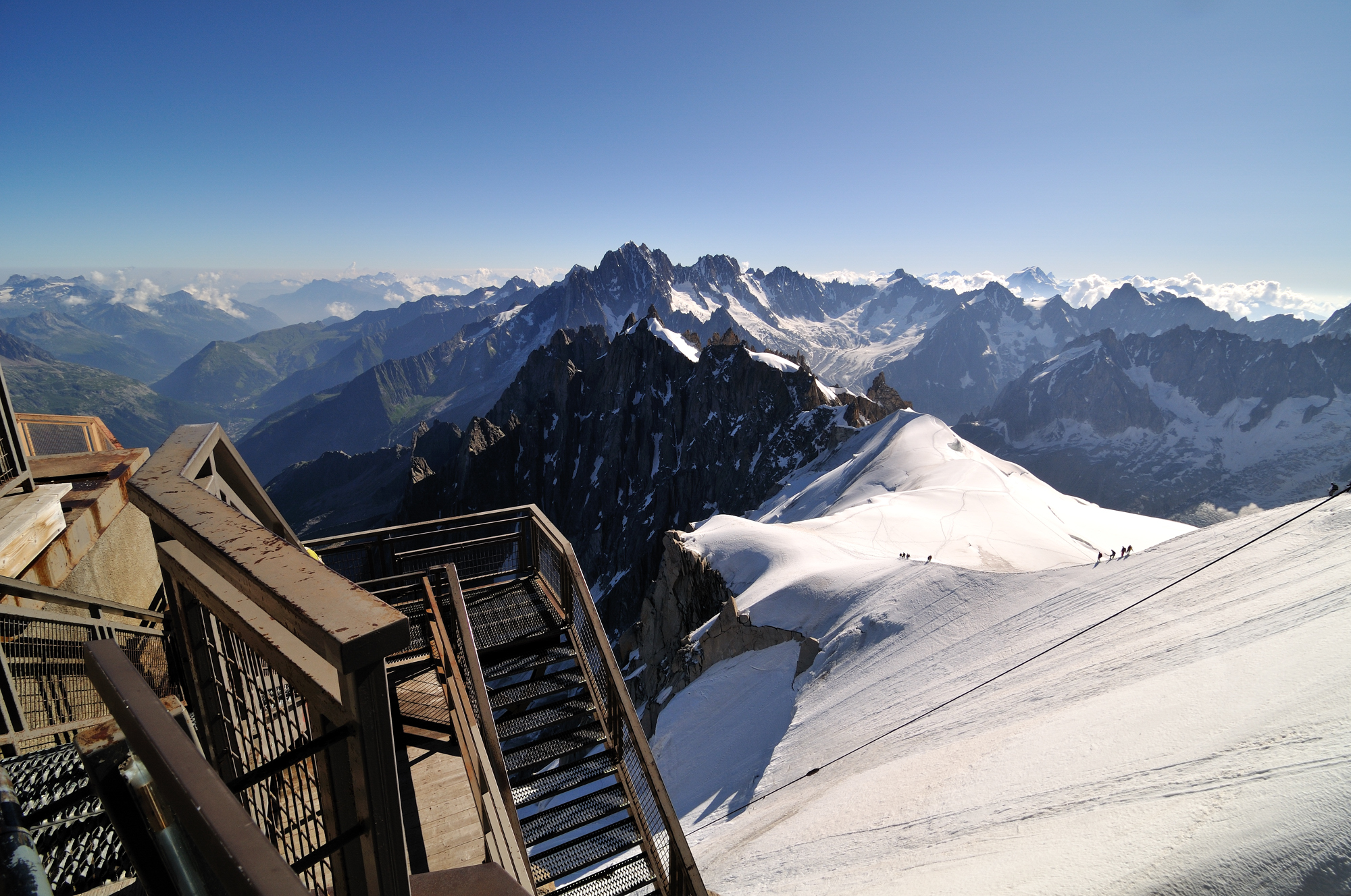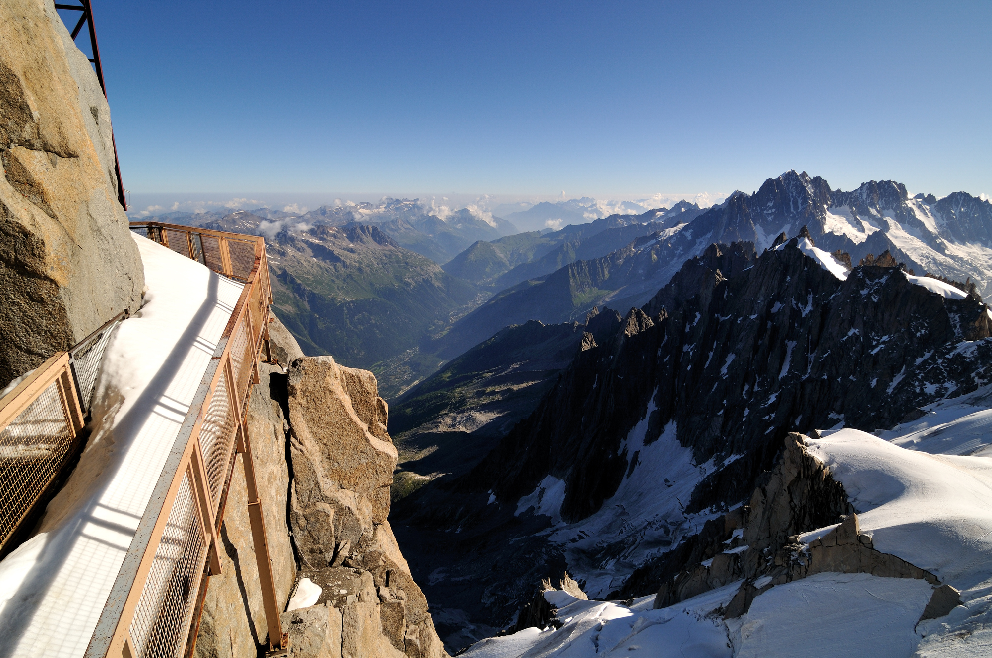 | エギーユ・デュ・ミディ [Aiguille du Midi] 展望台 (フランス領) 町外れのエギーユ・デュ・ミディ[Aiguille du Midi]展望台行きロープウェイで、中間駅のプラン・デュ・エギューユで乗り継ぎ約20分で到着。 標高3842mにある展望台で目の前にモンブラン[Mont-Blanc]「"白い山"という意味」が横たわり、晴れた日は遥かマッターホルンやモンテローザまで見渡せる。 |