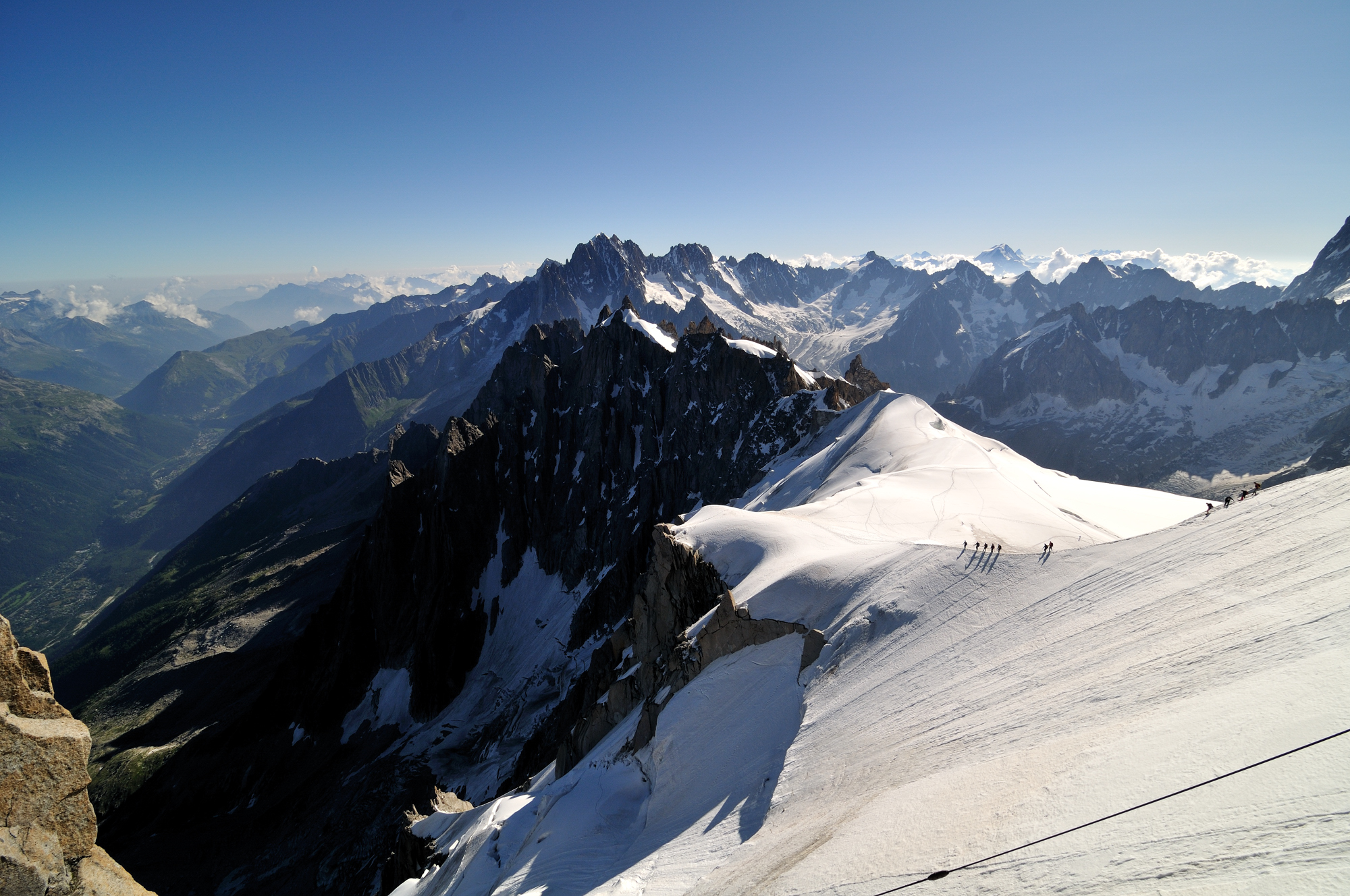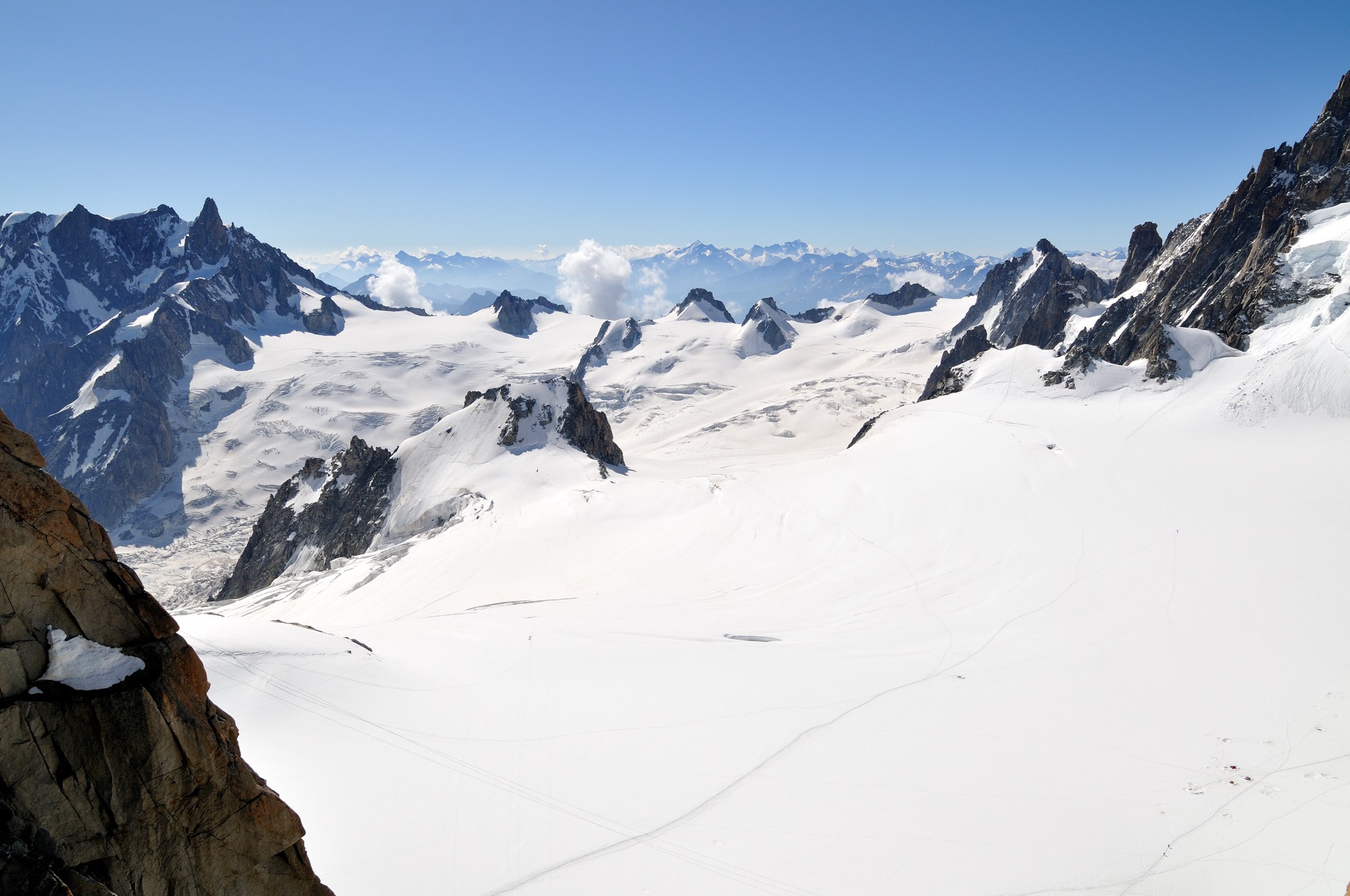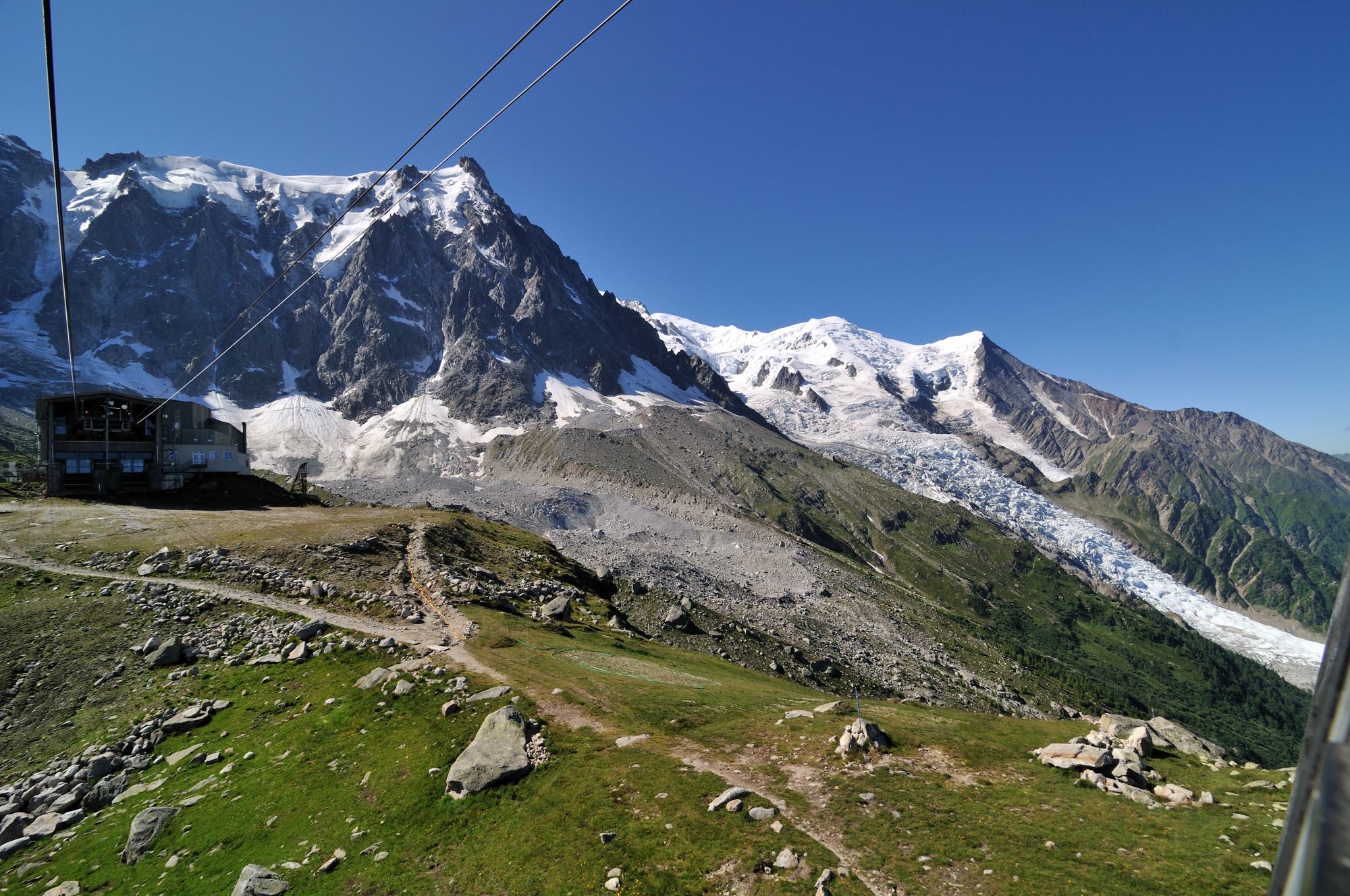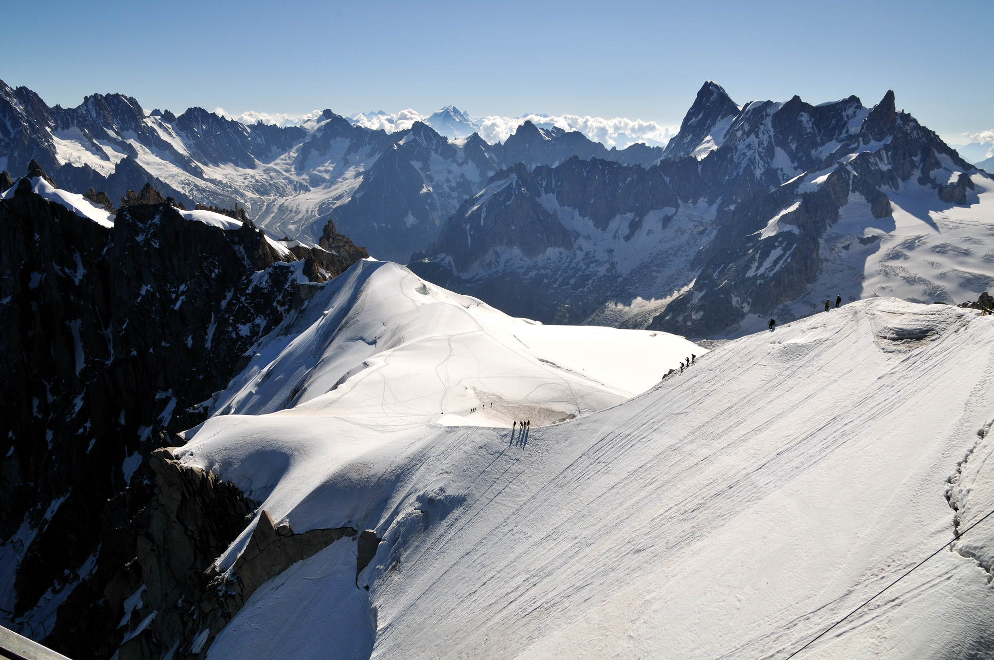 | エギーユ・デュ・ミディ [Aiguille du Midi] 展望台 (フランス領) 町外れのエギーユ・デュ・ミディ[Aiguille du Midi]展望台行きロープウェイで、中間駅のプラン・デュ・エギューユで乗り継ぎ約20分で到着。 標高3842mにある展望台で目の前にモンブラン[Mont-Blanc]「"白い山"という意味」が横たわり、晴れた日は遥かマッターホルンやモンテローザまで見渡せる。 |