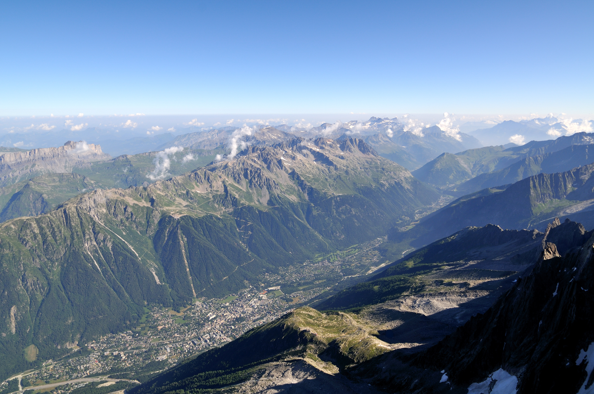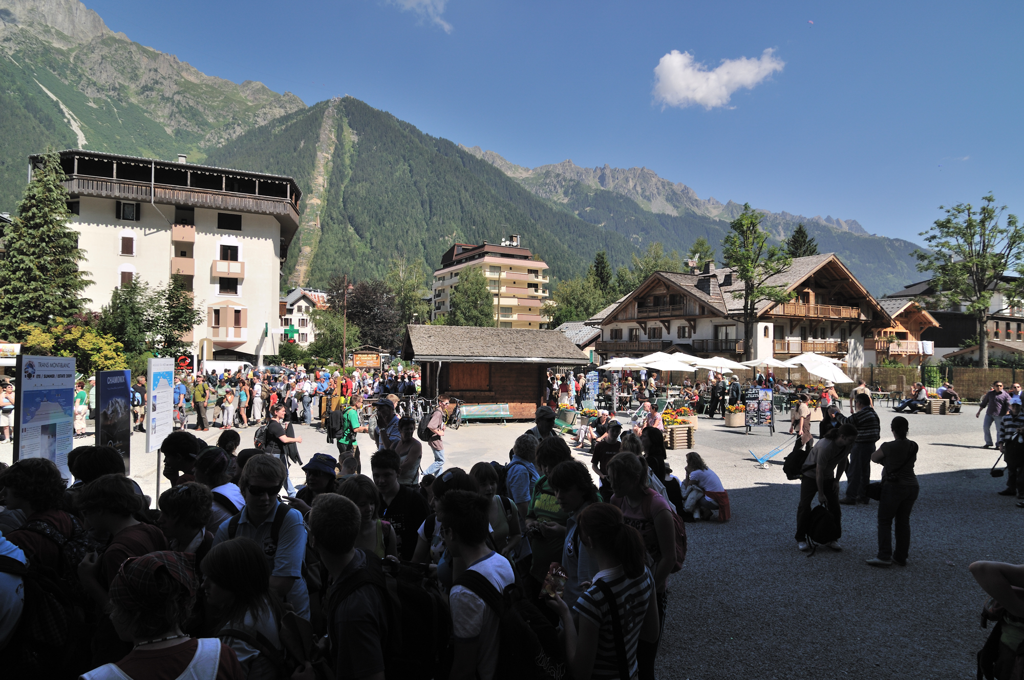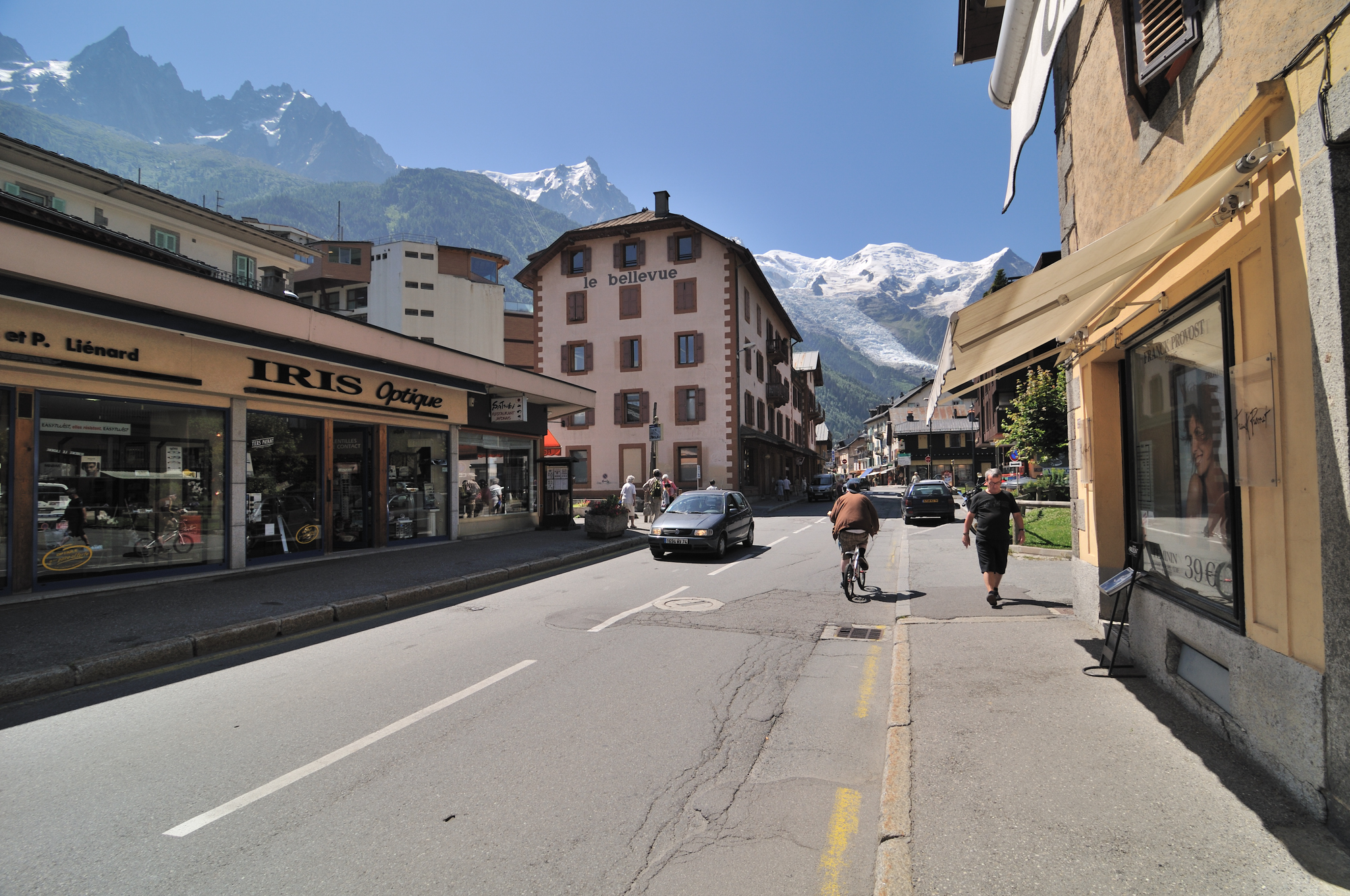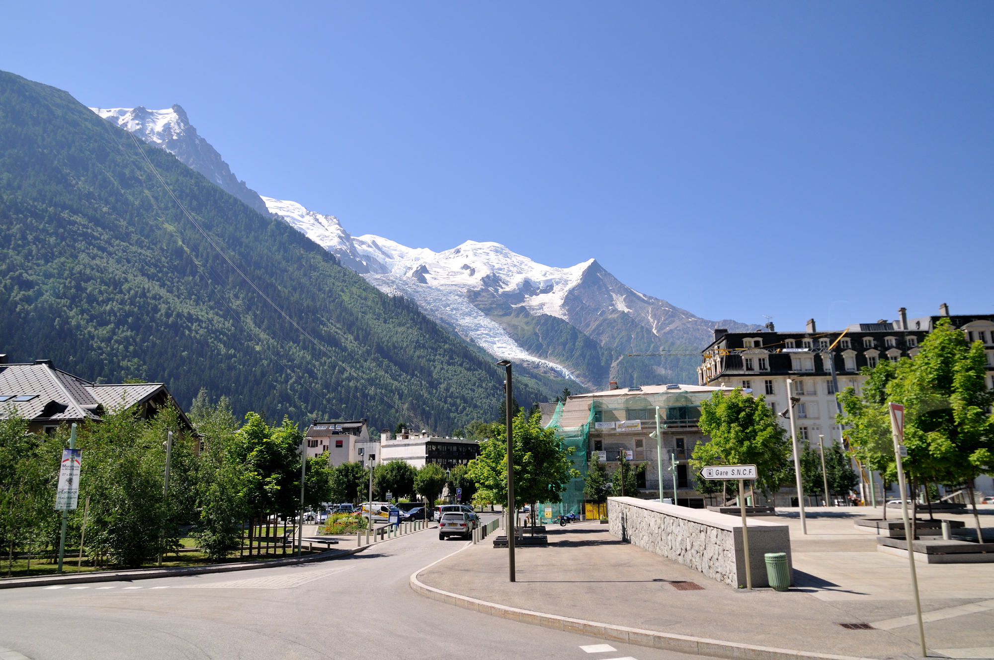 | シャモニ [Chamonix] (フランス領) 標高4810mのモンブランはヨーロッパ大陸の最高峰、シャモニーはその北側の麓にあるフランス領の町。以前は、山間の小さな村に過ぎなかったが、1786年8月、ジャック・バルマとミッシェル・パカールが悪魔の棲む山と恐れられていたモンブランに初登頂したのを契機に、アルピニズムの幕が切って落とされ、アルプスきっての登山基地として、多くのアルピニストがこの町を訪れるようになった。今では、レストランやおみやげ店が軒を連ね、リゾートを兼ねた町になっている。 |