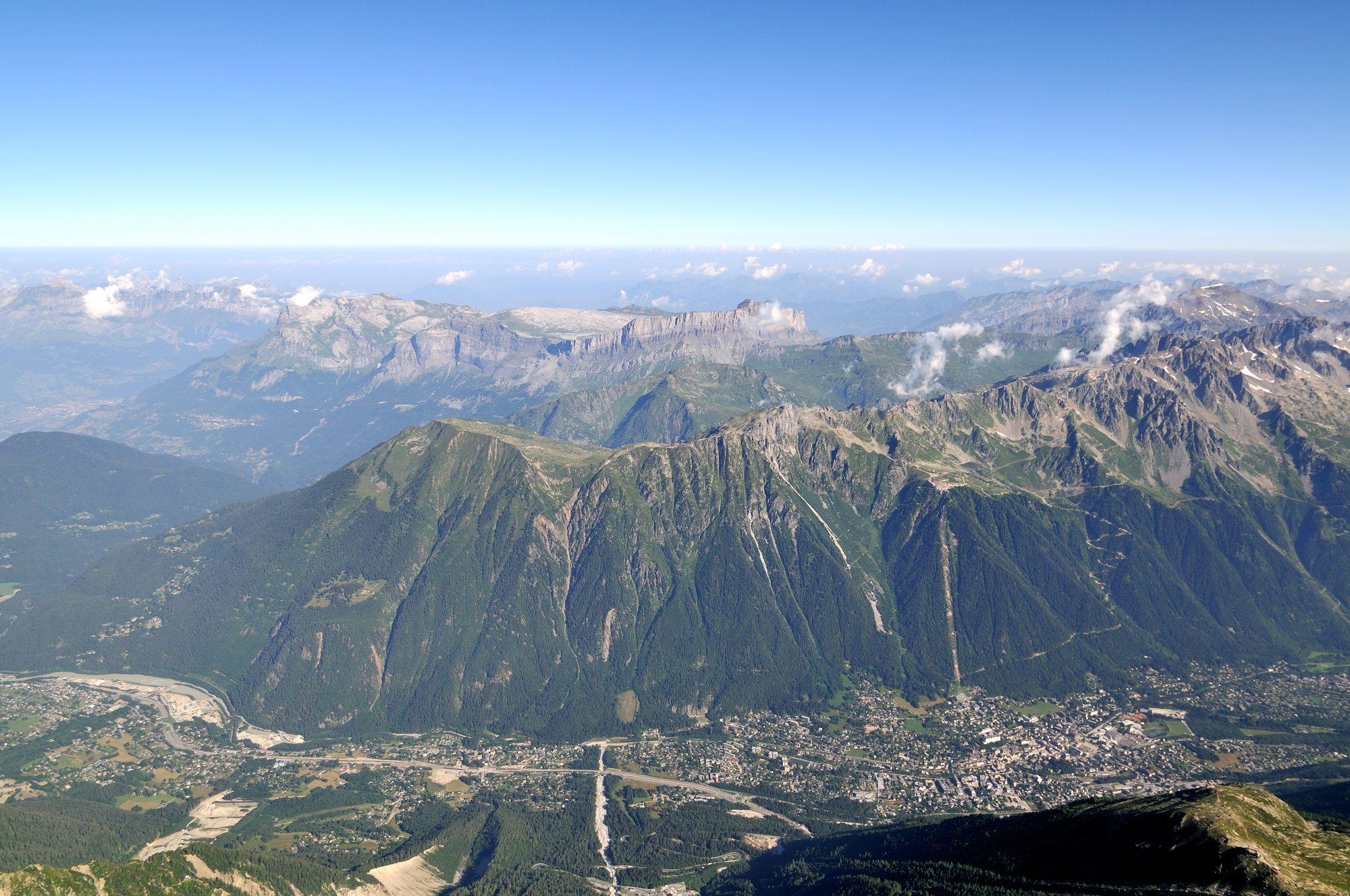 | ロープウェイ駅 (09:05)「南東」MAP ロープウェイ中間駅 "プラン・ド・レギューユ" [Plan de l'Aiguille] からの眺め。 |