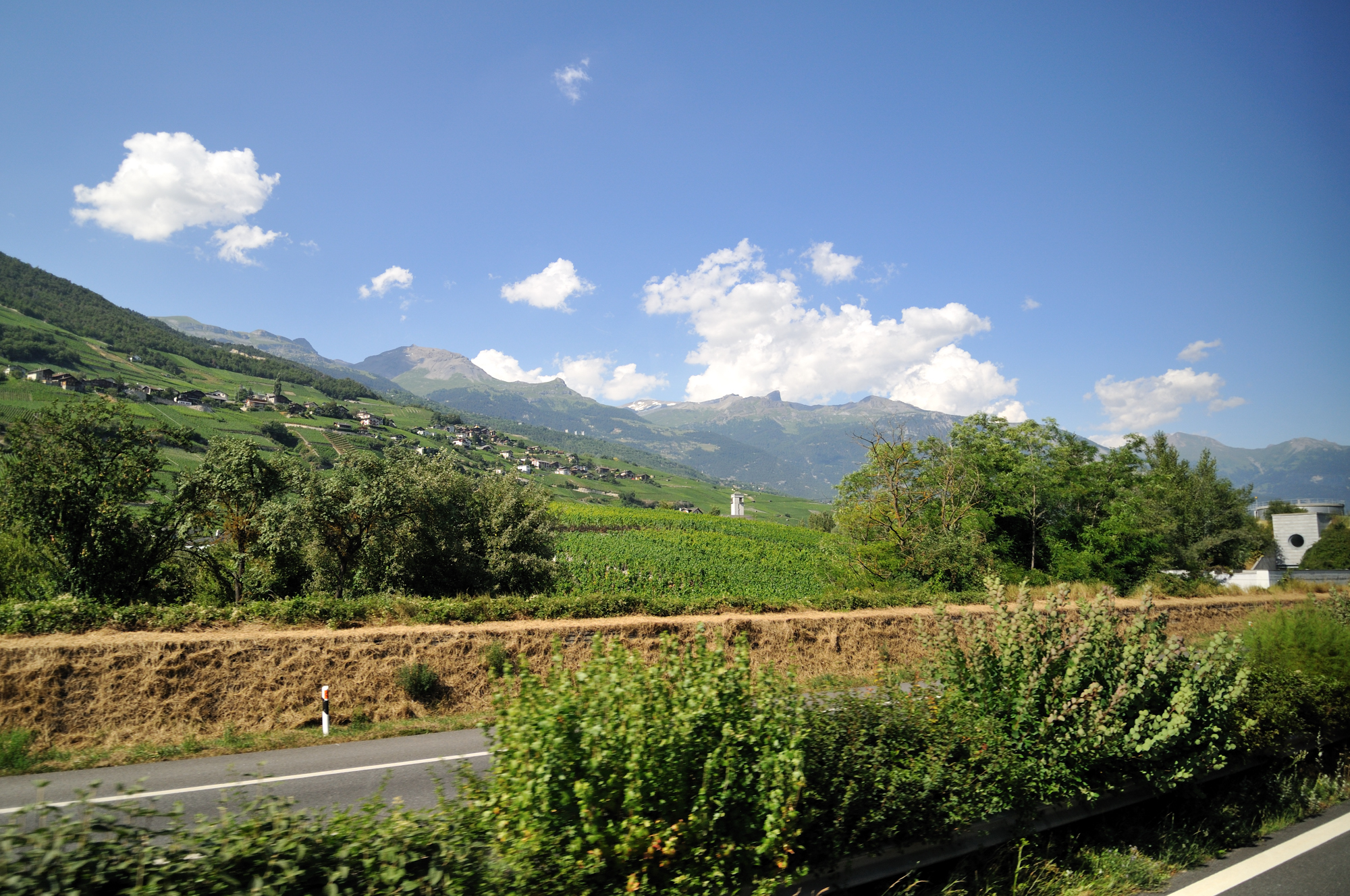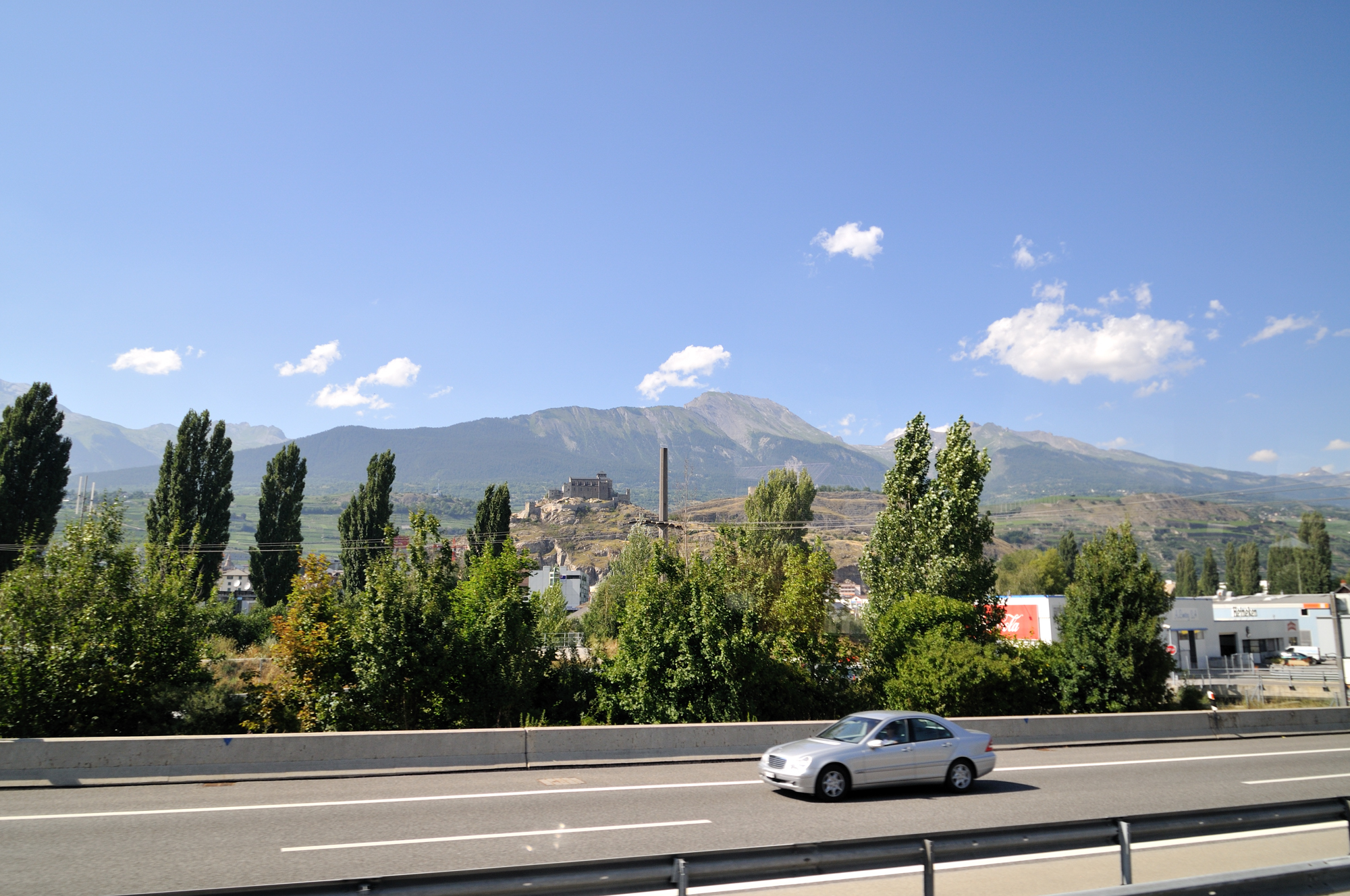 | 車窓から (16:37)「北北西」MAP 丘の上に見えるのは、ヴァレレ大聖堂 [Valère Basilica] 。 |