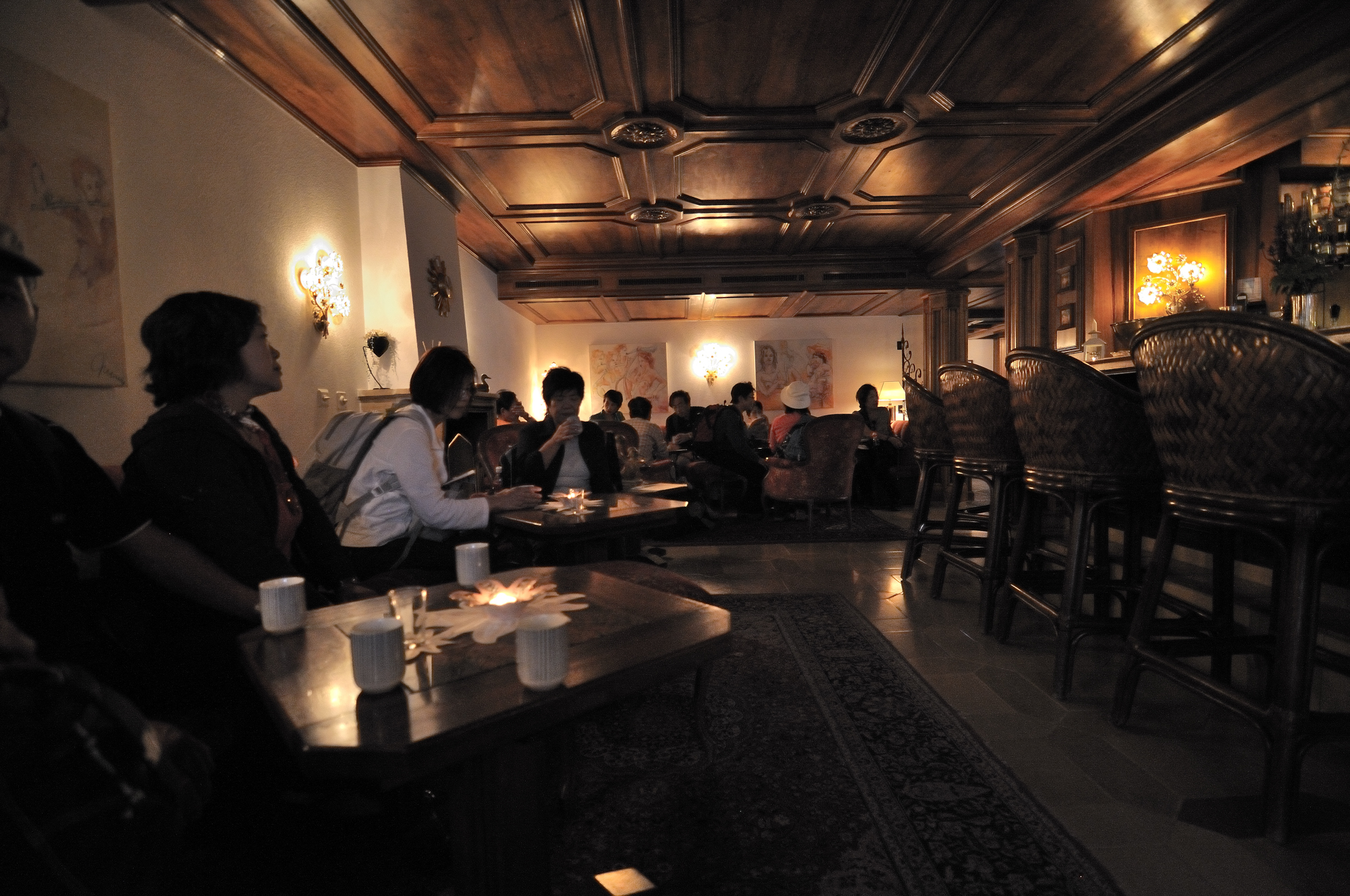 | "ホテル ゾンネ" [Hotel Sonne] に到着 (18:39) MAP ここのホテルは、日本茶で持て成してくれる。 |