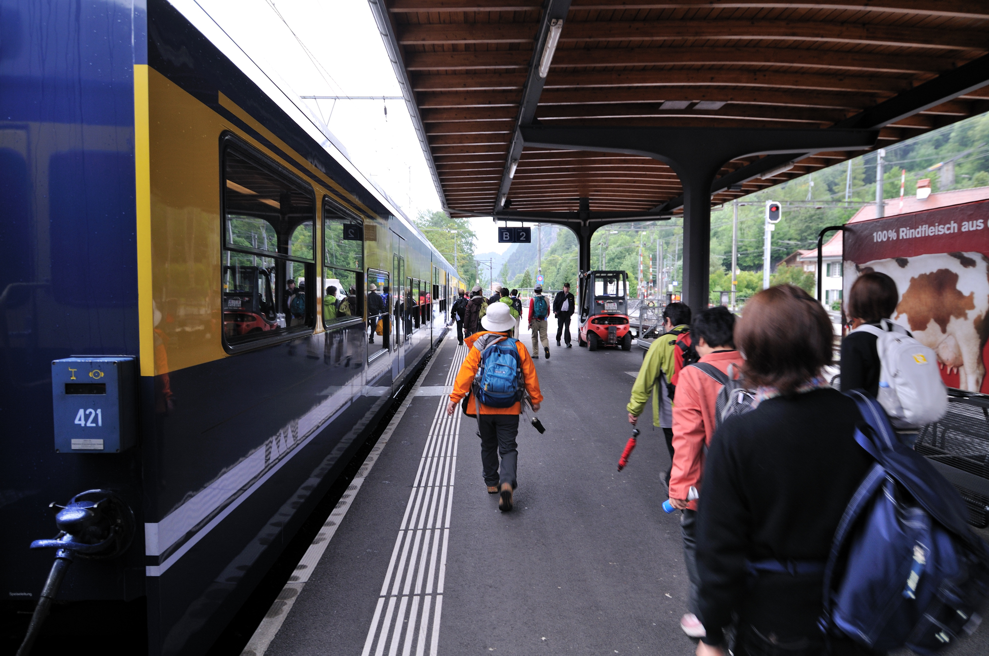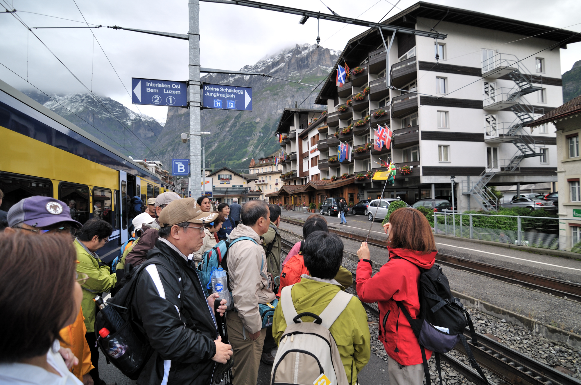 | グリンデルワルト行きホーム、駅舎の右反対側はユングフラウヨッホ行きホーム (14:41)「北東」MAP |