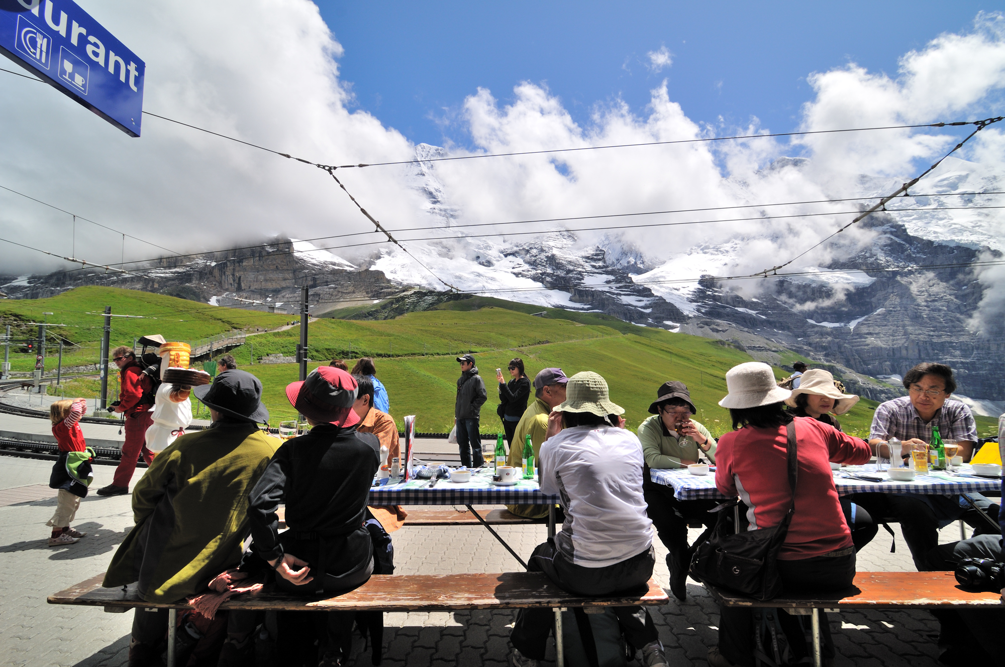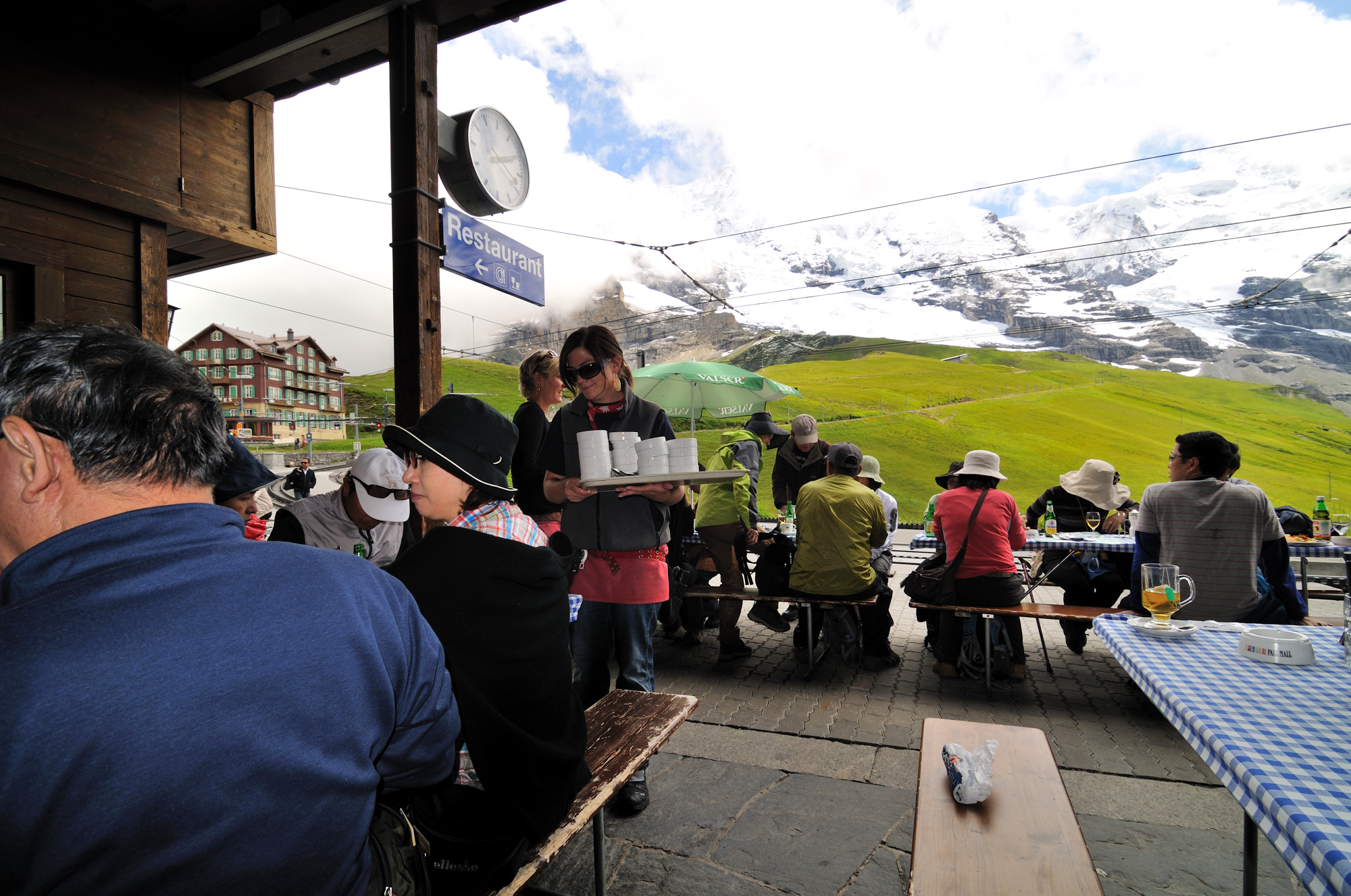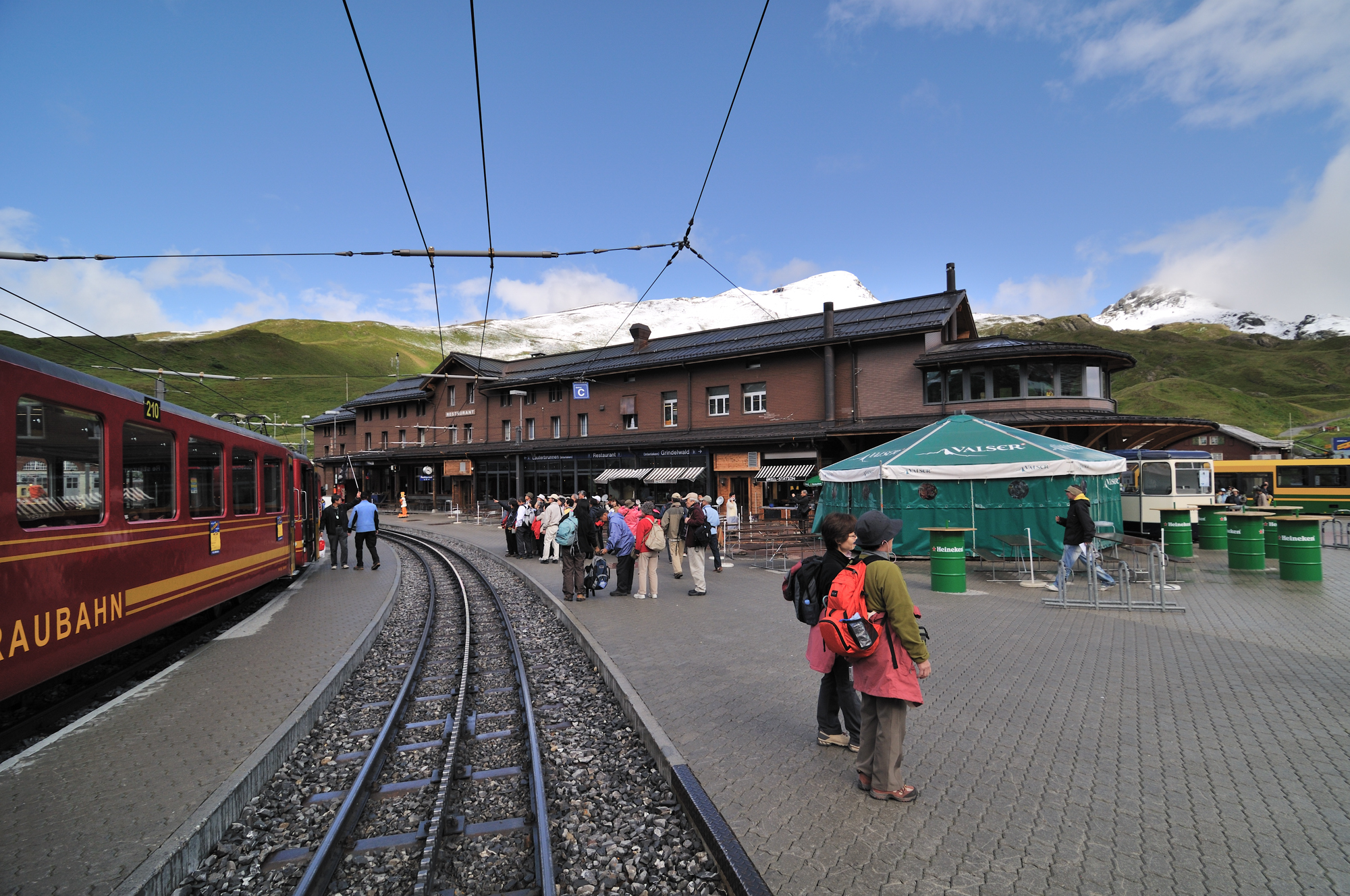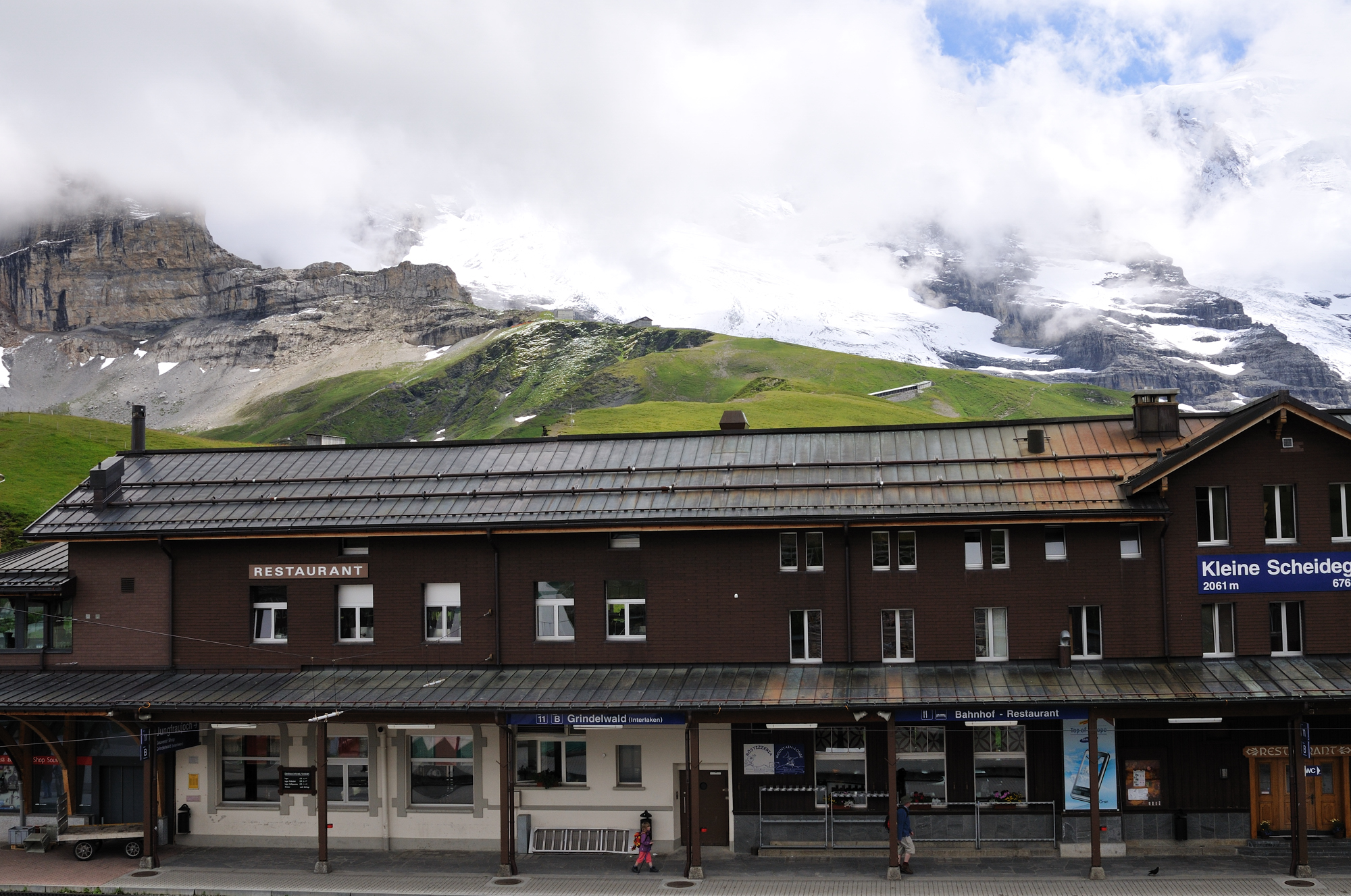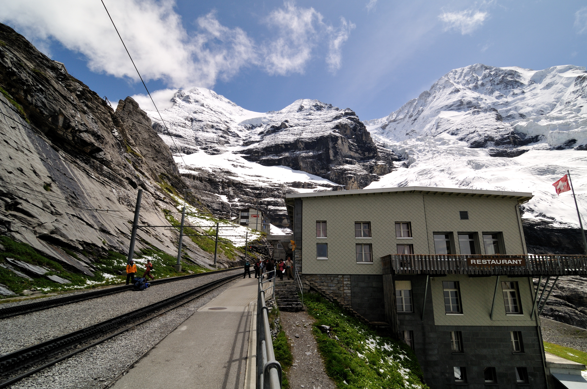 | 左はアイガー、右はメンヒ、駅舎の後方はアイガー氷河 (12:43)「東」MAP |