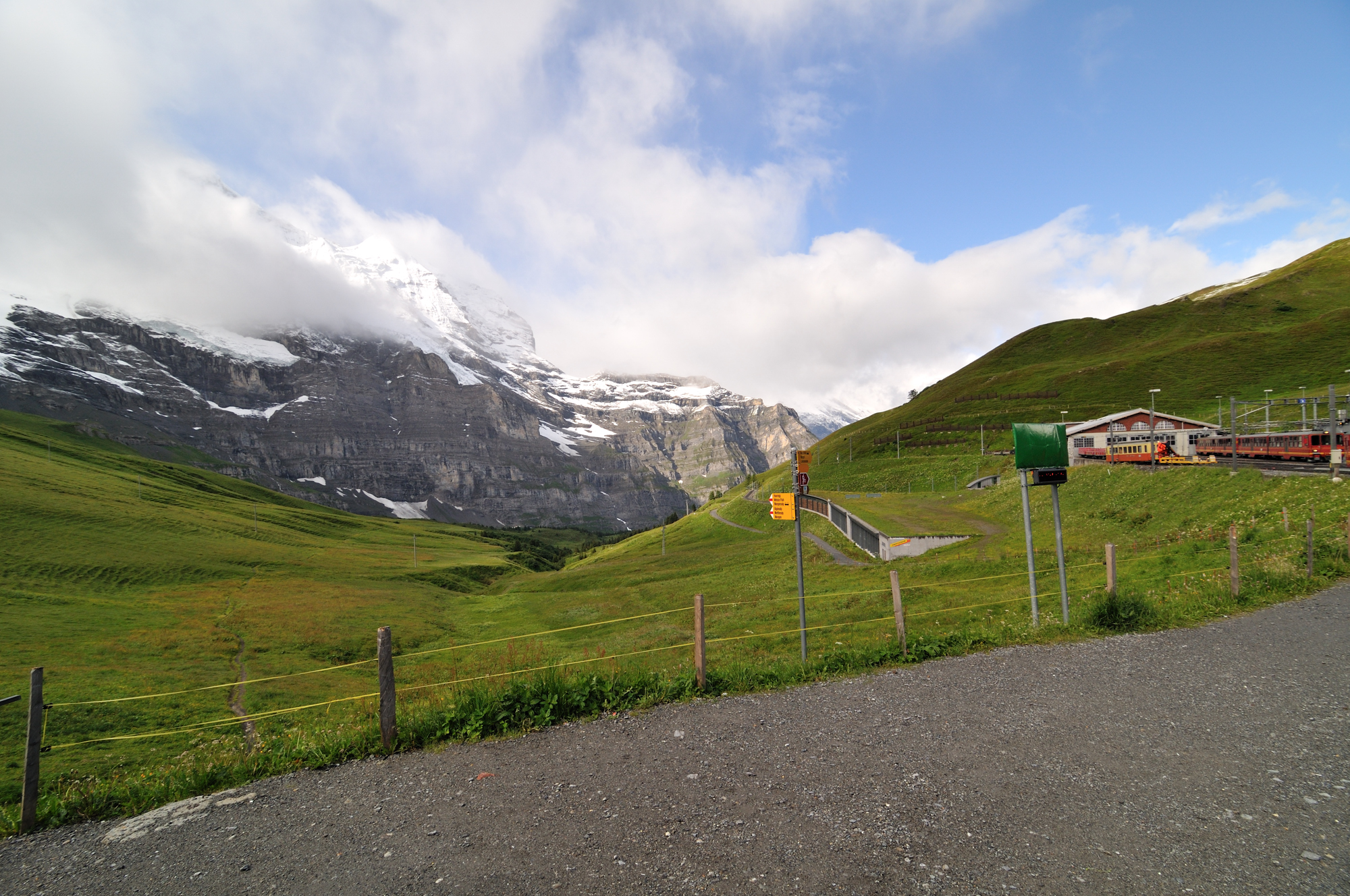 | アイガーグレッチャー駅、目前に"アイガー"が迫っている、線路が左にカーブした所に、"アイガートンネル"