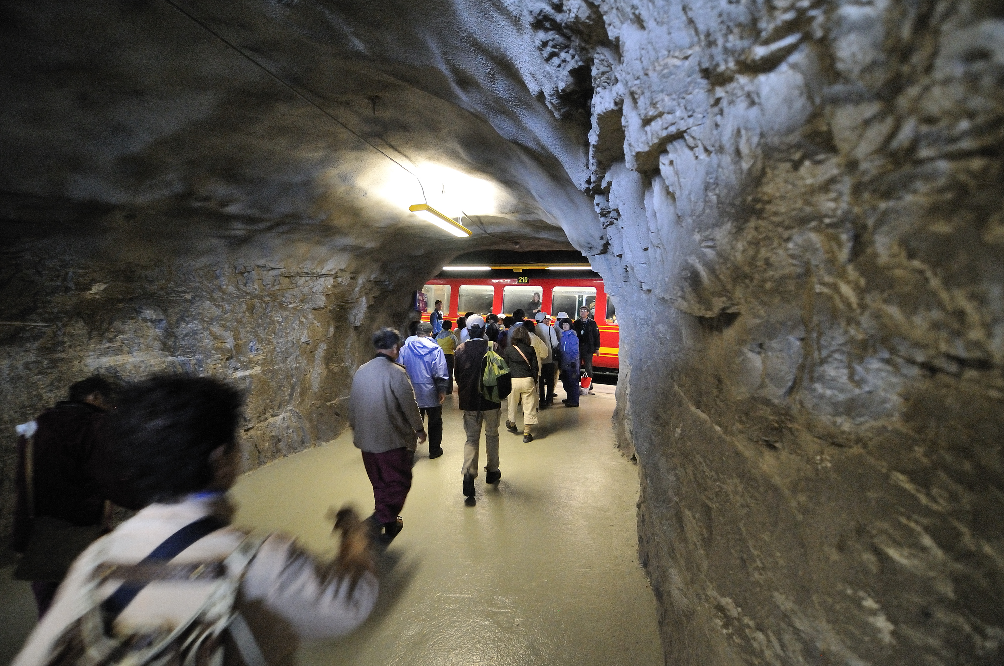 | アイガーヴァント [Eigerwand] 駅 (09:50)「西」MAP wand は壁を意味する。 16年間に及ぶ難工事の末、1912年に完成したアイガートンネル内に造られた駅で、この駅で下車し、北側に進むと、アイガー北壁に設けられた岩穴から下界を眺望する事ができる。 |