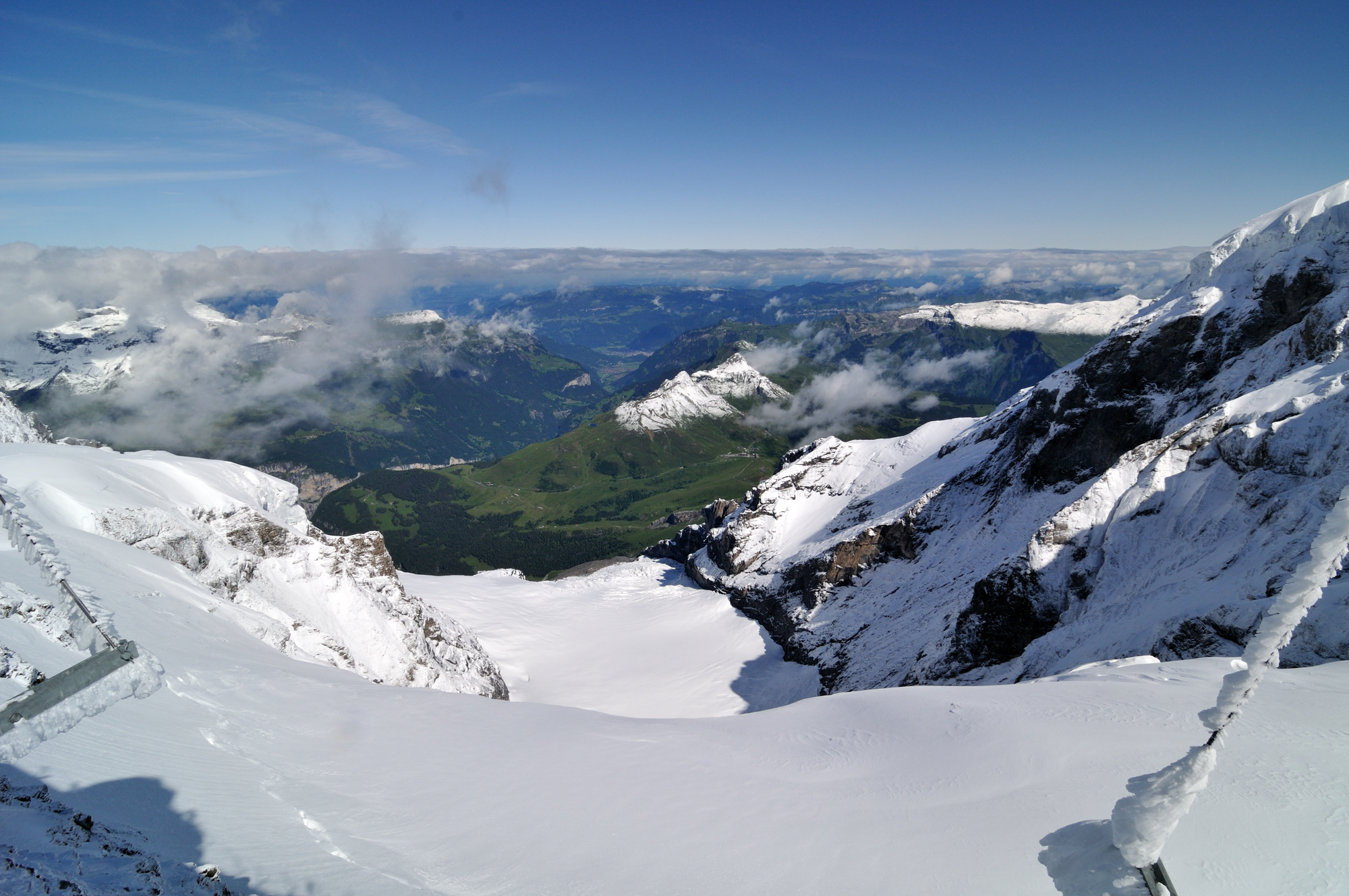 | スフィンクス [Sphinx] 展望台 (3571m) より。 北北西方向に "クライネ・シャイデック駅" [Kleine