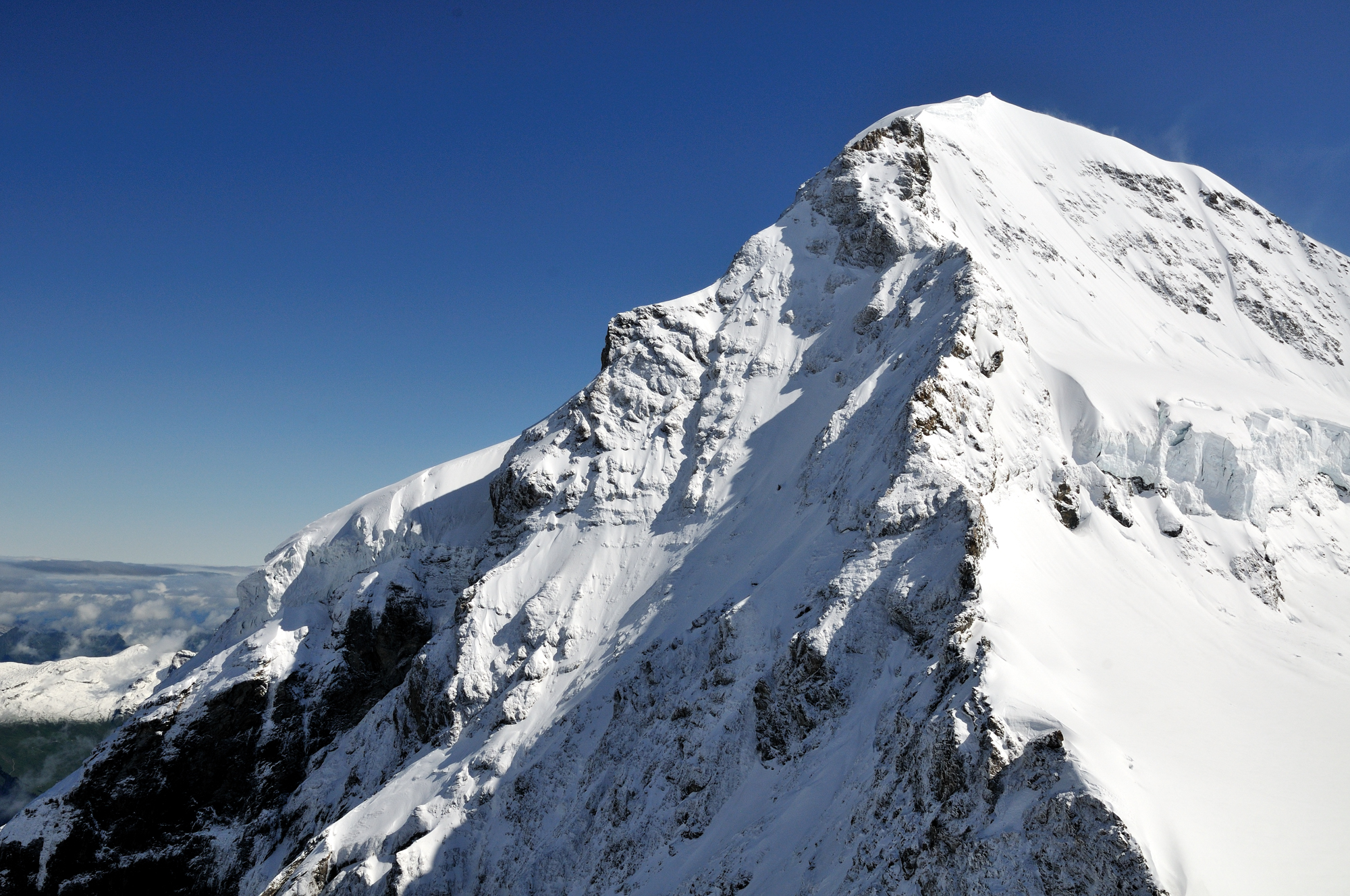 | メンヒ [Mönch 4099m] ドイツ語で修道士、左の稜線が人の顔に似ている 「北東方向」 (10:45)「北北東」MAP |
