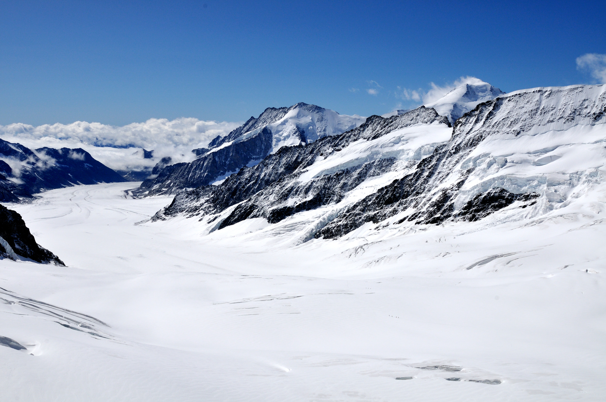| アレッチュ氷河 [Aletsch Glacier] 、右下に人影が見える (10:47)「南」MAP |