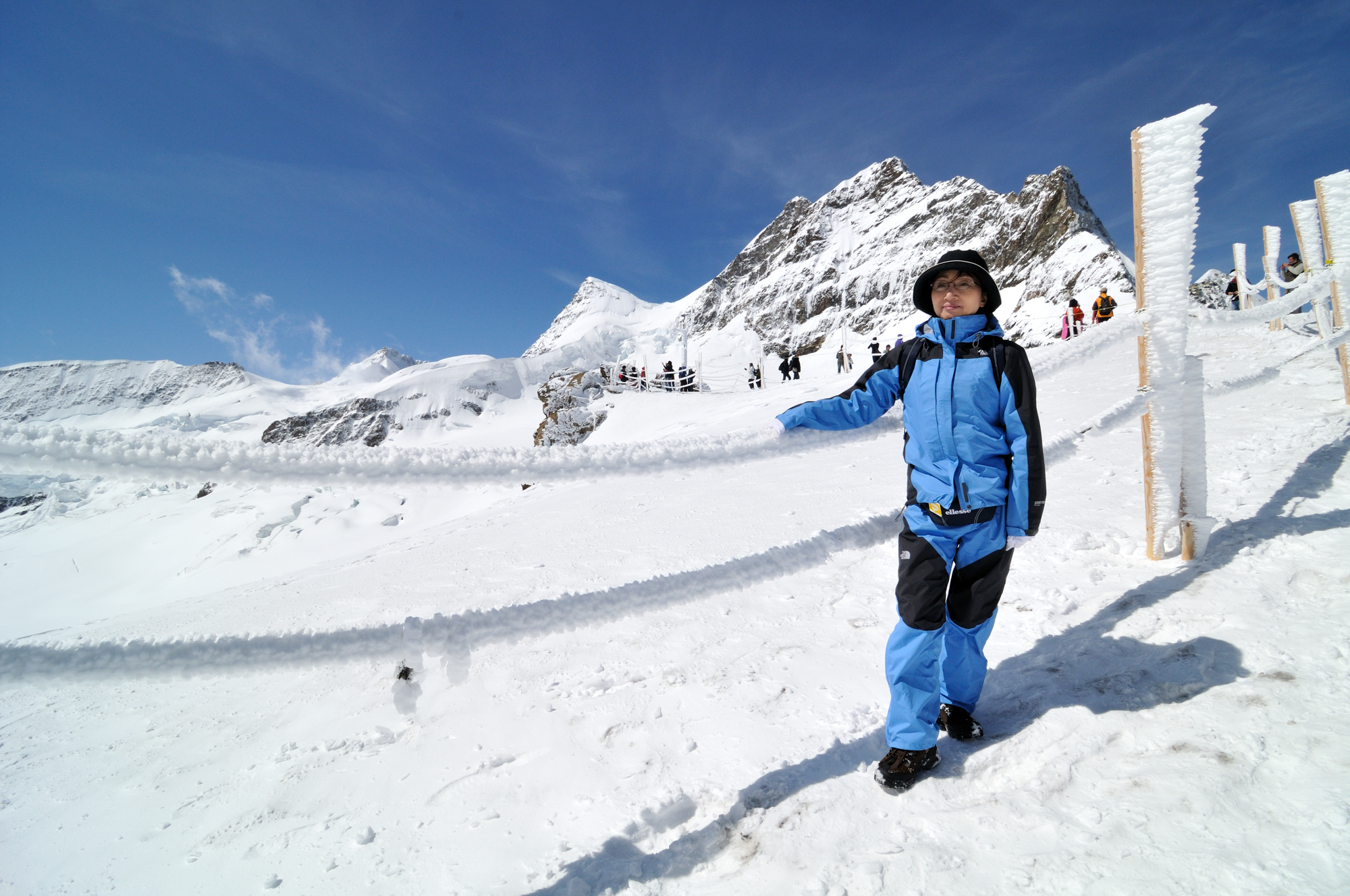 | ユングフラウ [Jungfrau 4158m] をバックに (11:17)「南西」MAP プラトーテラス [Plateau Terrace] にて。 |