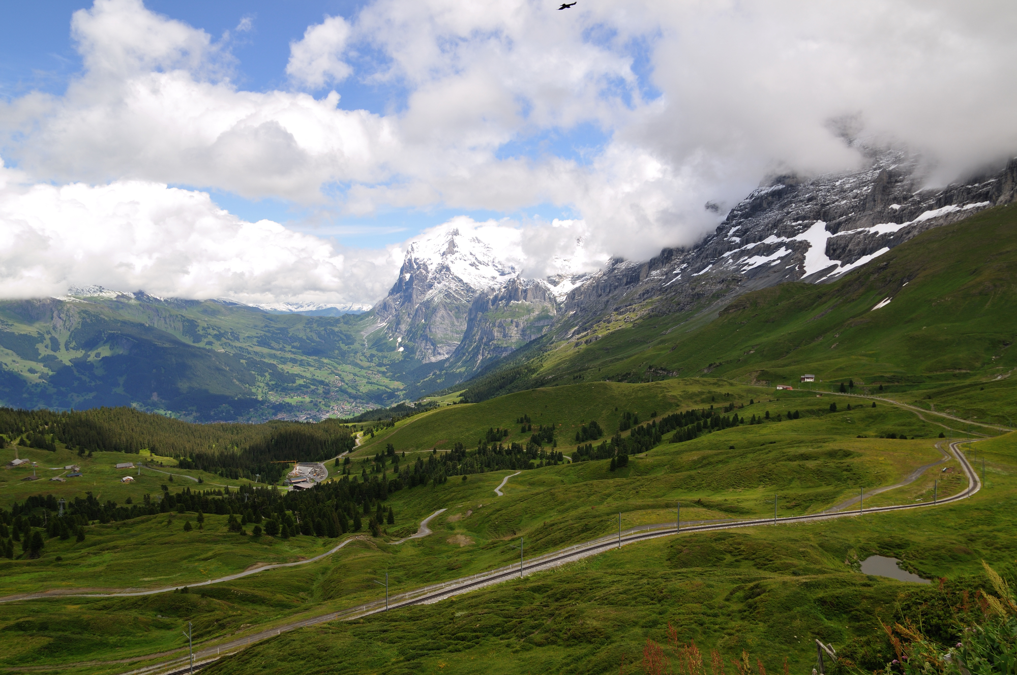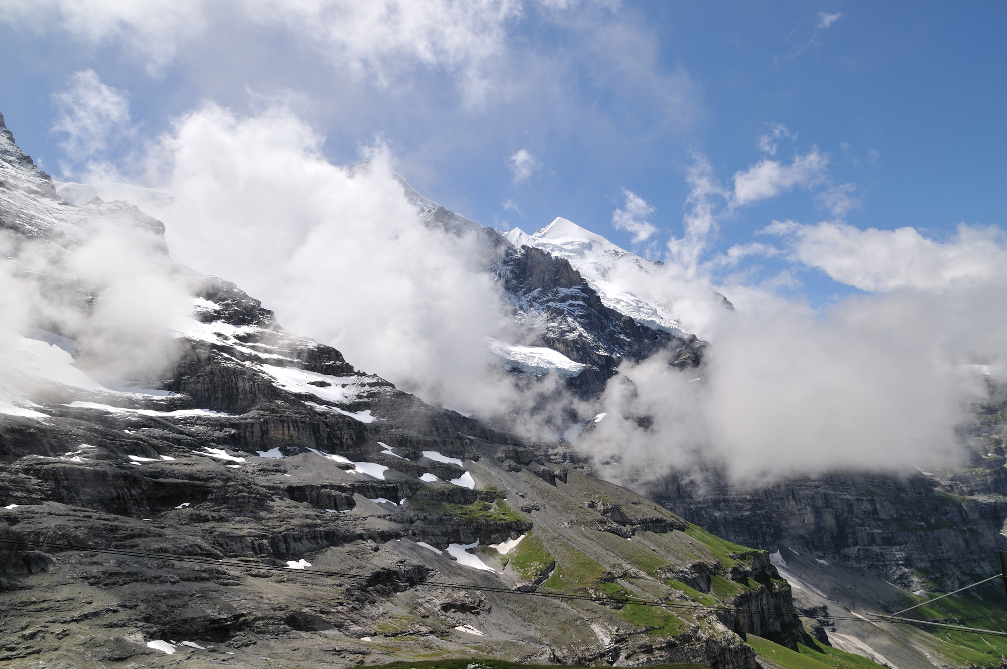 Scheidegg] が見える。 (10:35)「北北西」MAP 直ぐ右手の、頂上の見えていない山は、メンヒ [Mönch] 。 |