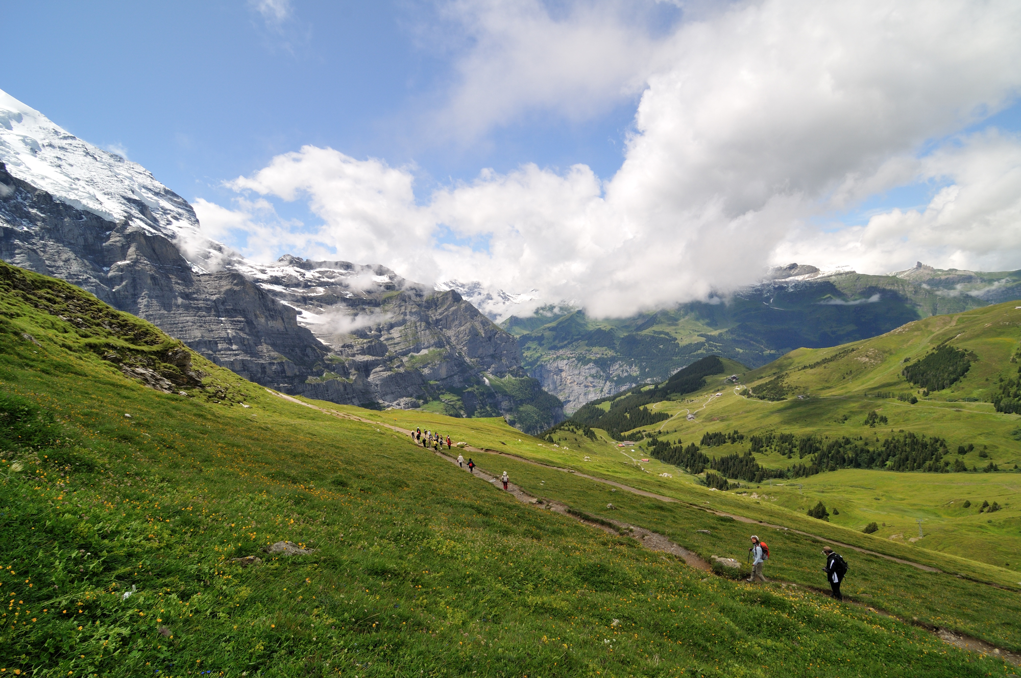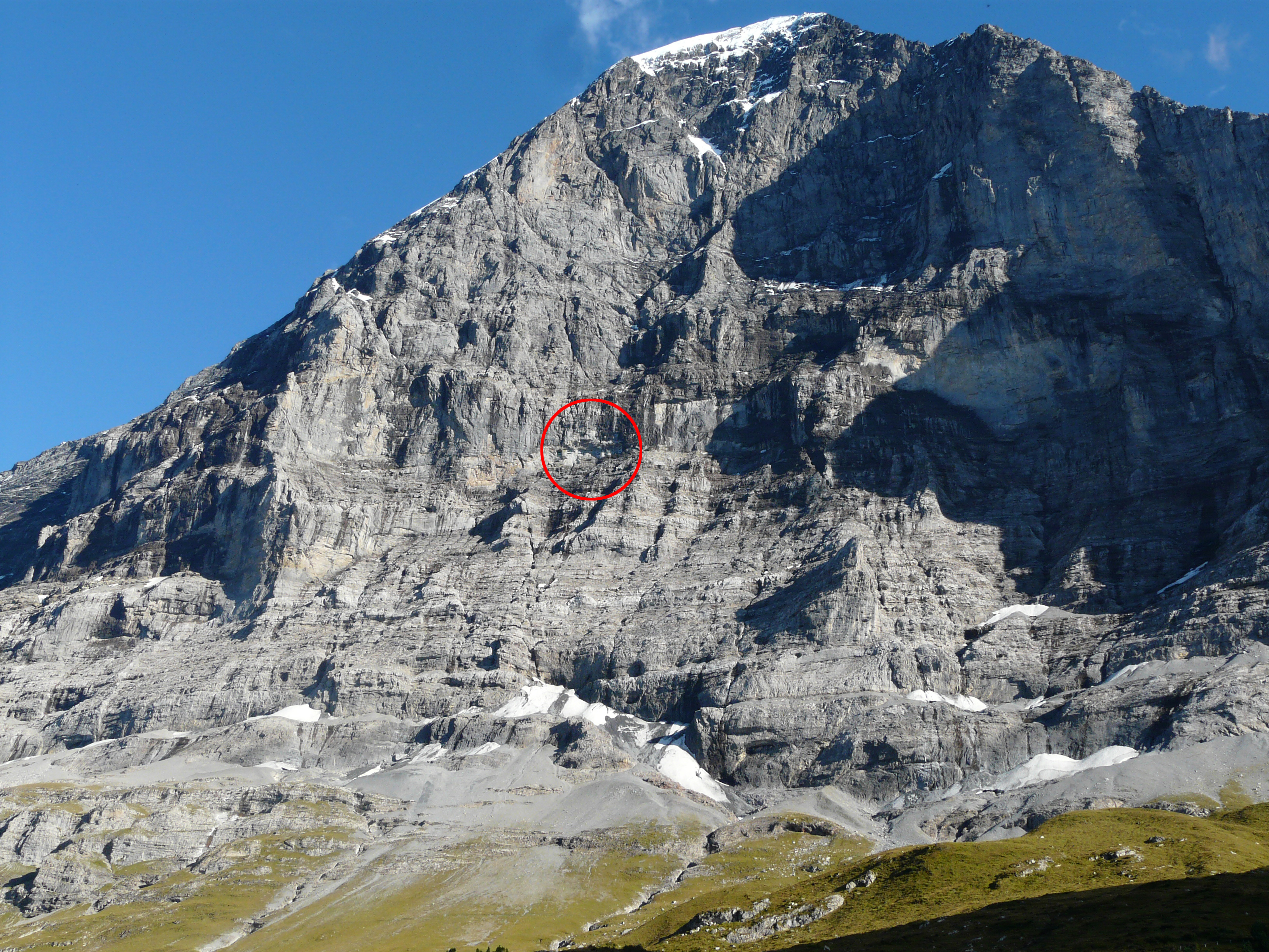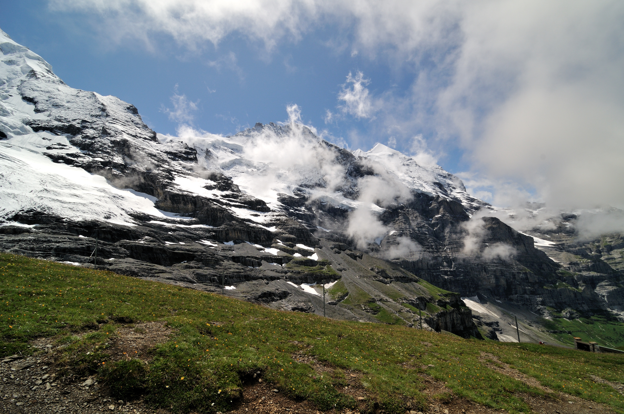 | 後方撮影、アイガーの北壁は急峻になっており "アイガー北壁" と呼ばれている (13:08)「東」MAP |