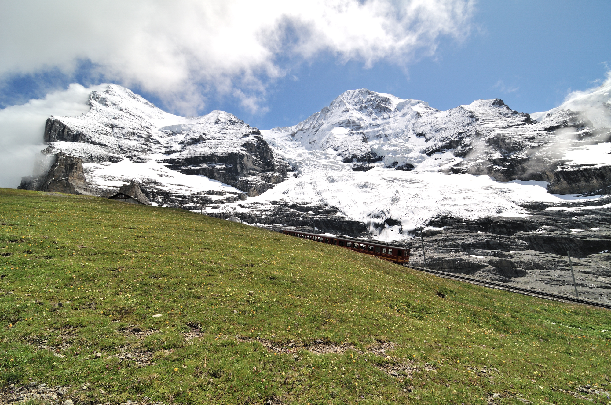 | 途中で出会った登山電車 "ユングフラウ鉄道 [Jungfraubahn] " (13:06)「南」MAP |