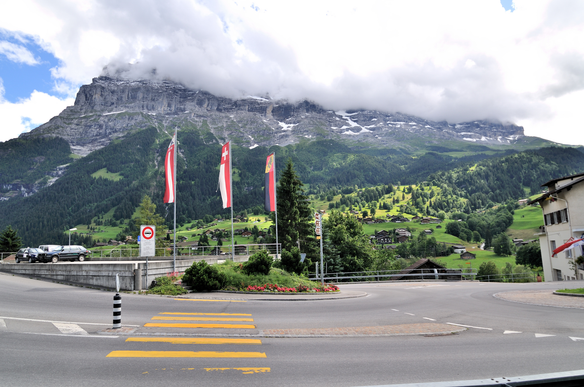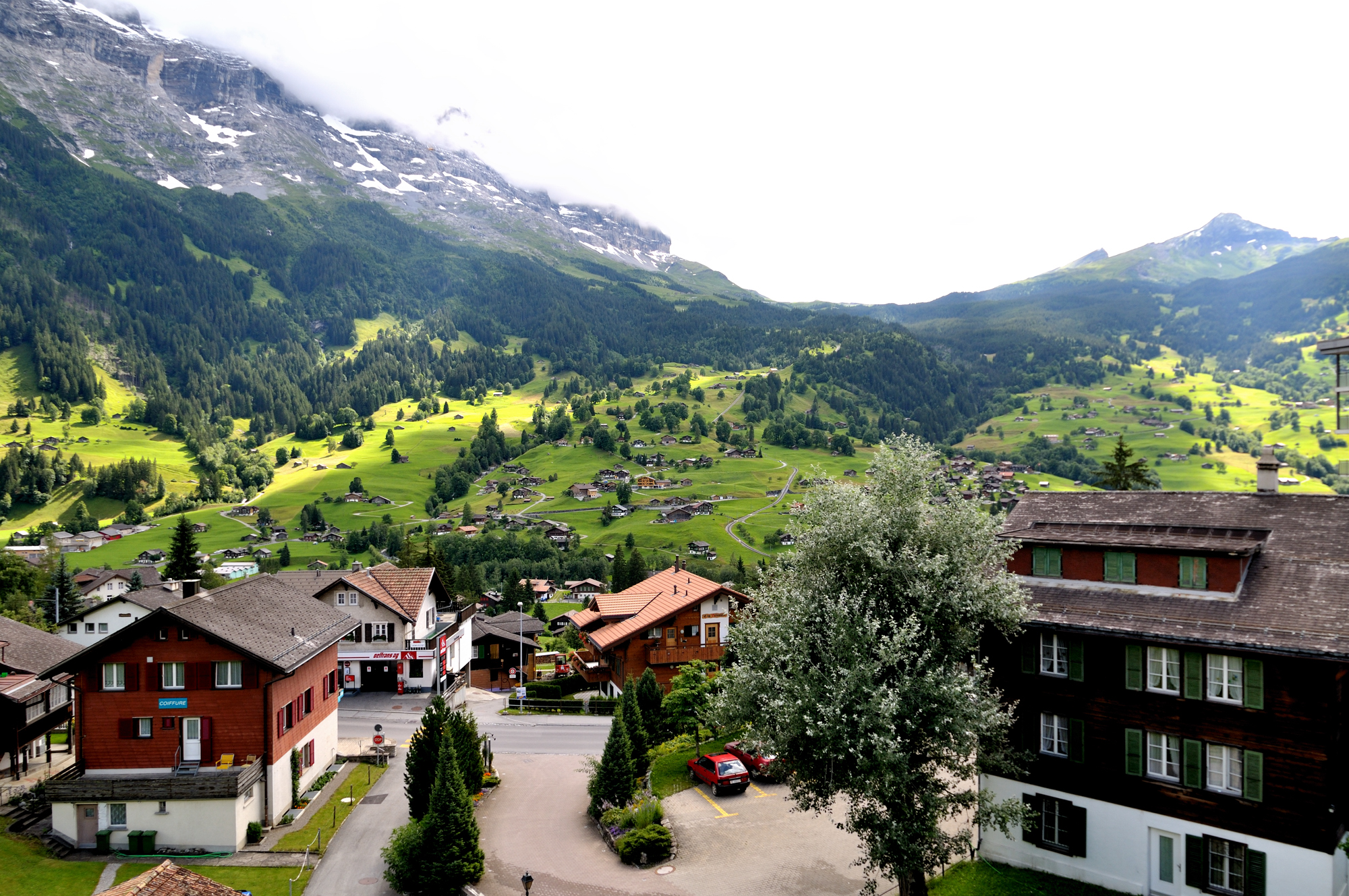 | "世界一美しい村" とも呼ばれている、グリンデルワルト (15:50)「南南西」MAP ベルナーオーバーラント鉄道 [Berner Oberland Bahn] の車窓から。 |