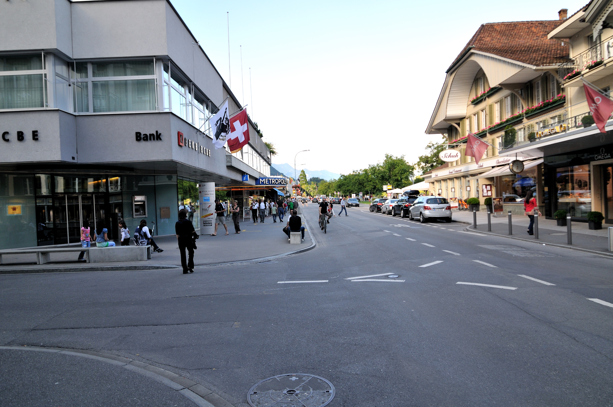 | ヘーエ通り [Höheweg] に面した"メトロポール・ホテル" [METROPOLE INTERLAKEN] (07:25)「北西」MAP |