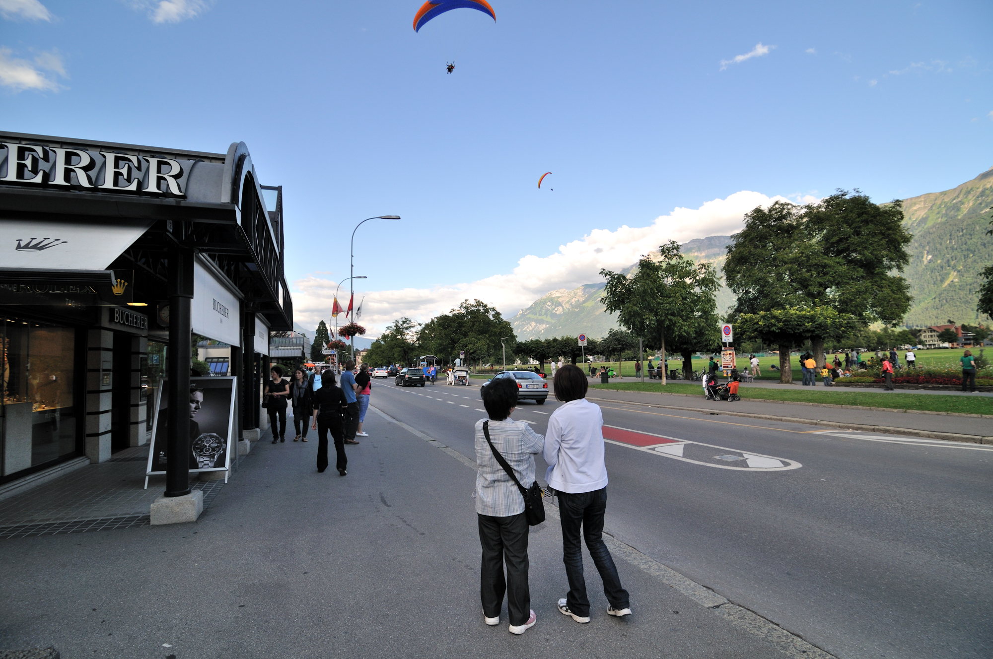 | インターラーケンのメインストリートに帰着 「ヘーエ通りとヘーエマッテ公園」(16:45)「南西」MAP |