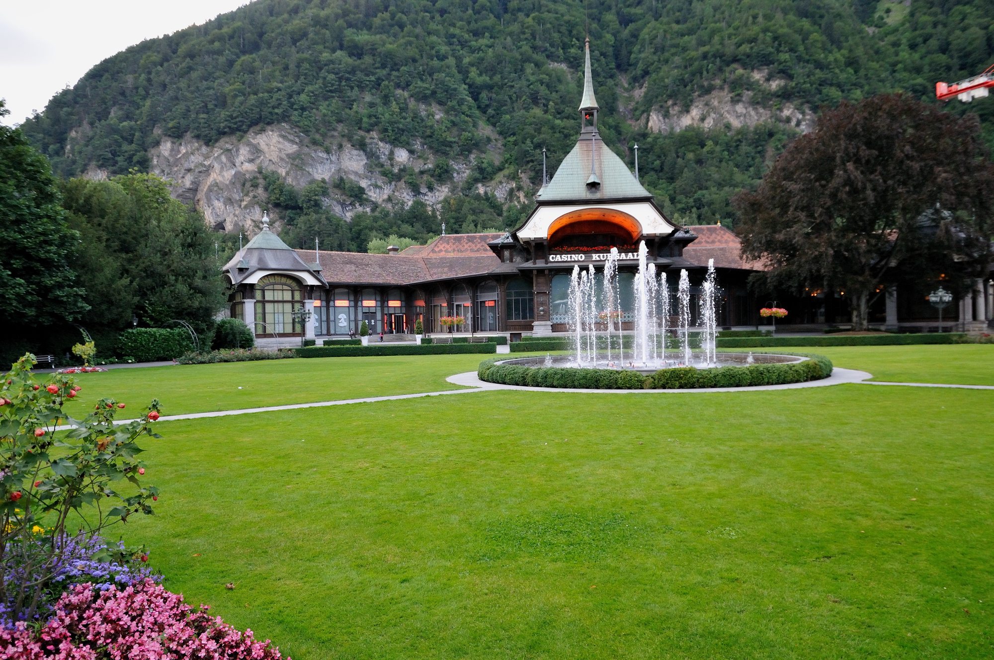 | カジノ・クアザール[Casino Kursaal] (20:09)「北西」MAP 1859年オープン。歴史あるカジノの施設でベルナーオーバーランド一帯の社交場としてにぎわった。現在は改装され、カジノ、会議場、レストランなどが入っている。カジノといってもマシンが中心。 |