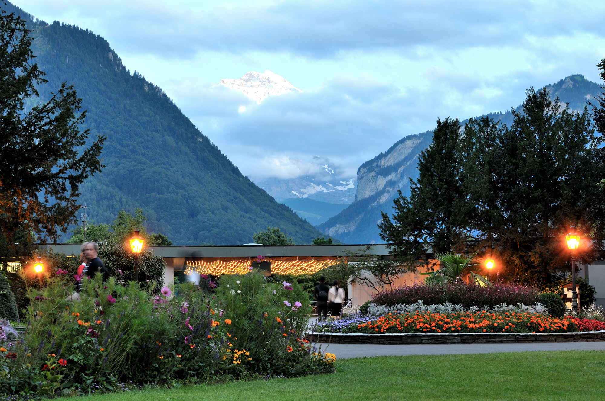 | カジノ・クアザール [Casino Kursaal] の前庭からユングフラウを望む (20:10)「南」MAP |