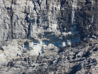 | アイガーヴァント [Eigerwand] 駅 (09:54)「北東」MAP 岩壁には、数ヶ所の窓が造られている。 |