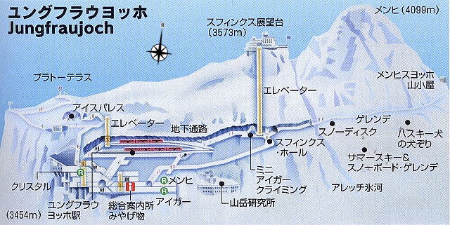 | ユングフラウ [Jungfraujoch] 駅とスフィンクス展望台等の位置関係。 |