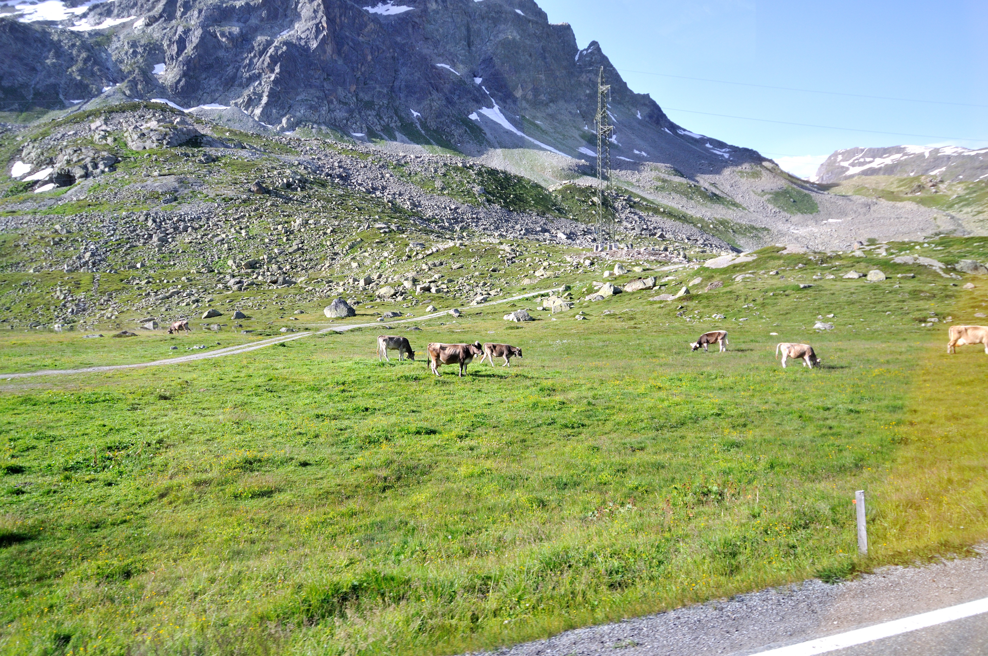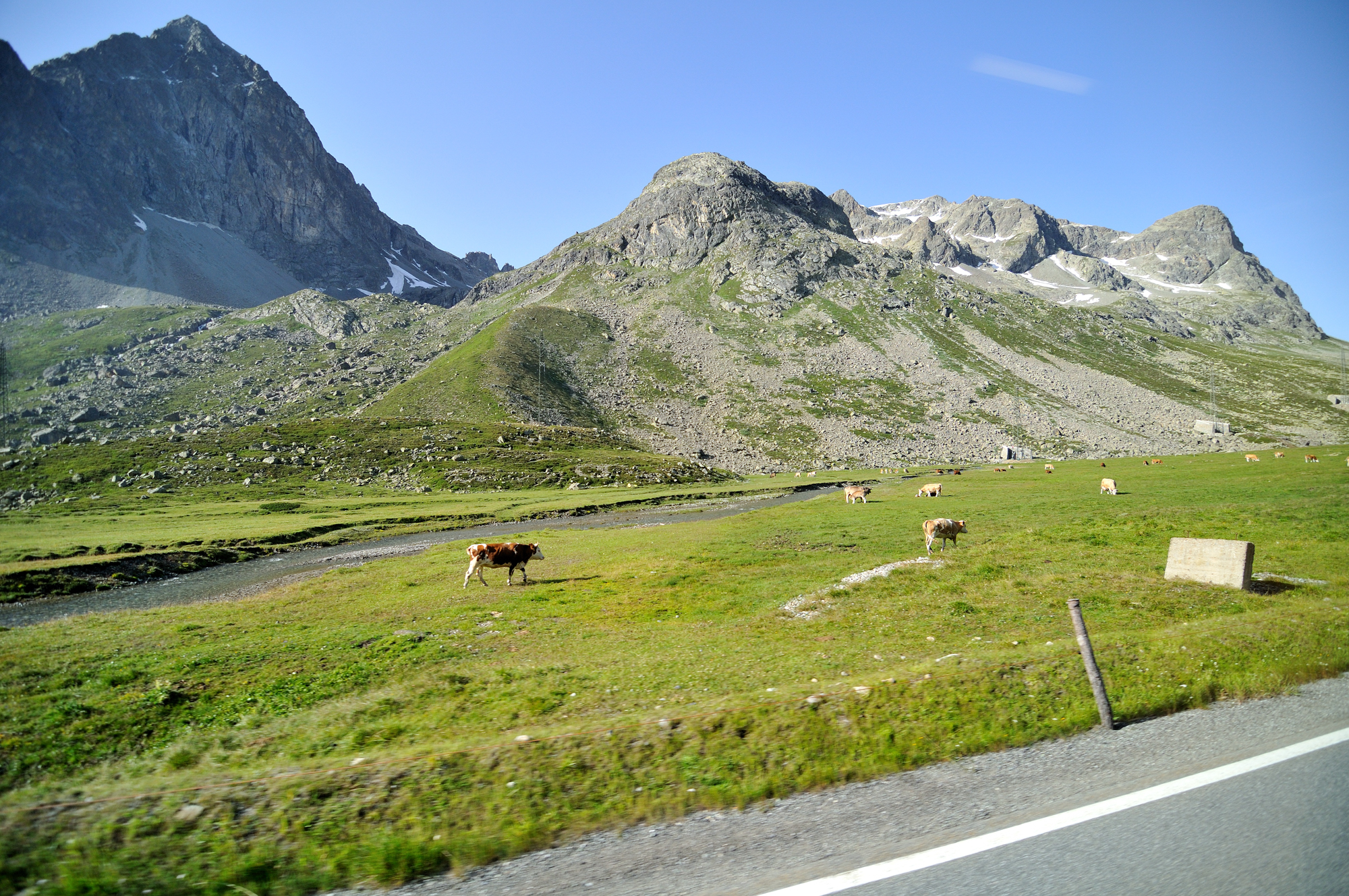 | ユリア街道 [Julierstrasse] の Cunter 付近 (09:29)「西」MAP 写真「中央」の山は、ピーツ・トイッサ[Piz Toissa] 。 |