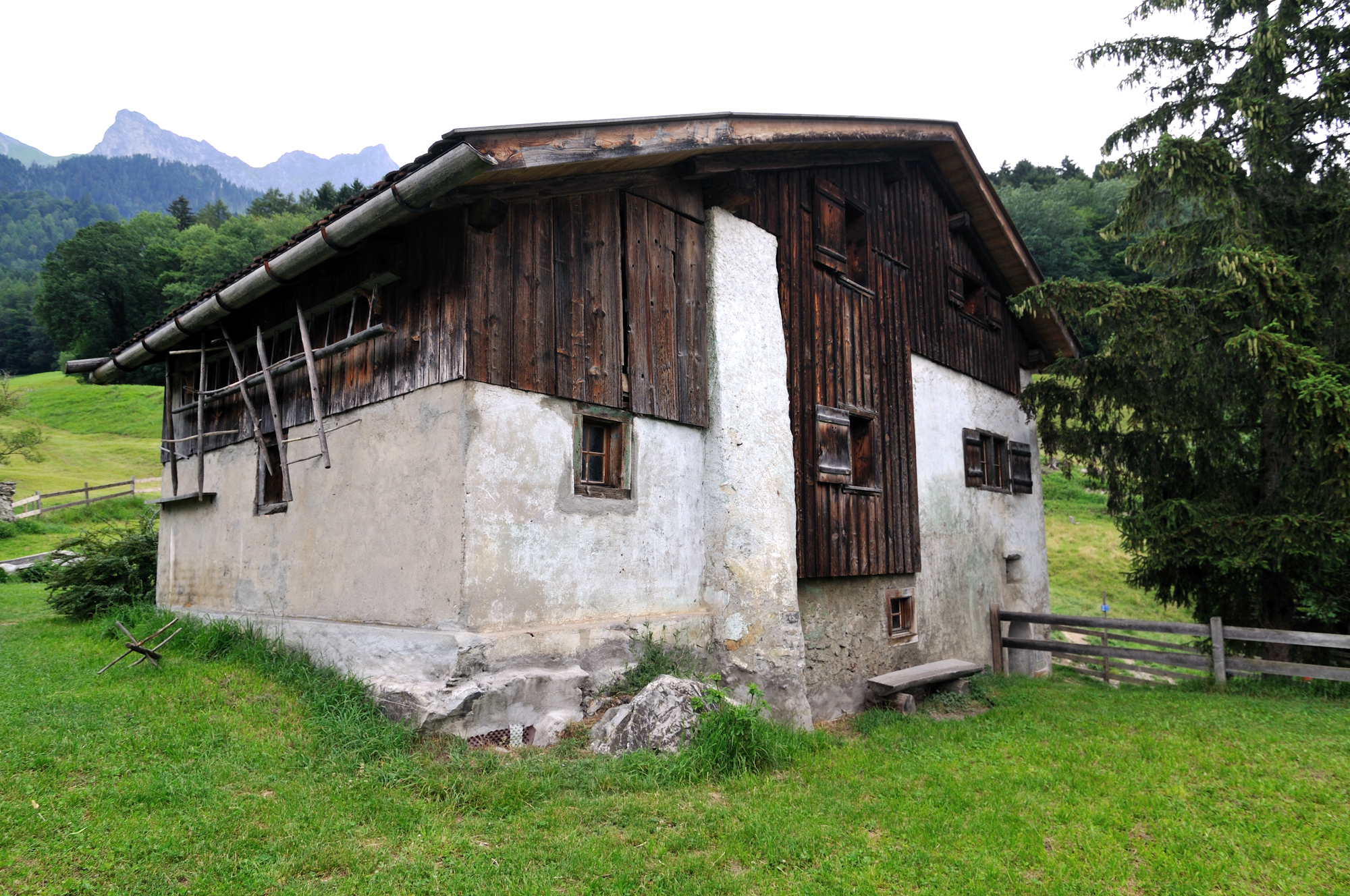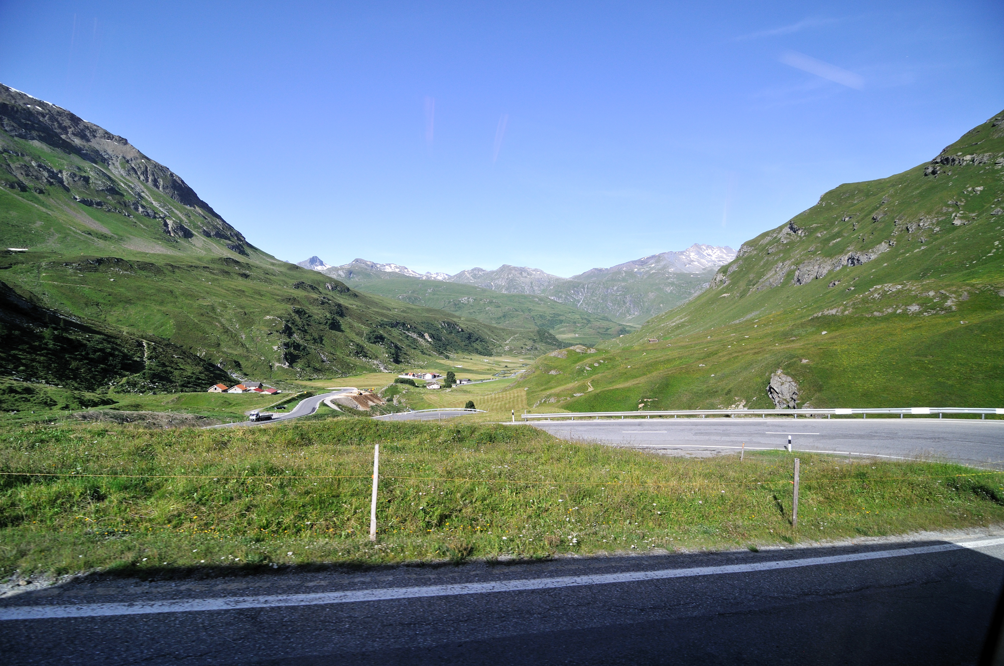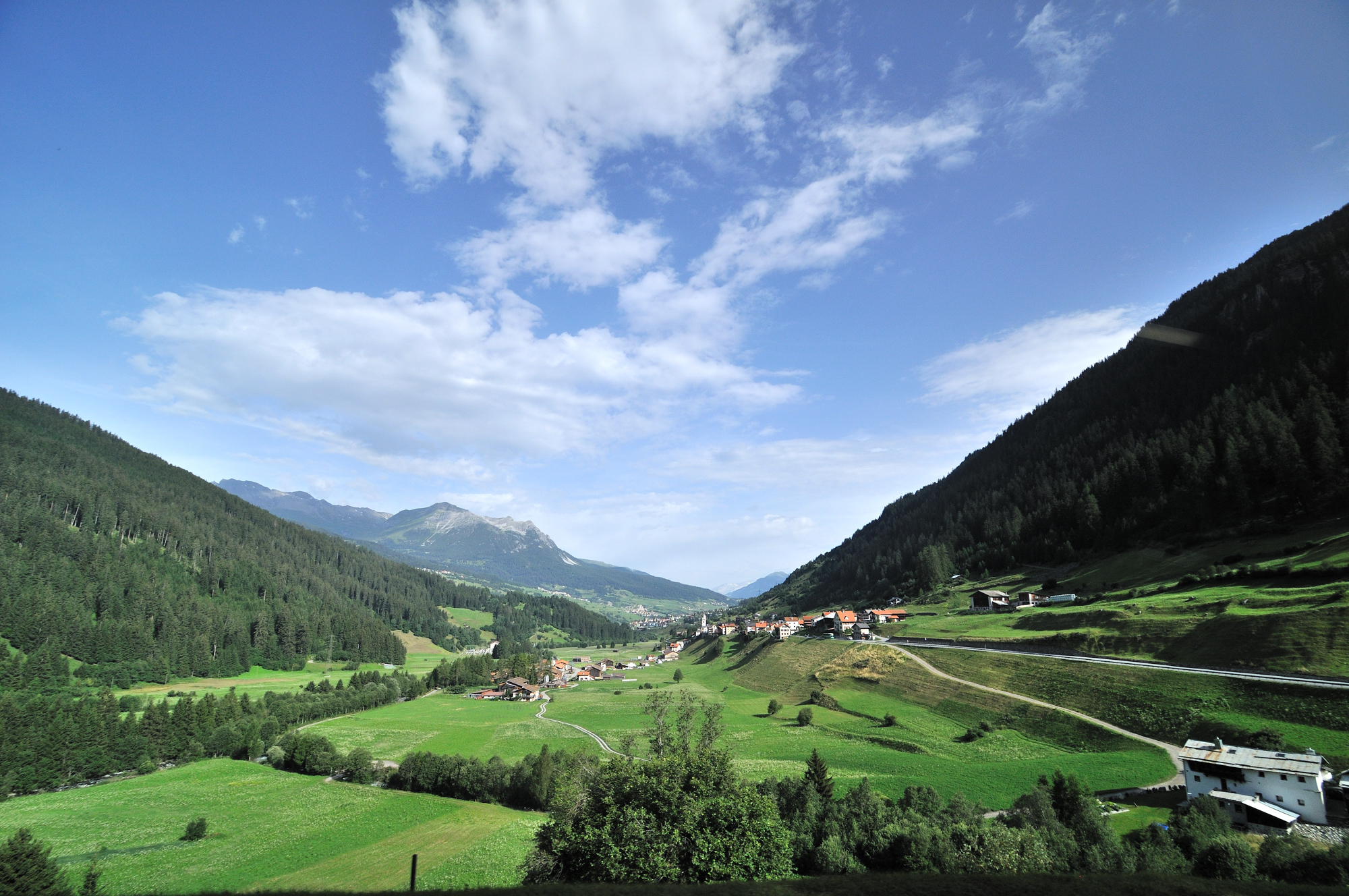 | ユリア街道 [Julierstrasse] のティンツェン [Tinzen] 付近 (09:23)「北西」MAP 遠方「左中央」のピークは、Piz Curver。 その右のピークは、ピーツ・トイッサ [Piz Toissa] 。 |