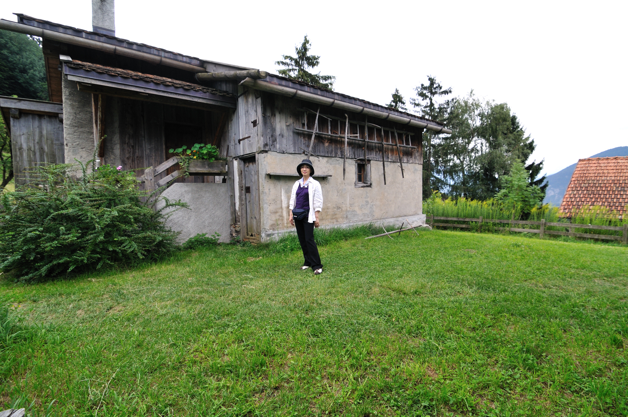 | "ハイジのいえ" [MUSEUM HEIDIHAUS] (10:53)「東北東」MAP ハイジが暮らしていた100年以上前の暮らしを再現した、博物館の裏手。 |