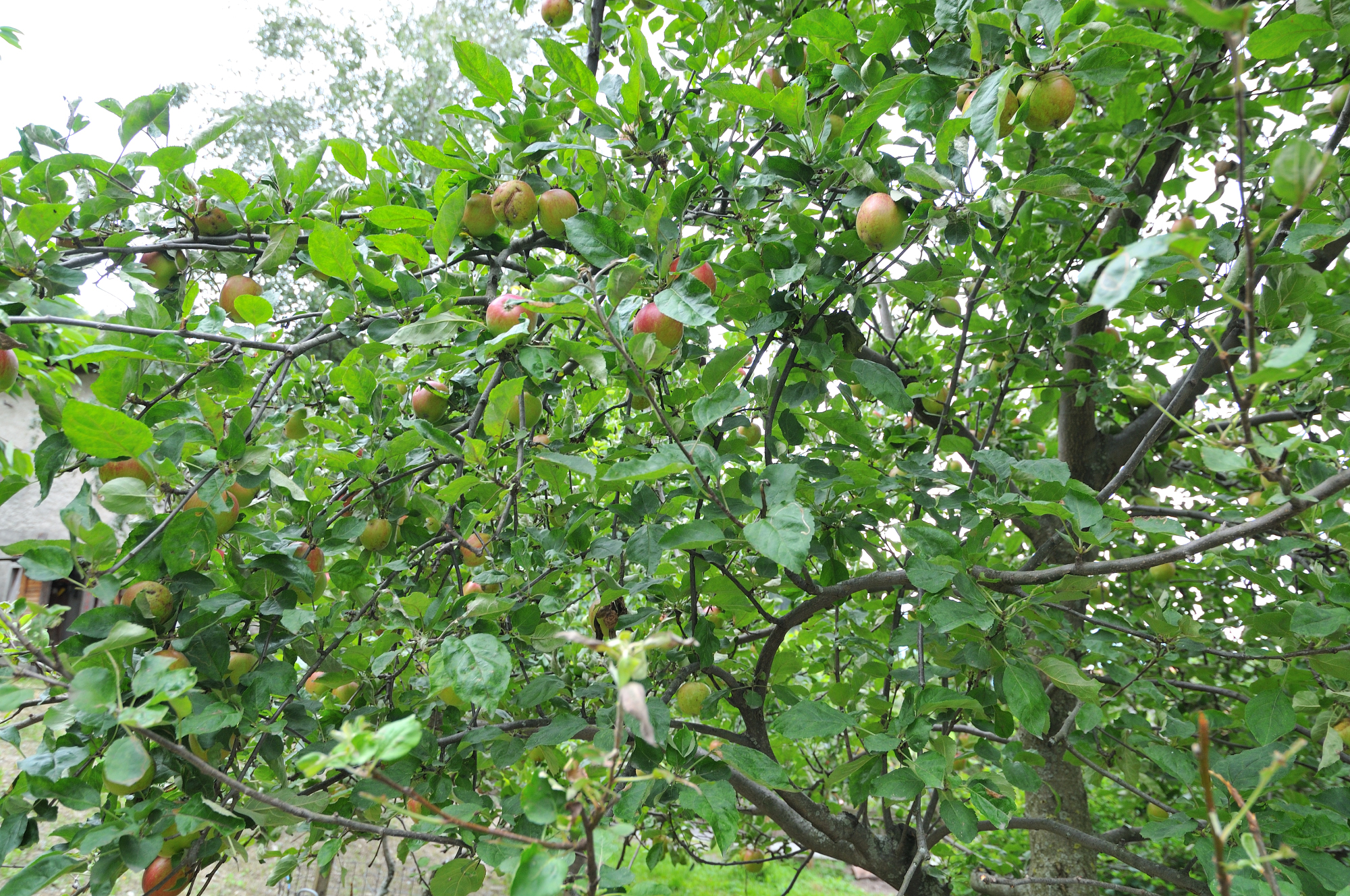 | おみやげ店と道を挟んだ、向かいの庭に植えられているリンゴの木 (11:01)「北東」MAP |