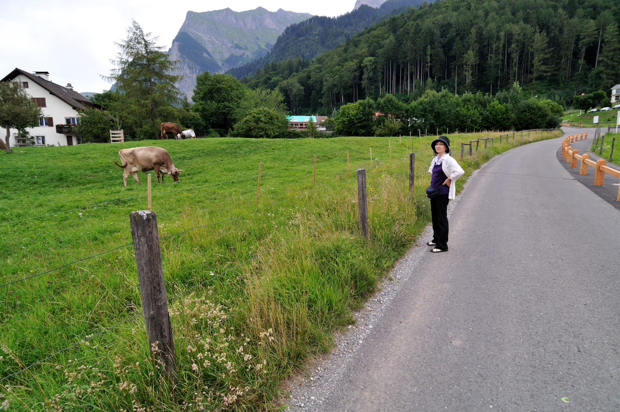 | ハイジの家からの帰路、オーバーデルフリガッセ [Oberdörfligasse] の道を通ってバスへ向かう (11:06)「北西」MAP |