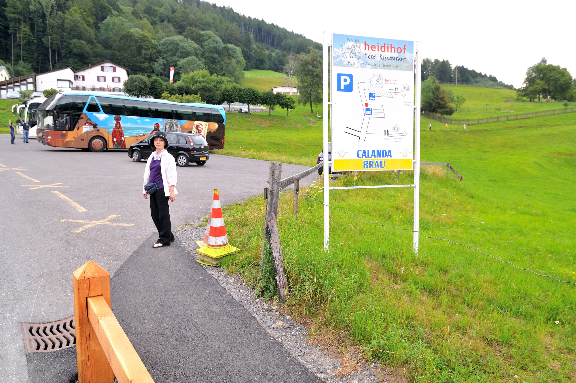 | ハイジの村・駐車場 [Heididorf Parkplatz] (11:13)「東南東」MAP ここでバスに乗り、昼食のレストランへ向かう。 |