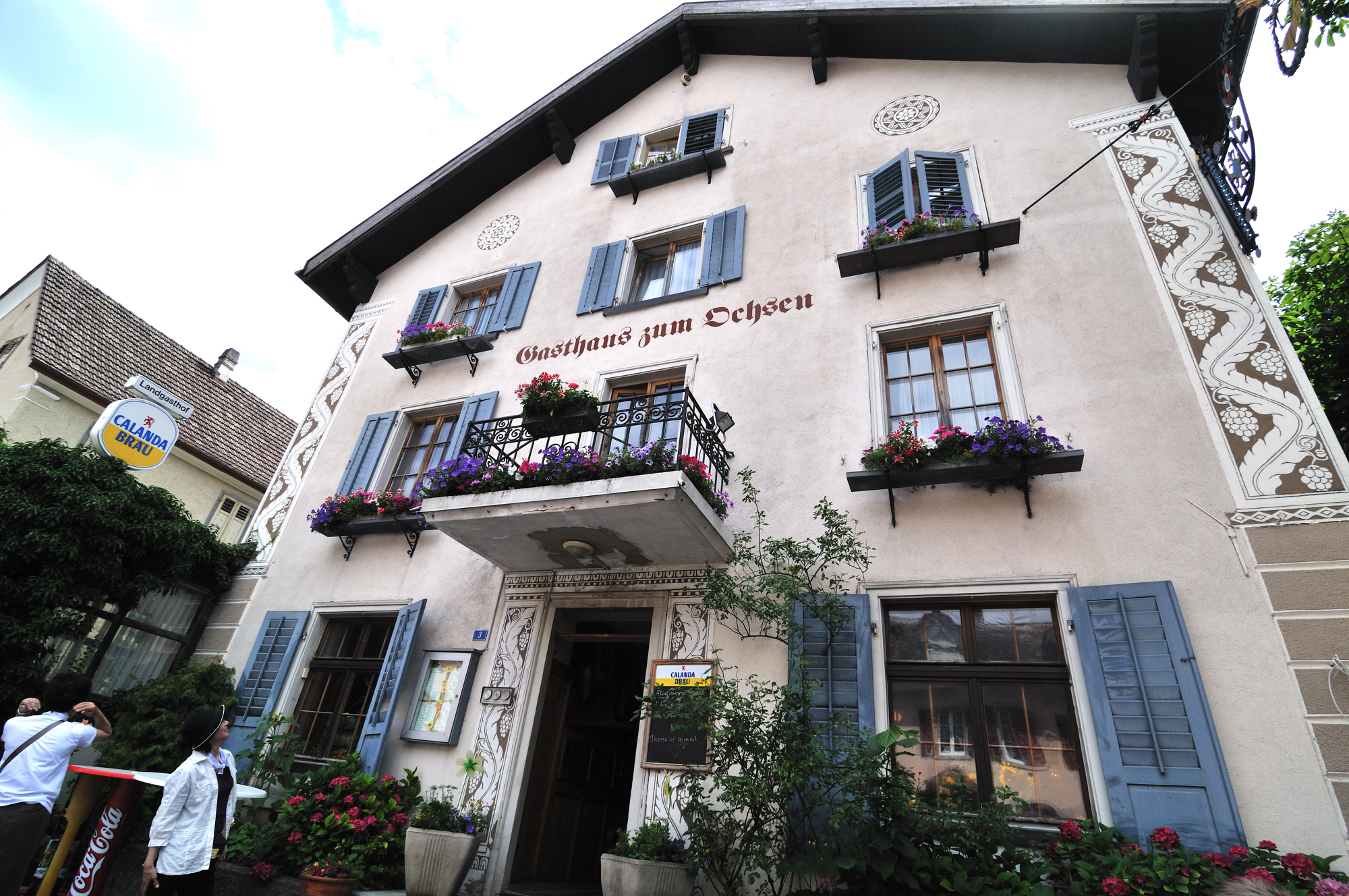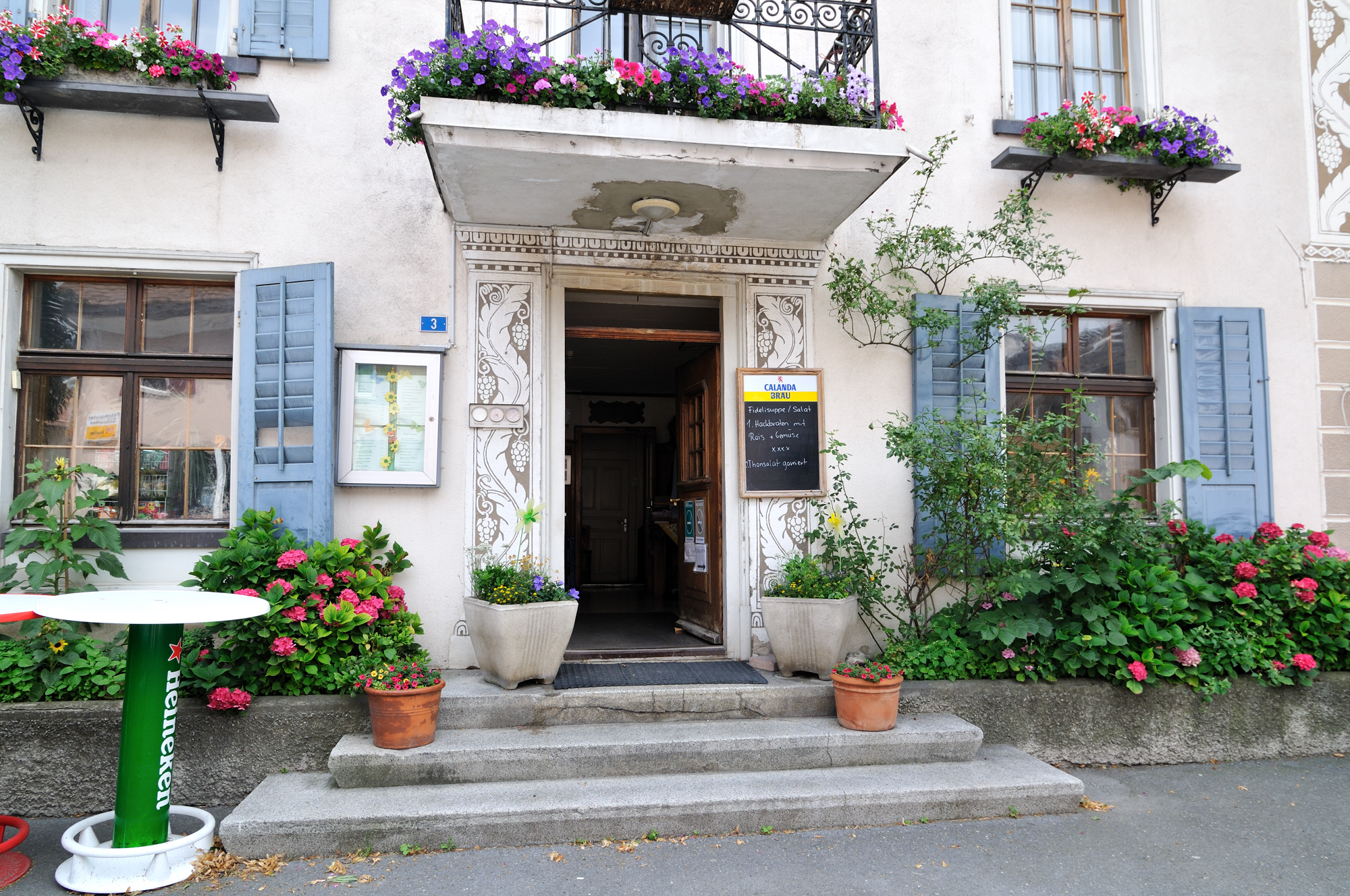 | 昼食のレストラン (12:29)「東南東」MAP ここでも、外壁にはスグラッフィート [Sgraffito] が施されている。 |